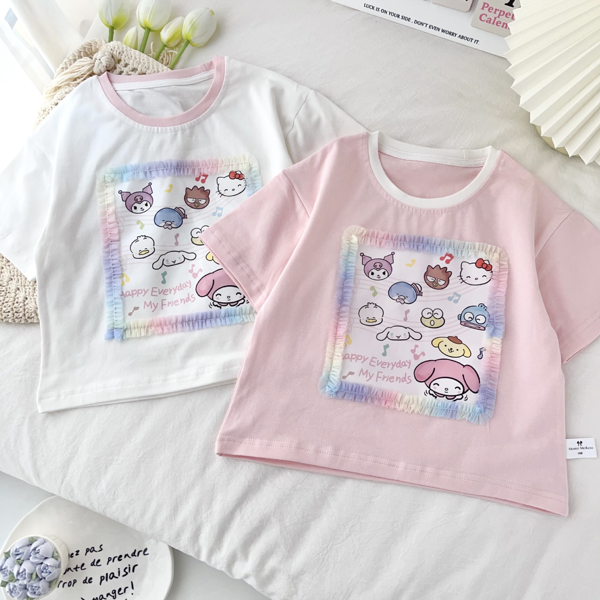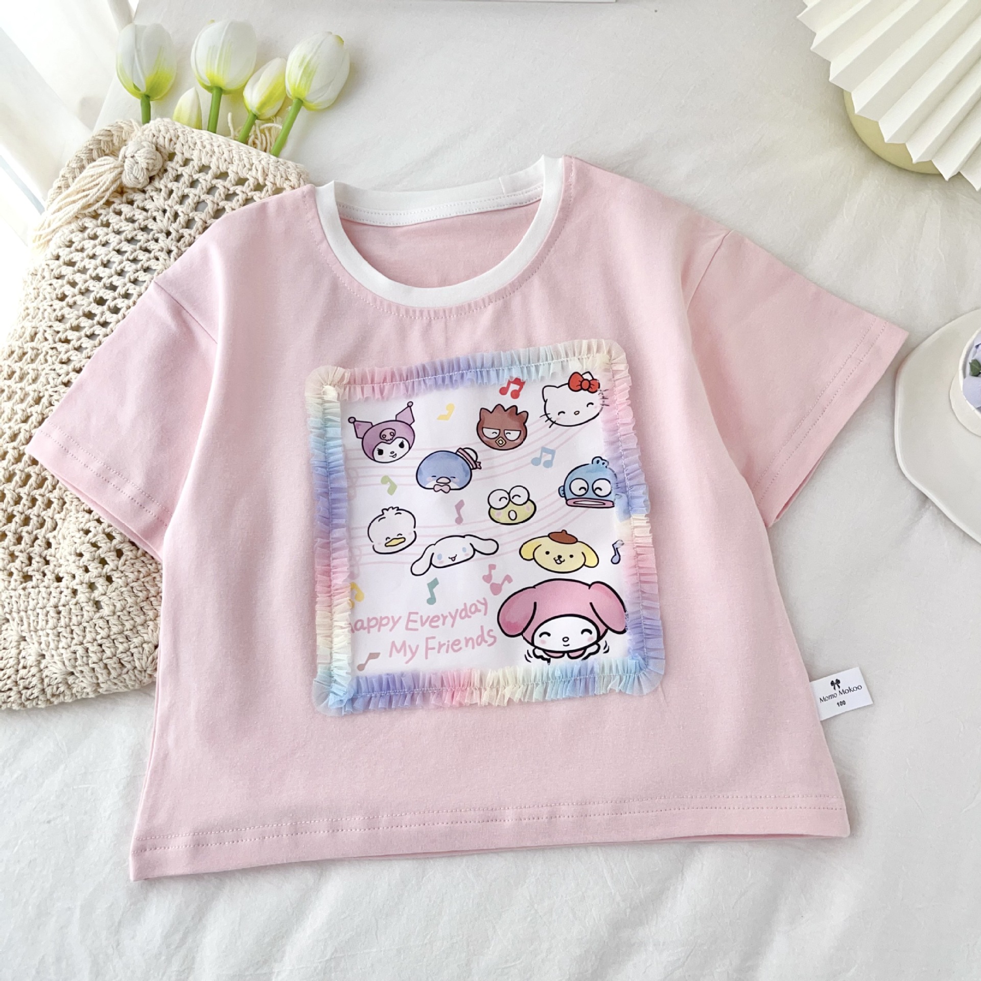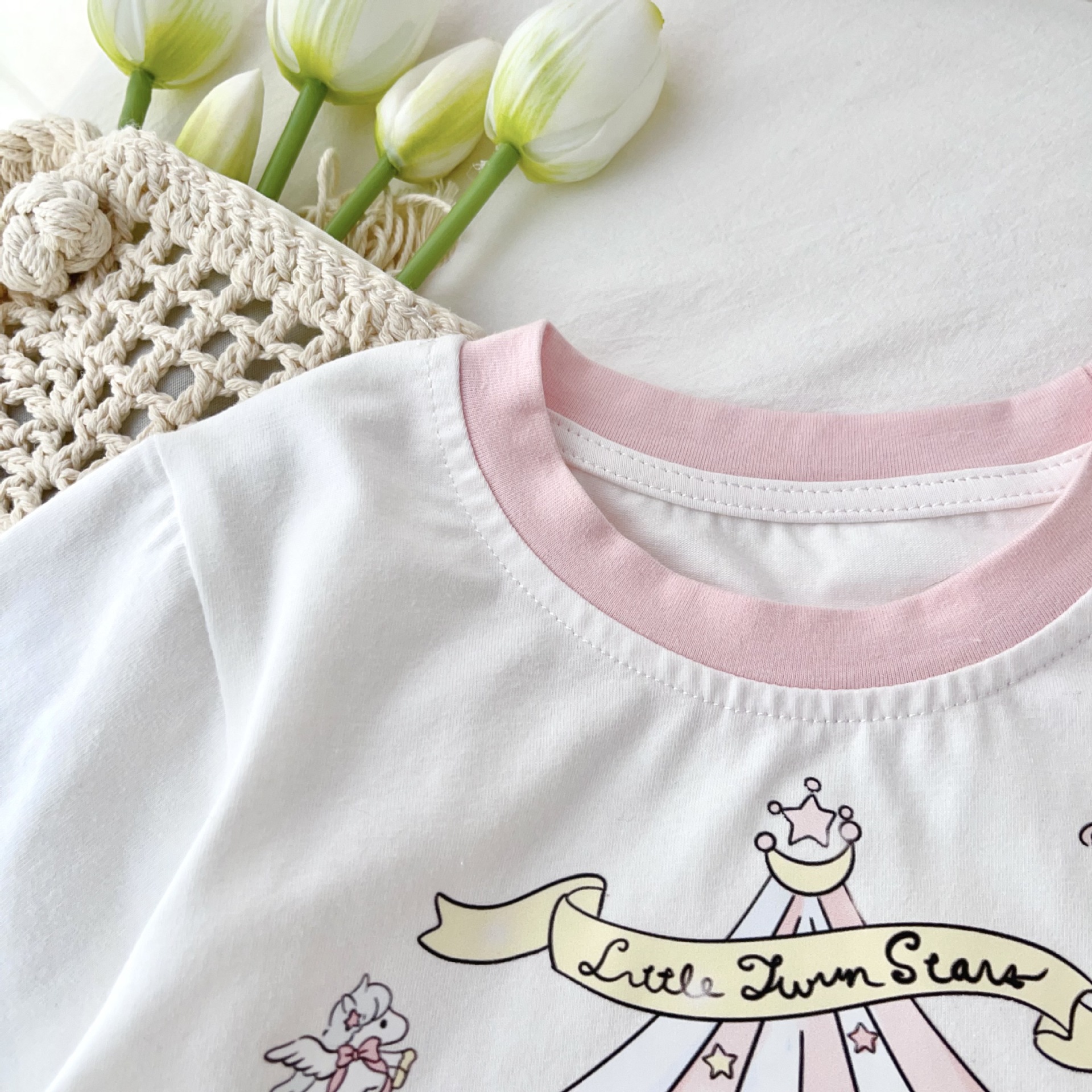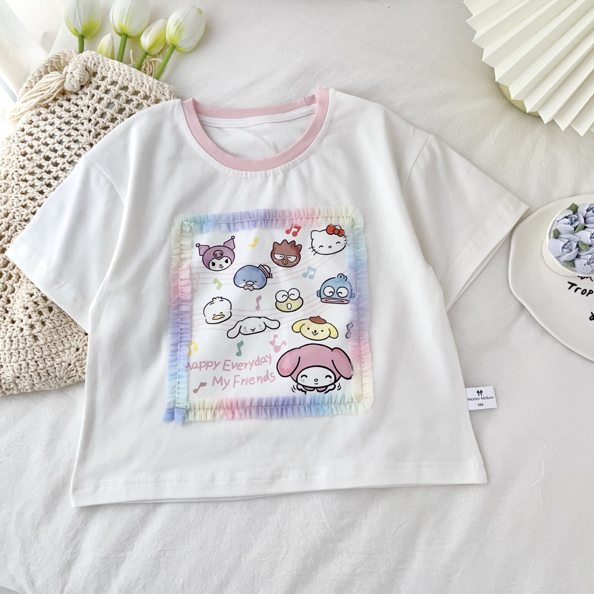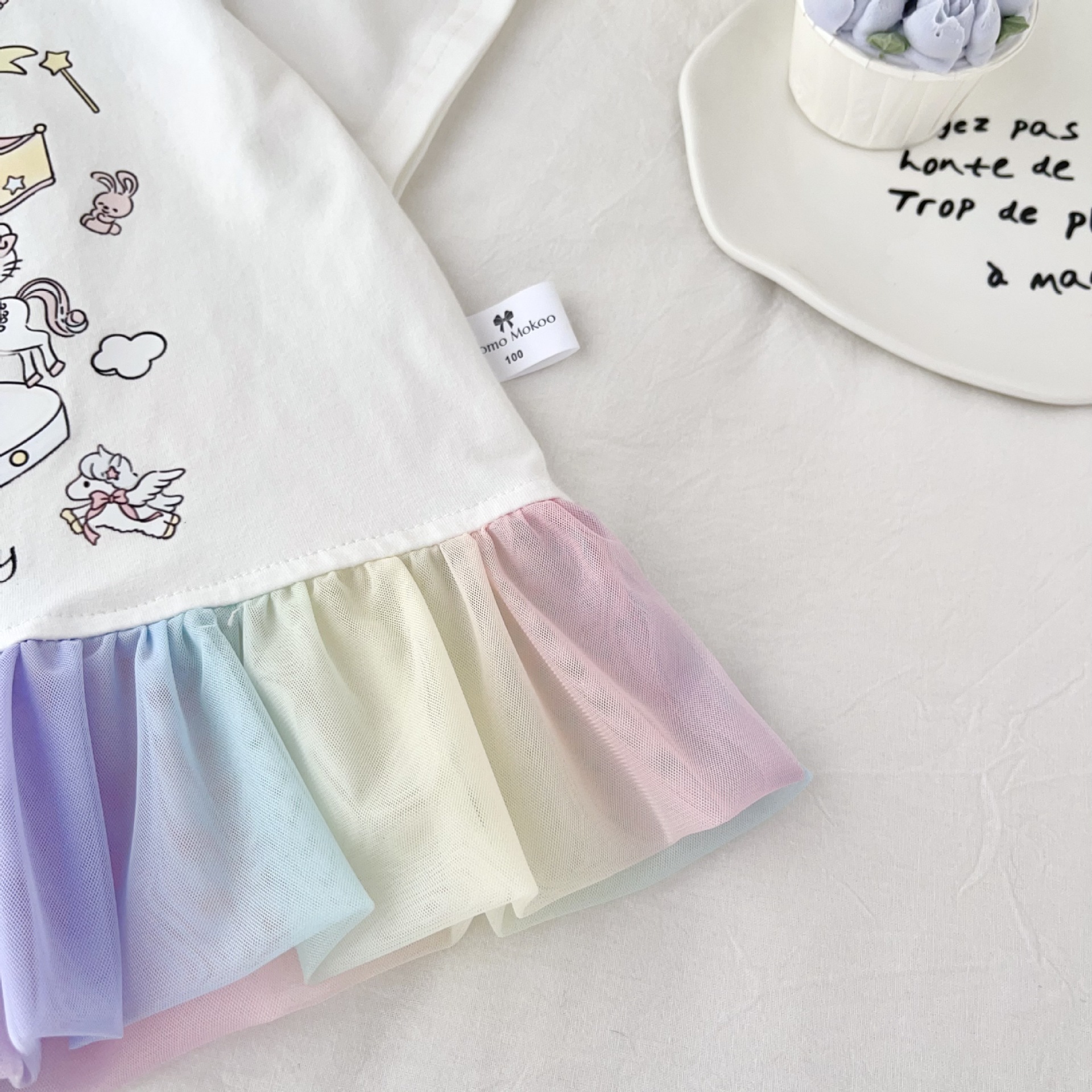 [95 면 라이크라] 여자 티셔츠 2025 여름 새 어린이 탑 귀여운 인쇄 무지개 치마 짧은 소매스토어 가기
