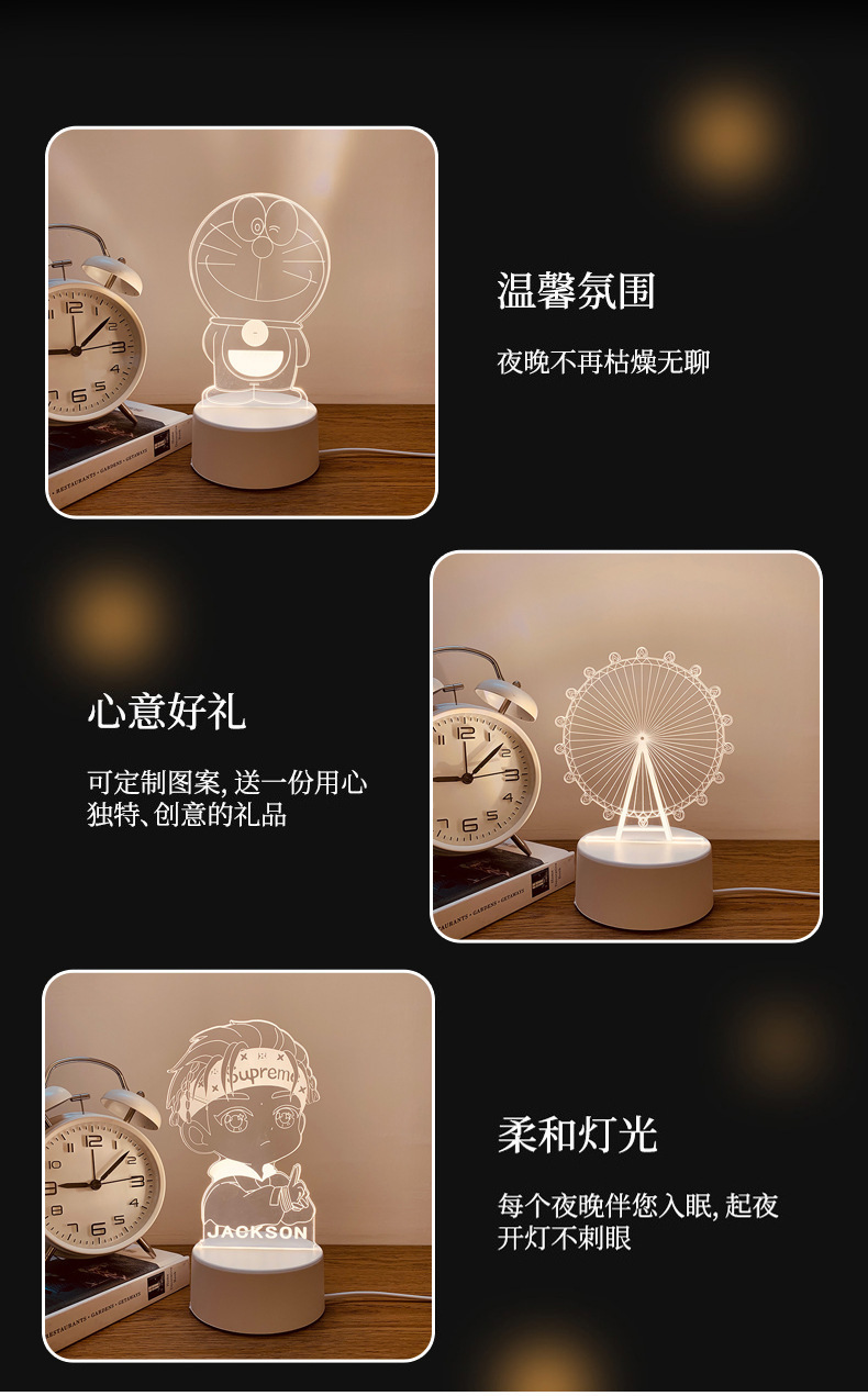 厂家直销 大量现货 需要更多卡通图案请联系旺旺客服 本工厂亚克力创意小台灯支持设计、DIY、来图案做定制、LOGO订做,如需要更多产品图案型号请联系客服,已经做过上万款图案,要的图案都有。