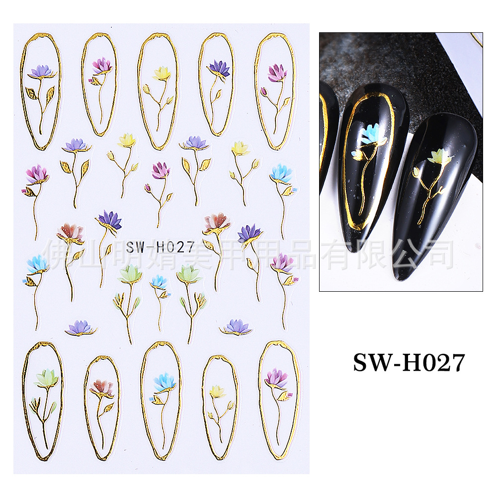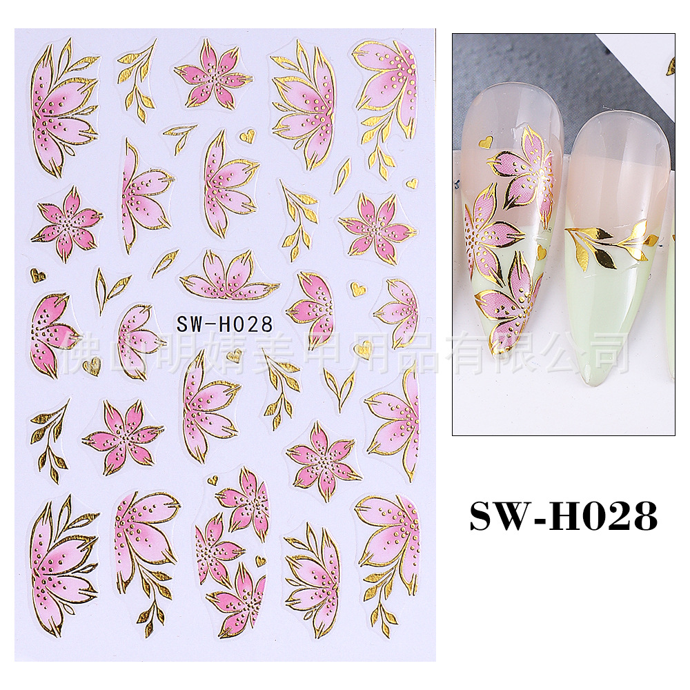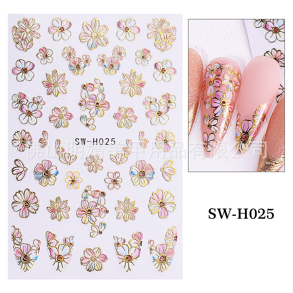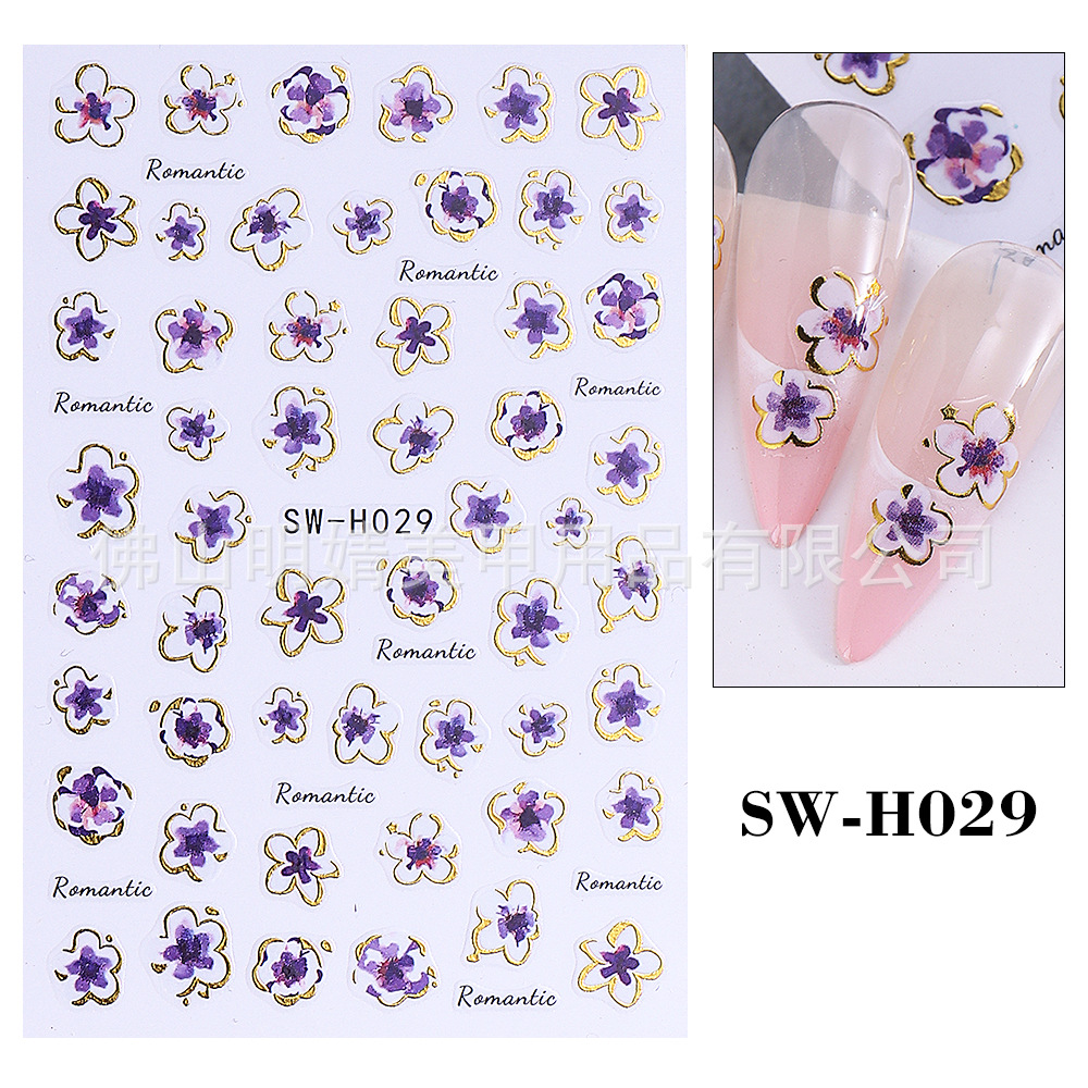 2025 새로운 네일 아트 스티커 ins 스타일 크로스 보더 핫 스탬핑 봄과 여름 벚꽃 일본식 파란색 꽃 접착 네일 스티커스토어 가기