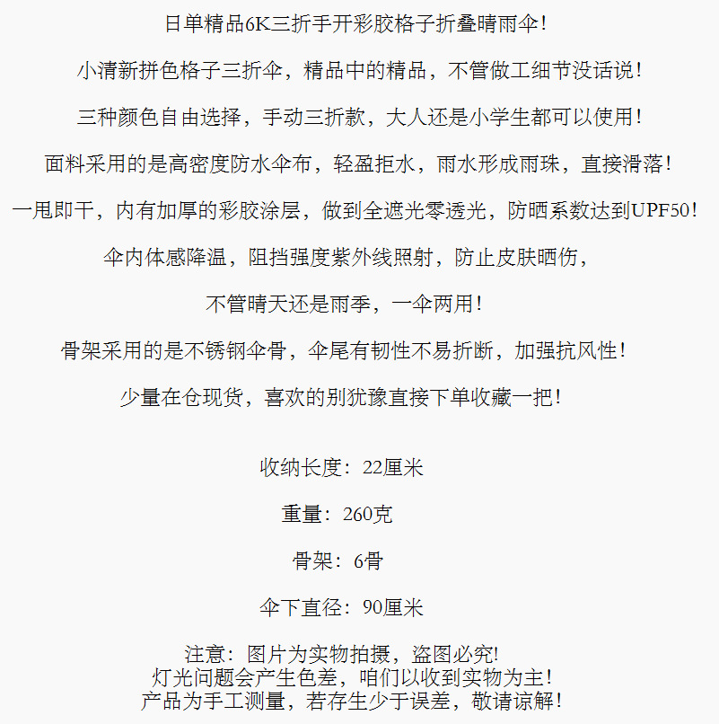 매일 목록! 전체 음영 울트라 라이트 260g 30% 수동 컬러 접착제 선 스크린 휴대용 양산 우산 학생 햇빛 우산