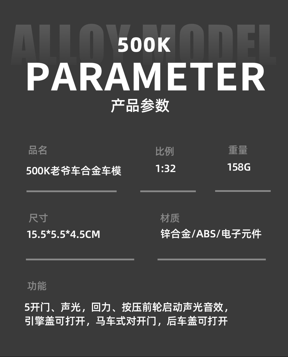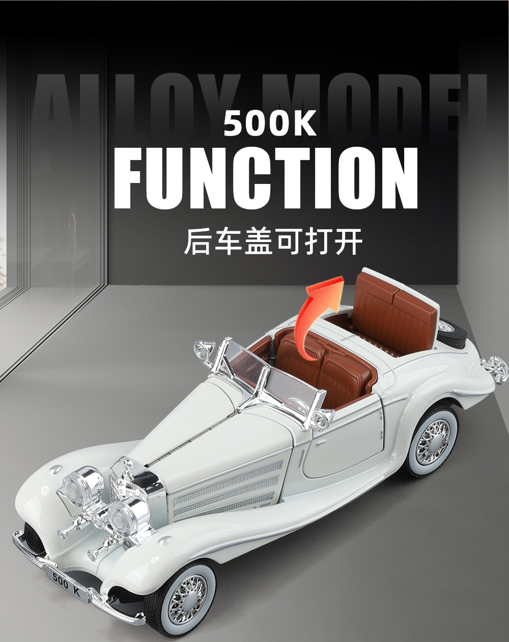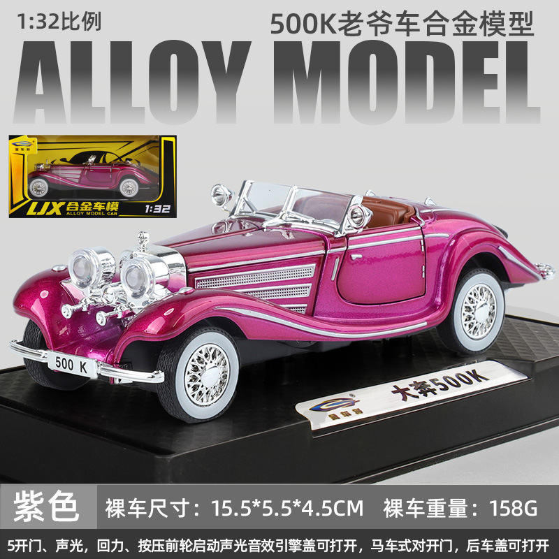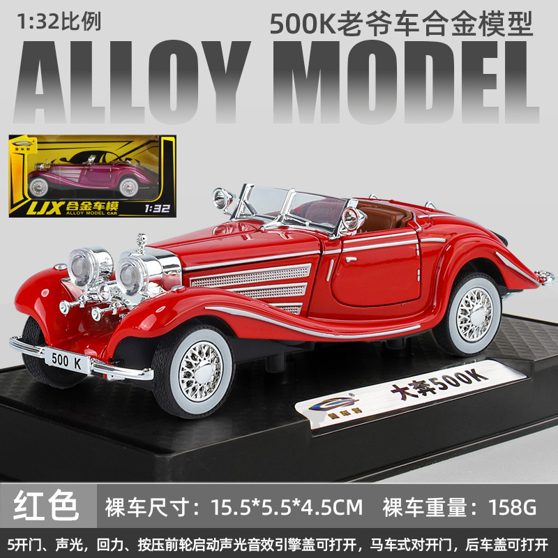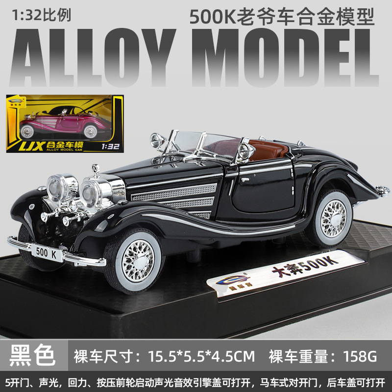 1:32 벤 * 500K 빈티지 자동차 컨버터블 럭셔리카 로고 합금 사운드와 라이트 도어 오프닝 다시 어린이 장난감 자동차 모델스토어 가기