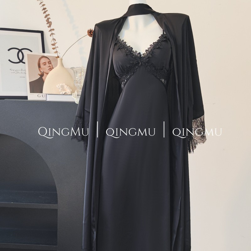 긴 스트랩 나이트 가운 2 피스 홈 의류 가슴 패드 섹시한 프랑스 스타일 순수한 욕망 여성 잠옷 여름 세트
