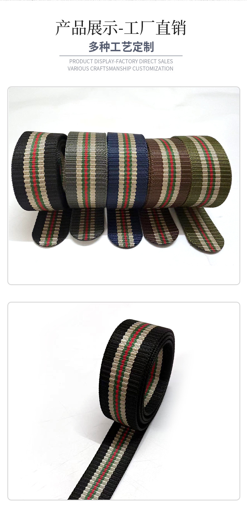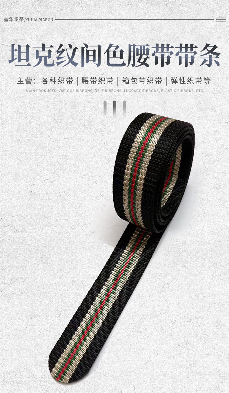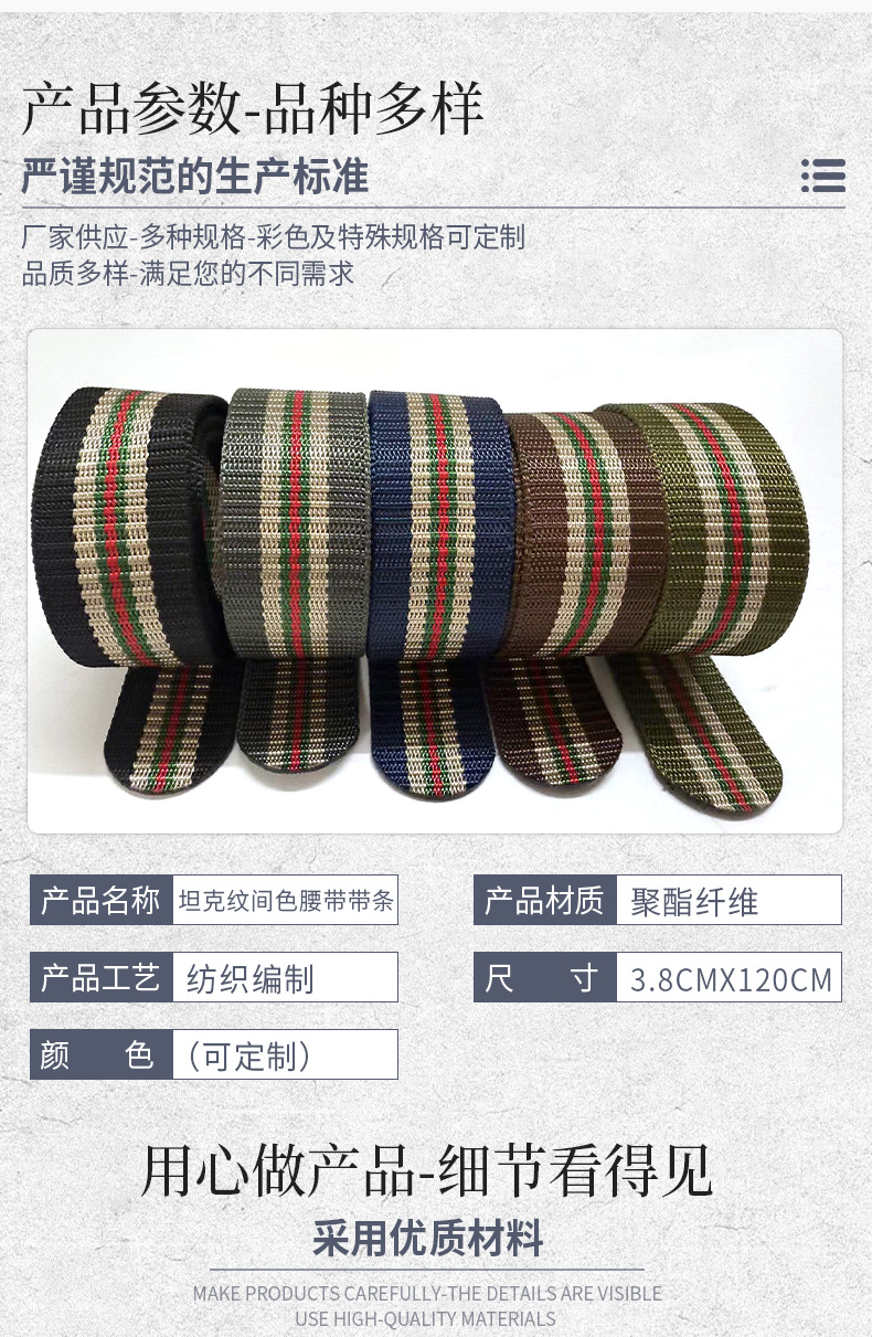 공장 도매 탱크 패턴 색상 스트립이 있는 야외 스포츠 남성용 캔버스 벨트 스트립이 없는 머리가 없는 치아가 없는 벨트