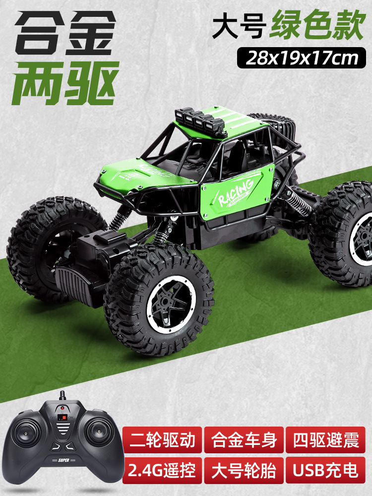 • 대형 [Alloy-Supreme Green] 듀얼 드라이브 오프로드 + 핸들 리모콘(매우 긴 배터리 수명 + 업그레이드된 충돌 방지) + 리튬 배터리 1세트 [배터리 수명 517
