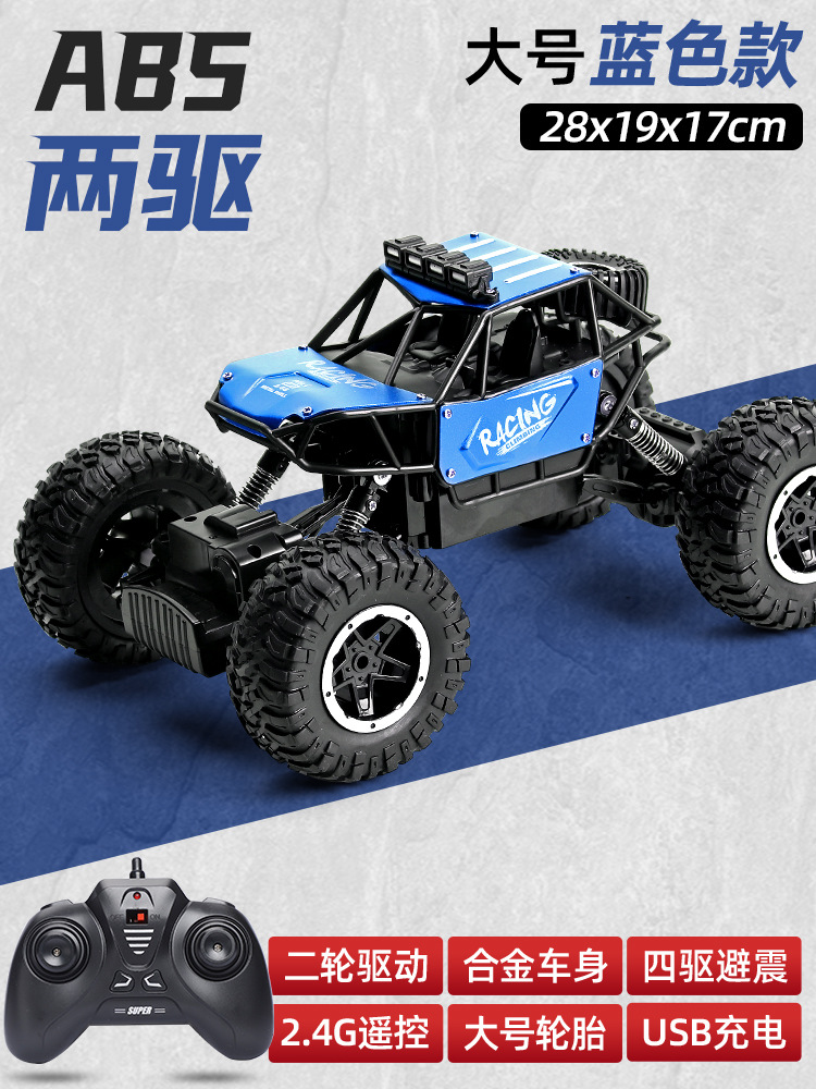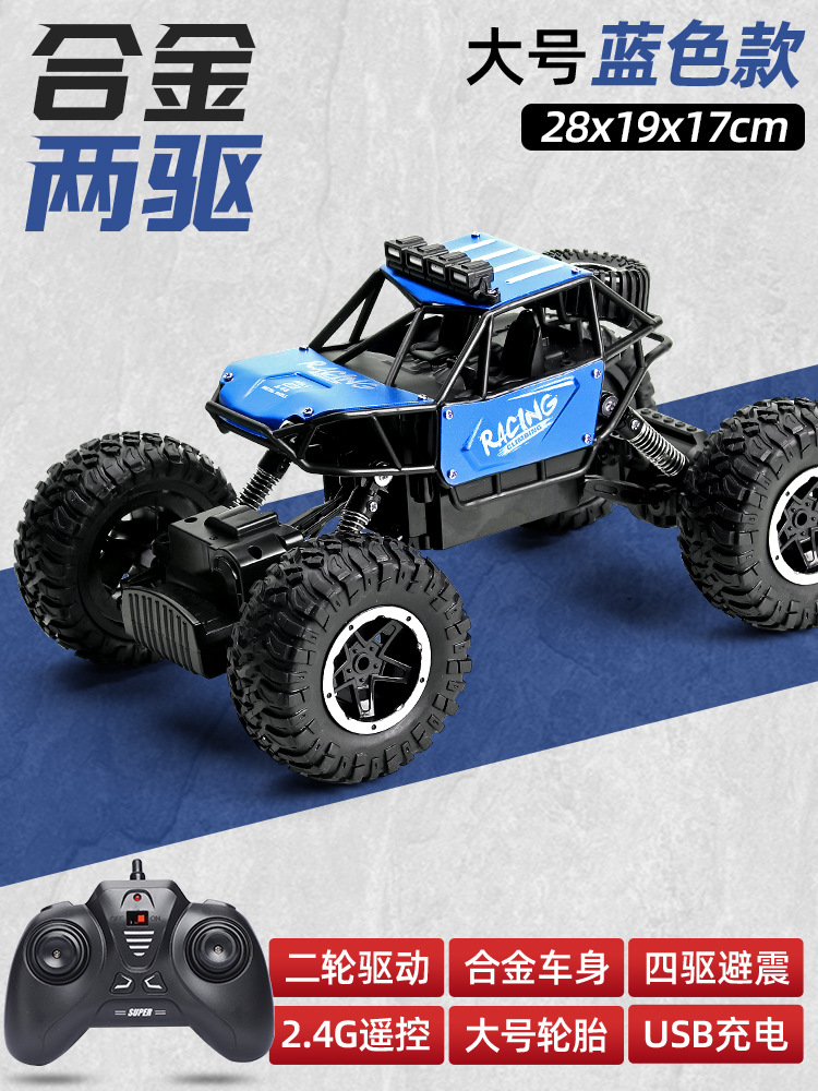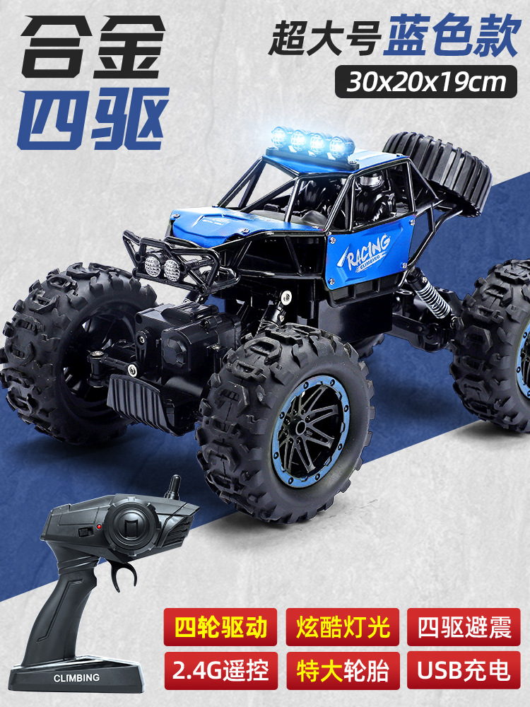 • 대형 [Alloy-Supreme Blue] 듀얼 드라이브 오프로드 + 핸들 리모콘(매우 긴 배터리 수명 + 업그레이드된 충돌 방지) + 대형 리튬 배터리 4개[배터리 수명 16]