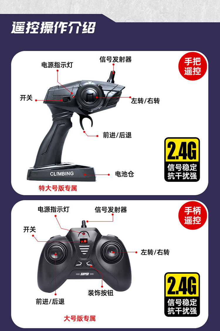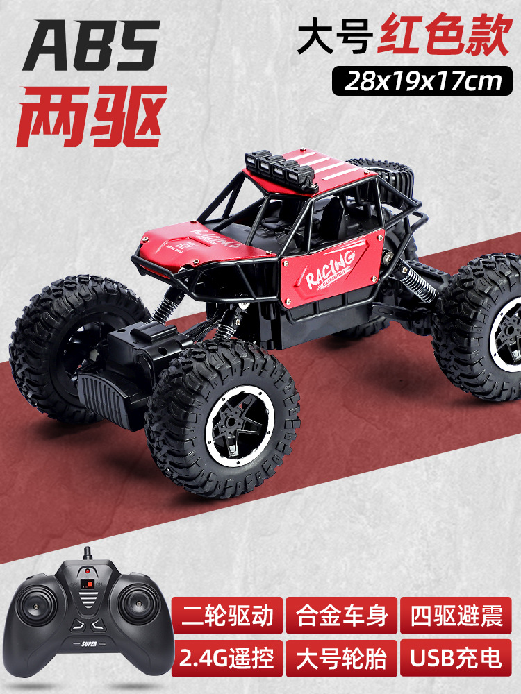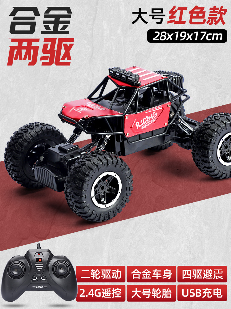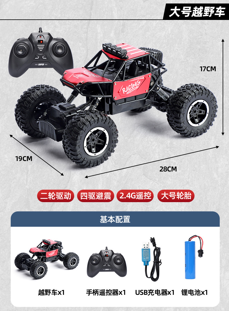• 대형 [Alloy-Supreme Red] 듀얼 드라이브 오프로드 + 핸들 리모컨(매우 긴 배터리 수명 + 업그레이드된 충돌 방지) + 리튬 배터리 1세트 [배터리 수명 59