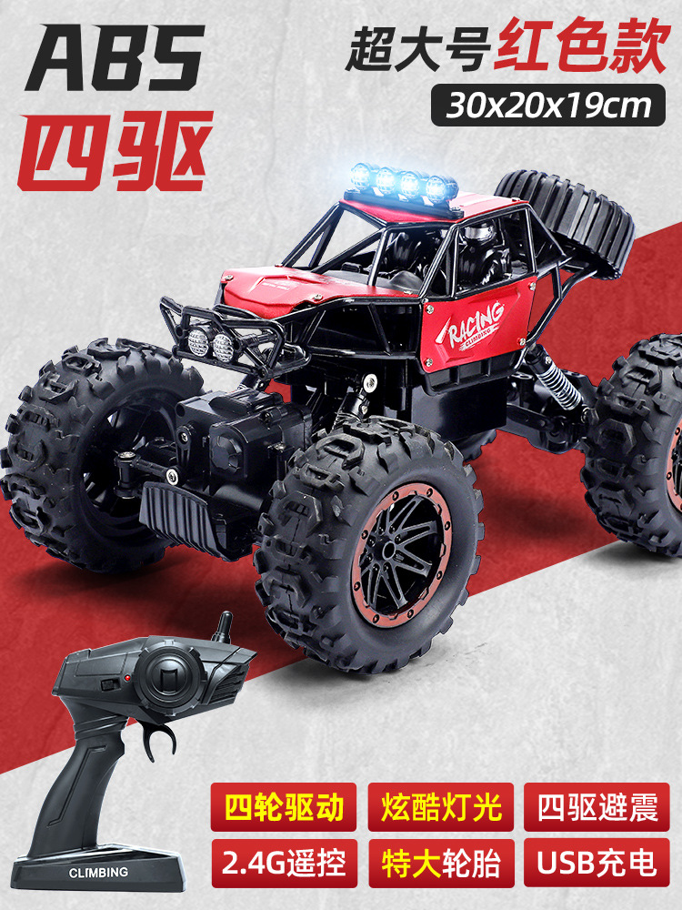 • 대형 [ABS-Extreme Red] 듀얼 드라이브 오프로드 + 핸들 리모콘(매우 긴 배터리 수명 + 업그레이드된 충돌 방지) + 대형 리튬 배터리 4개 [계속 4