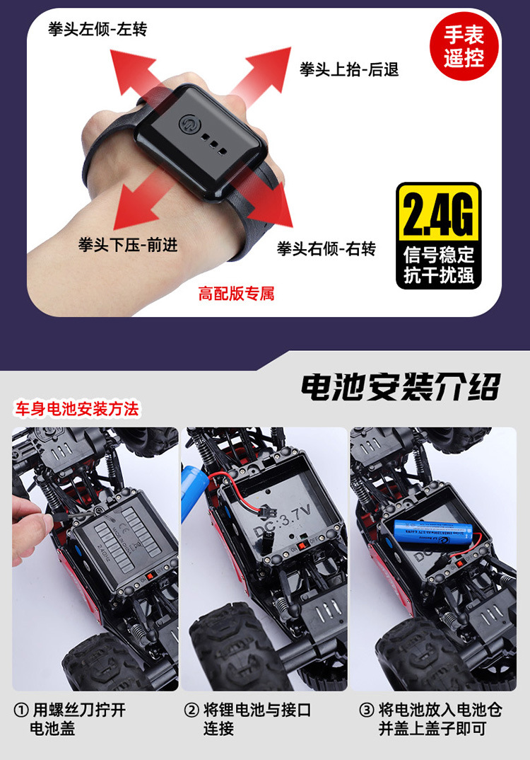 • 초대형 [Alloy-Supreme Red] 시계 리모컨 + 사륜구동 오프로드 + 총형 리모컨(초장기 배터리 수명 + 업그레이드된 충돌 방지) + 리튬 41 1세트