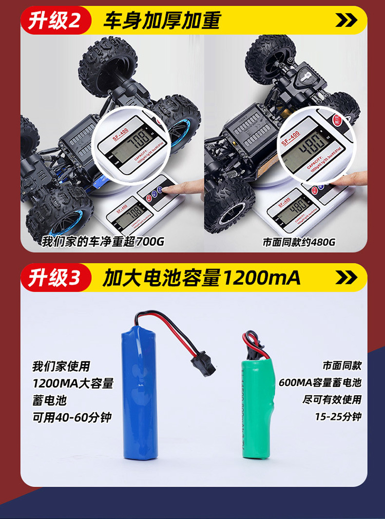 • 대형 [Alloy-Supreme Red] 듀얼 드라이브 오프로드 + 핸들 리모콘(매우 긴 배터리 수명 + 업그레이드된 충돌 방지) + 리튬 배터리 2세트 [배터리 수명 110]