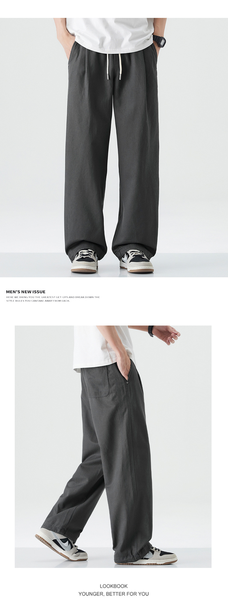 상구 남성복 리오셀 바지 텐셀 캐주얼 바지 남성용 일본식 레트로 아메리칸 스타일 루즈핏 스트레이트 와이드 팬츠