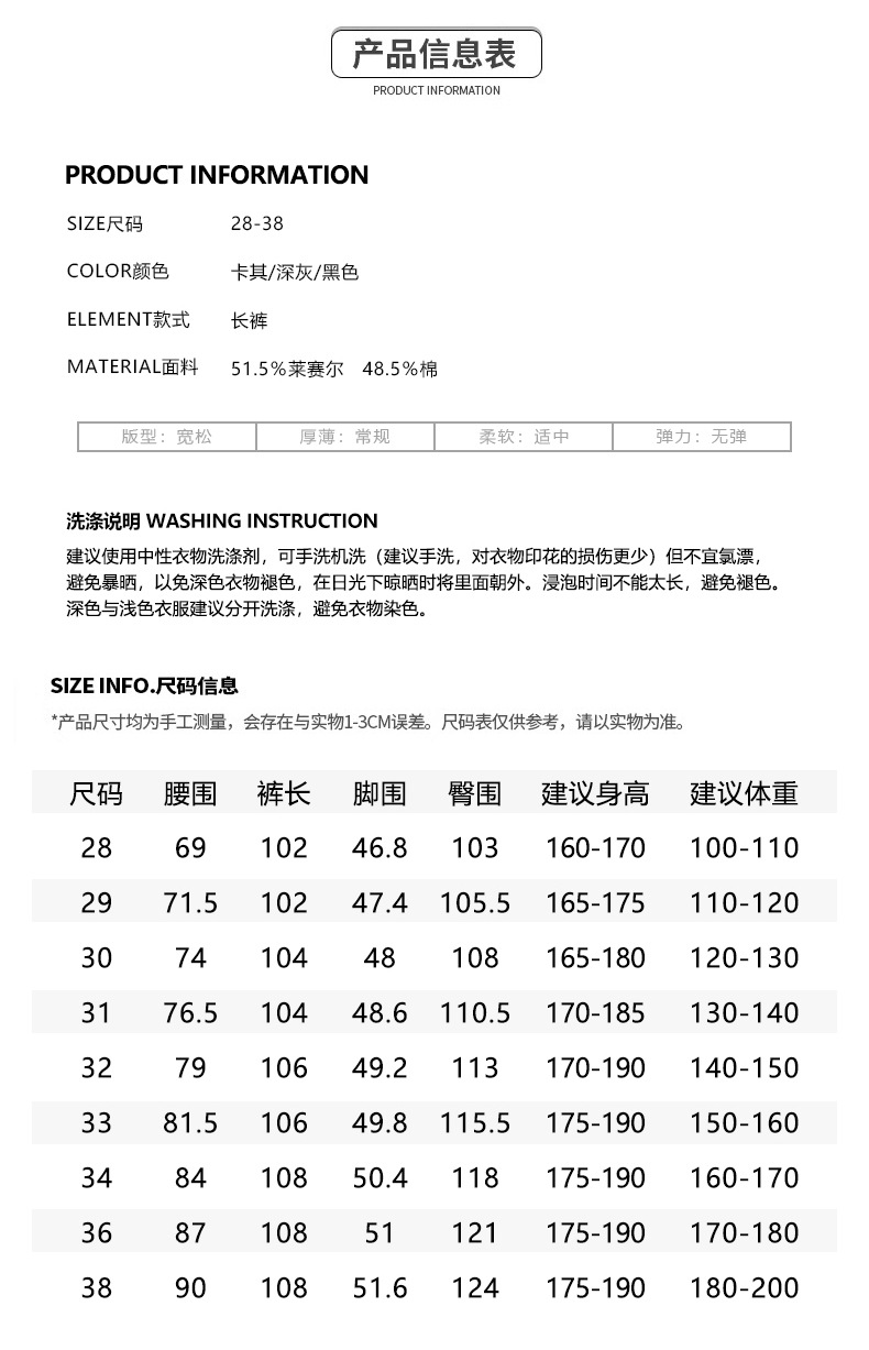 상구 남성복 리오셀 바지 텐셀 캐주얼 바지 남성용 일본식 레트로 아메리칸 스타일 루즈핏 스트레이트 와이드 팬츠스토어 가기