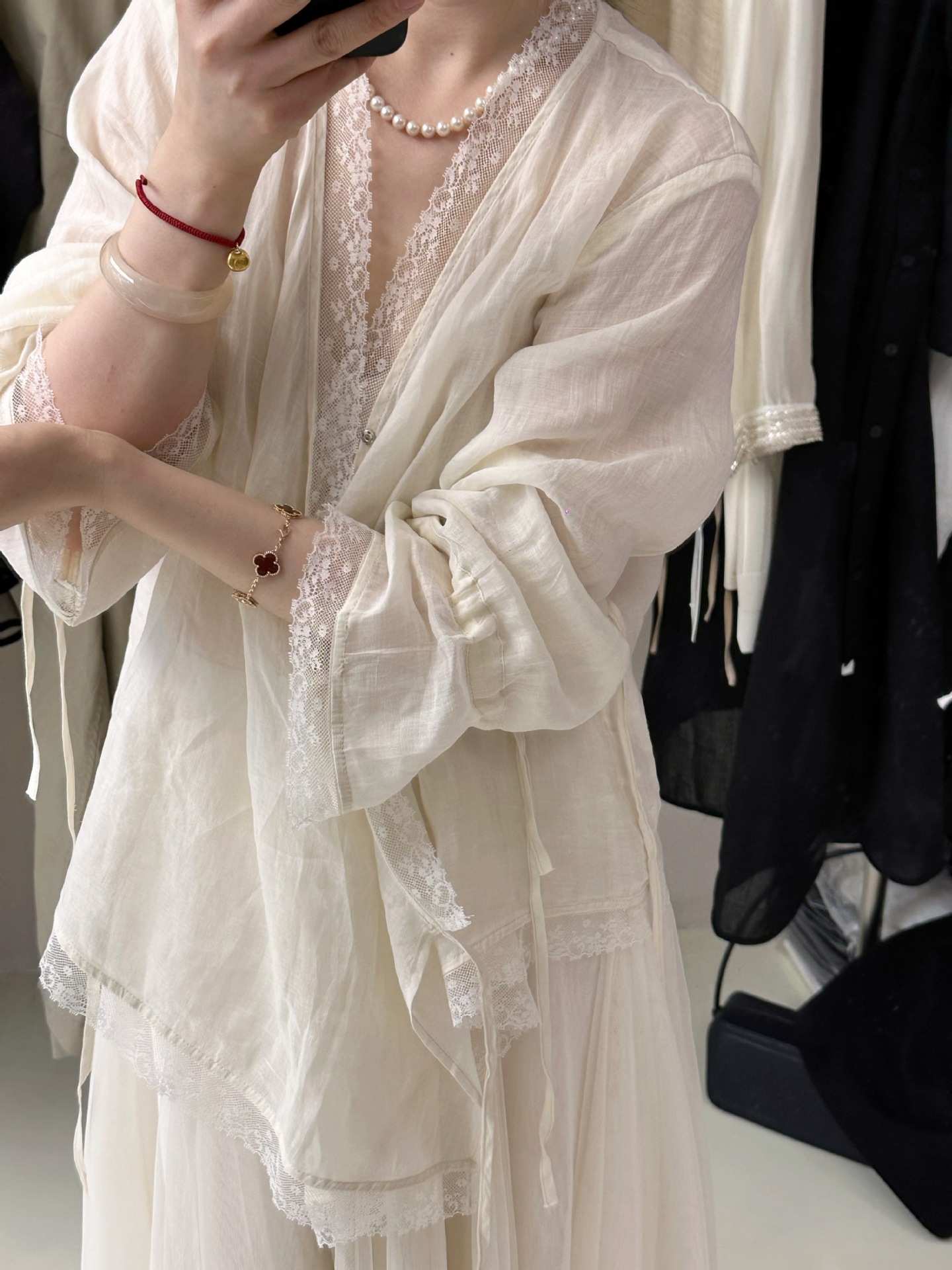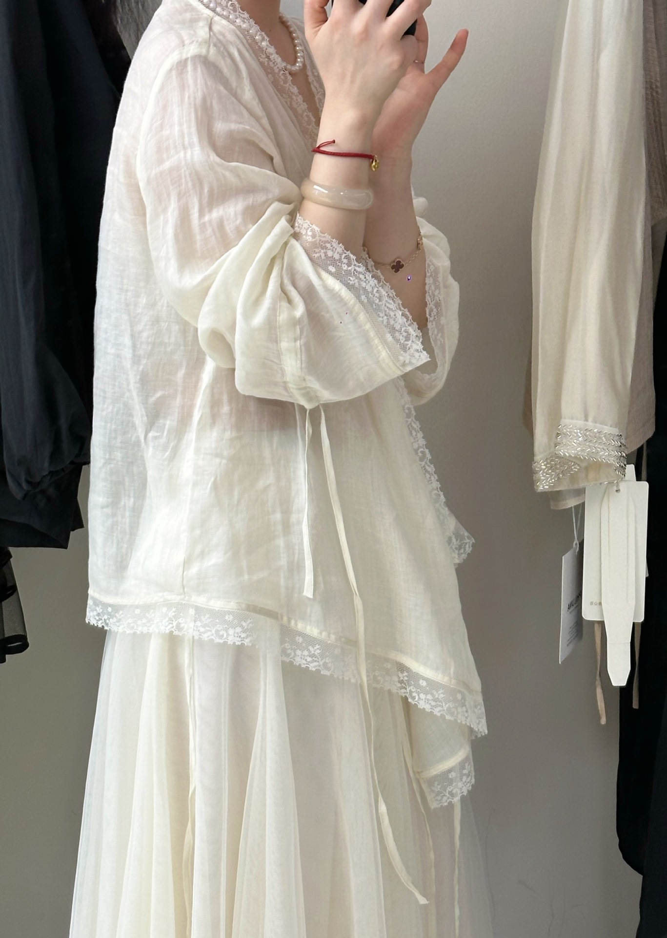 여성을위한 살구색 V 넥 레이스 엣지 셔츠 독특한 아름다운 슈퍼 잘 생긴 젊은 라미 셔츠 요정 플러터링 탑스토어 가기