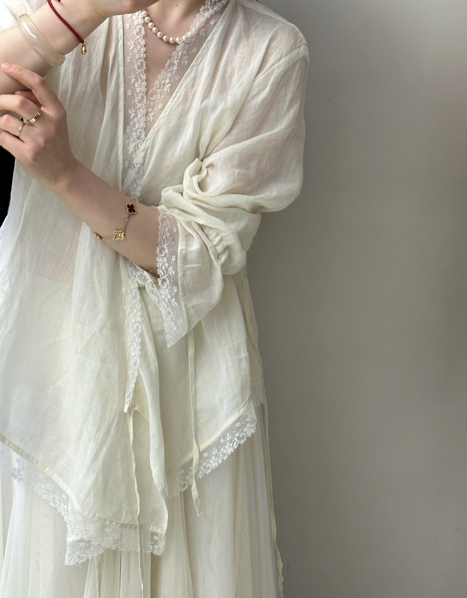 여성을위한 살구색 V 넥 레이스 엣지 셔츠 독특한 아름다운 슈퍼 잘 생긴 젊은 라미 셔츠 요정 플러터링 탑