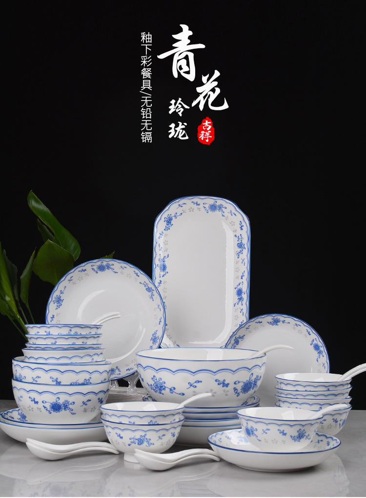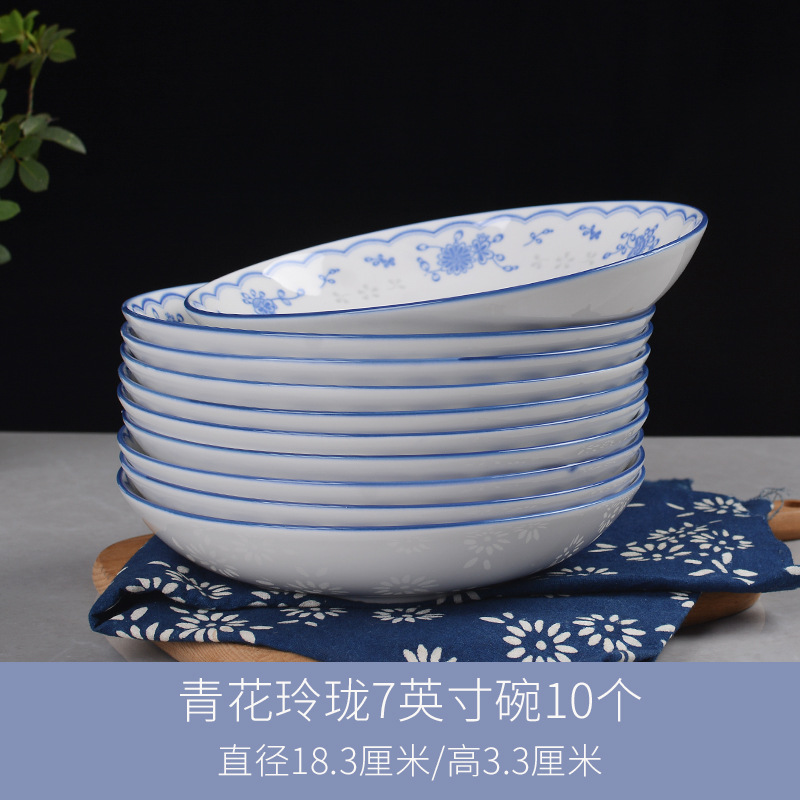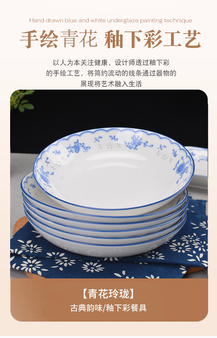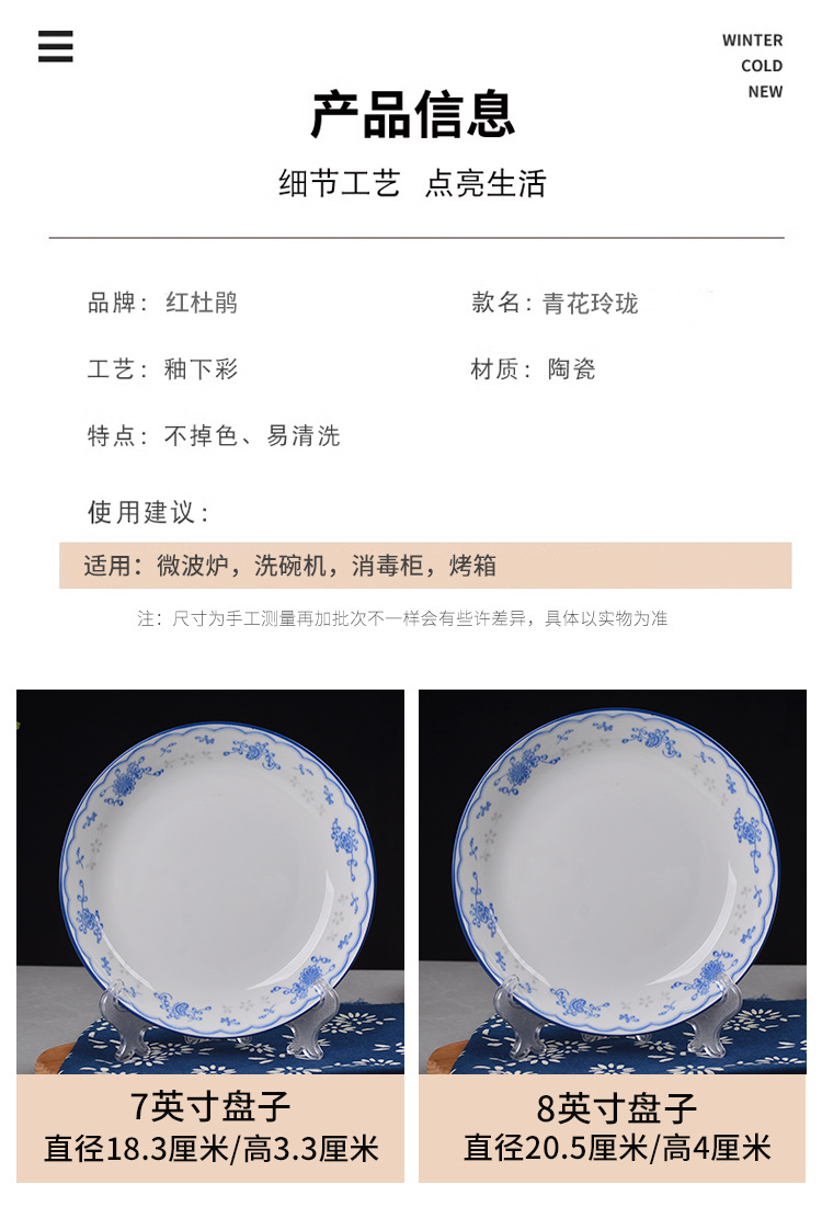 Jingdezhen 접시 식기 세라믹 접시 가정용 둥근 접시 크리 에이 티브 접시 중국 요리 접시 과일 접시 6/10 개스토어 가기