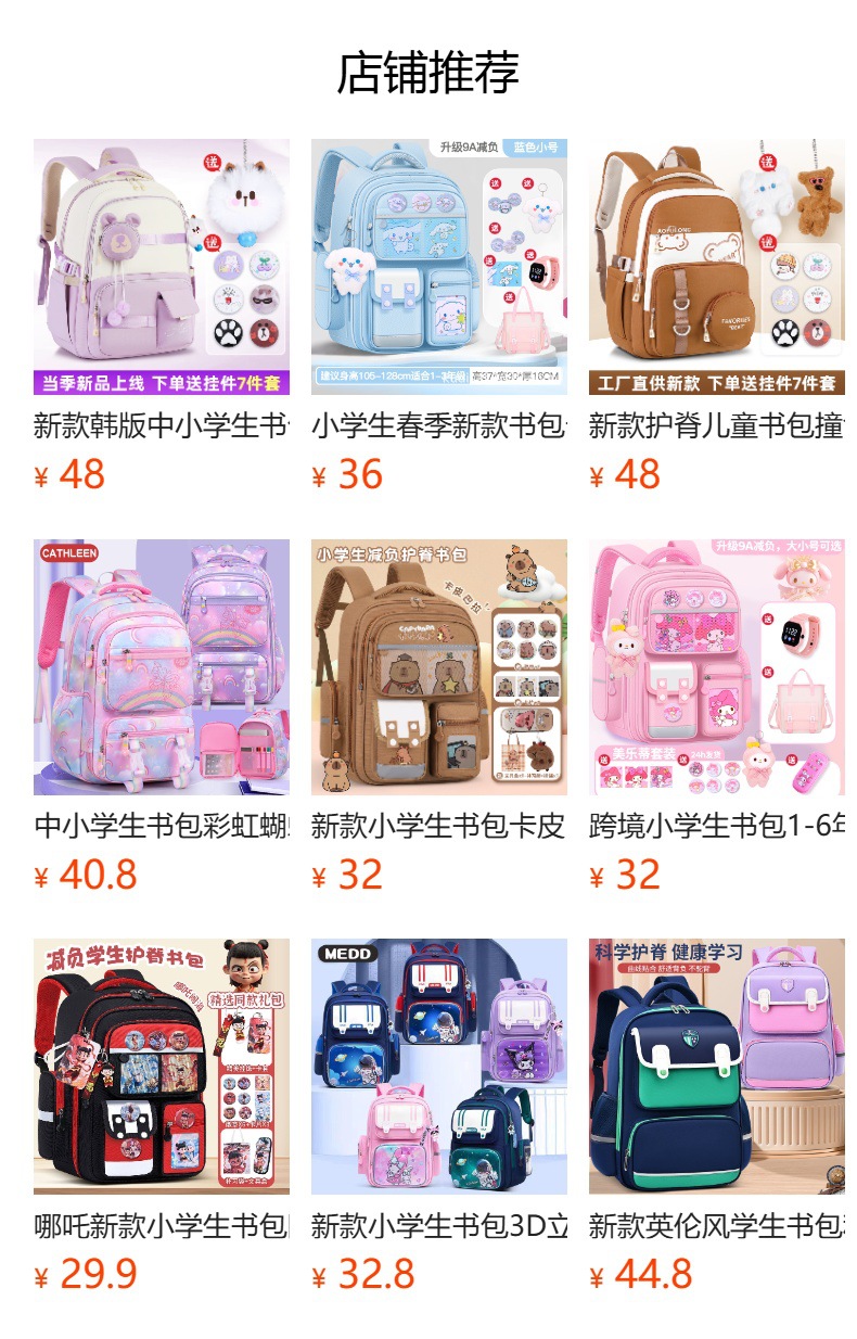 초등학생 가방 1-6 학년 소녀 귀여운 유행 애니메이션 만화 다기능 가방 제조 업체 재고 도매스토어 가기