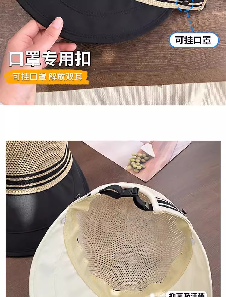 여름용 통기성 좋은 여성용 버킷햇, 마스크 착용 가능, 야외용 햇빛 가리개, 헤어밴드 착용 가능, 챙 큰 모자스토어 가기