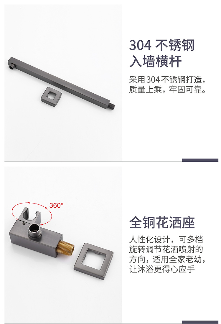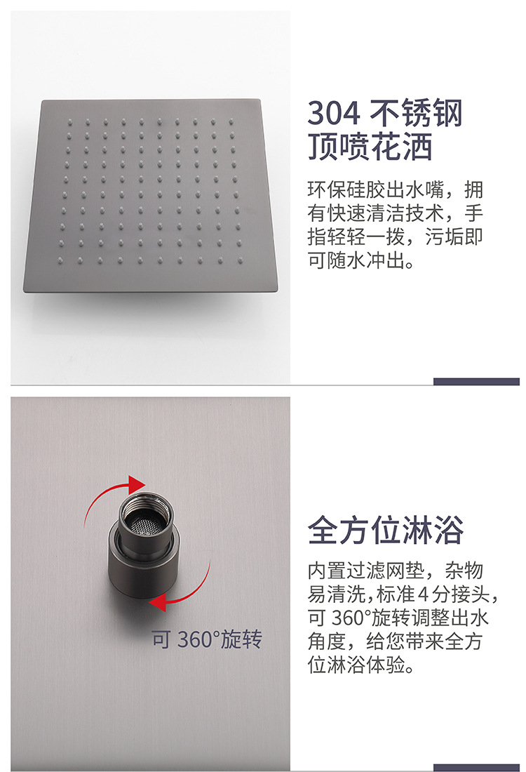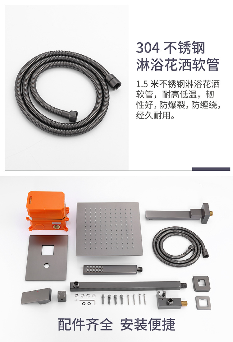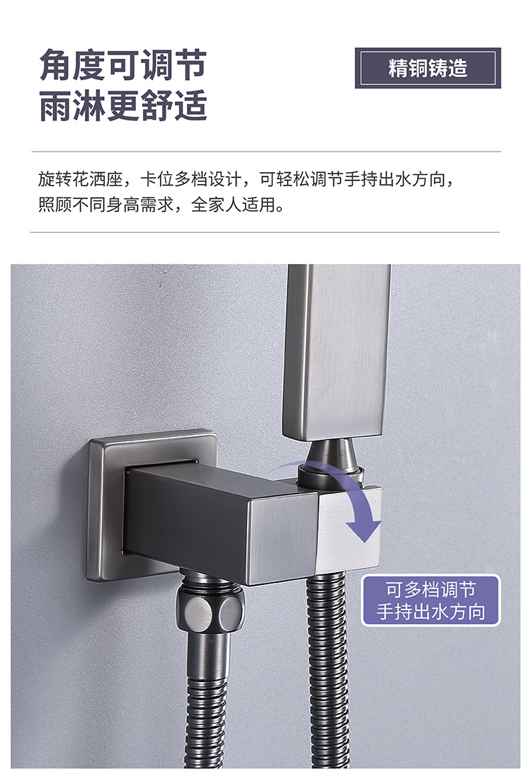 건 그레이 전체 구리 숨겨진 샤워 헤드 벽에 내장 숨겨진 샤워 샤워 수전 세트 냉온수