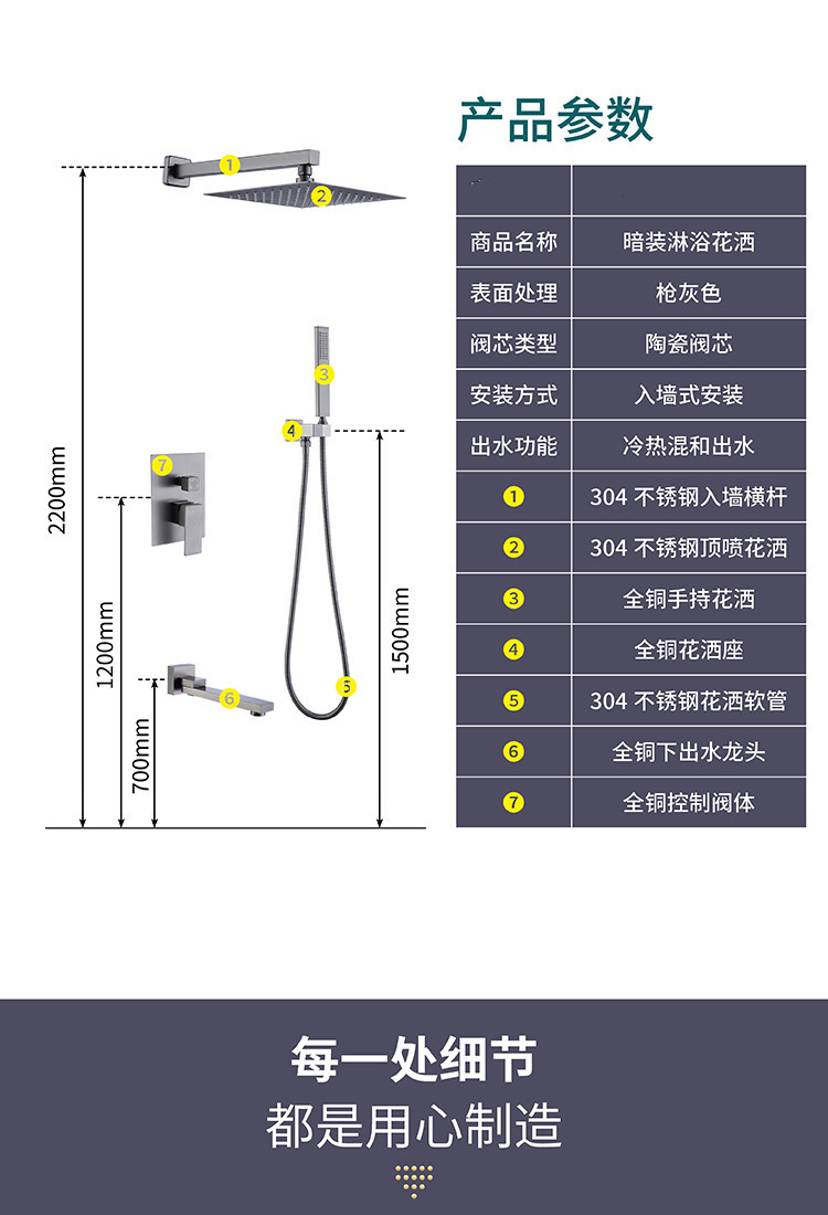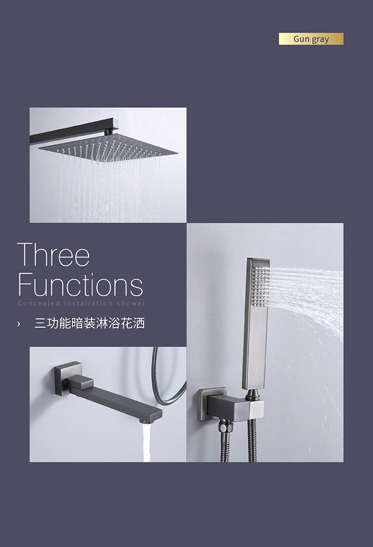 건 그레이 전체 구리 숨겨진 샤워 헤드 벽에 내장 숨겨진 샤워 샤워 수전 세트 냉온수스토어 가기