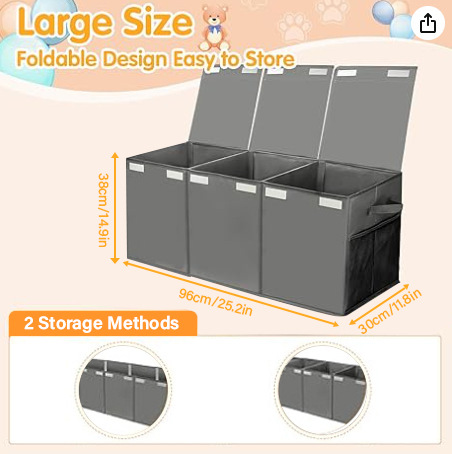 • 뚜껑이 있는 회색 3칸(96*30*38cm)