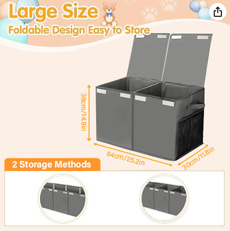 • 뚜껑이 있는 회색 수납칸 2개(64*30*38cm)