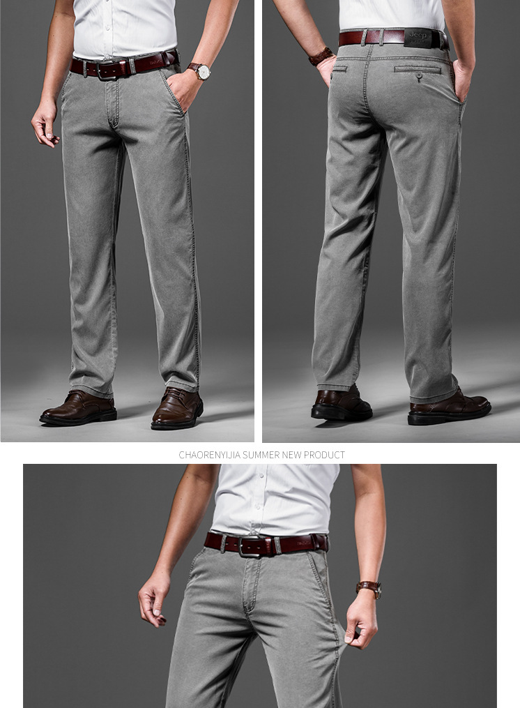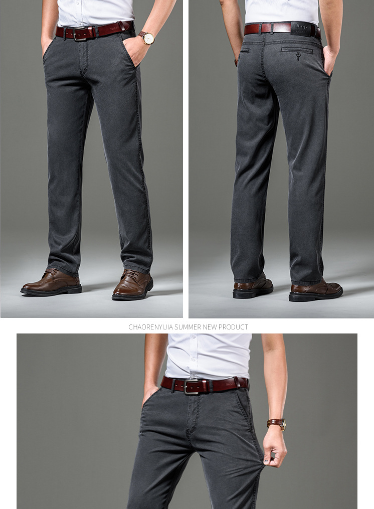 여름 신작 남성 캐주얼 긴 바지 텐셀 얇은 스트레이트 루즈 그레이 바지 다용도 미드 웨이스트 J6011