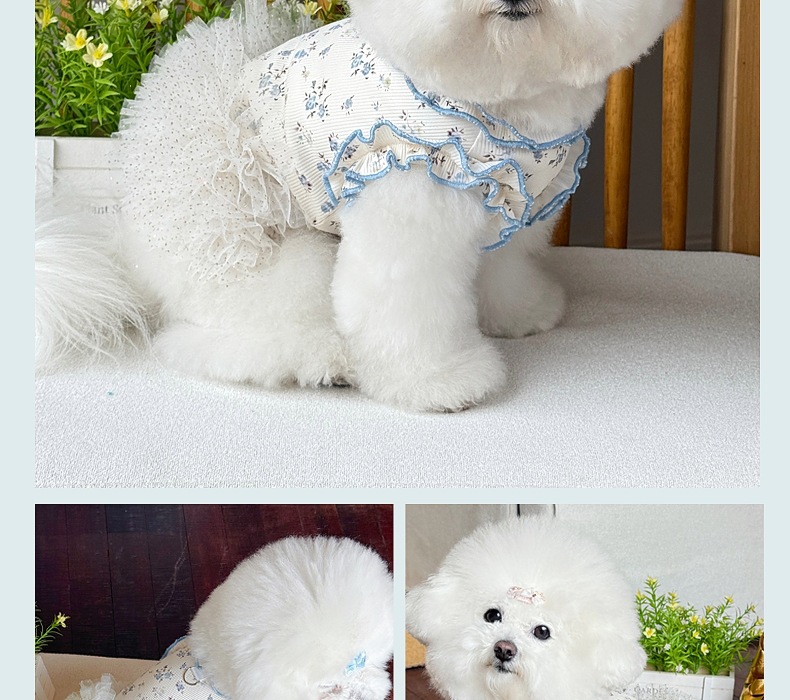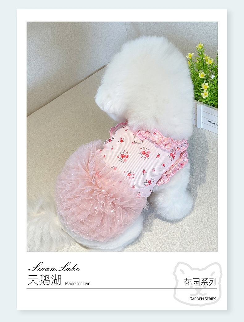 여름 새로운 고양이 개 인쇄 홈 옷 여름 얼음 실크 코튼 스커트 테디 베어 애완 동물 옷 도매스토어 가기