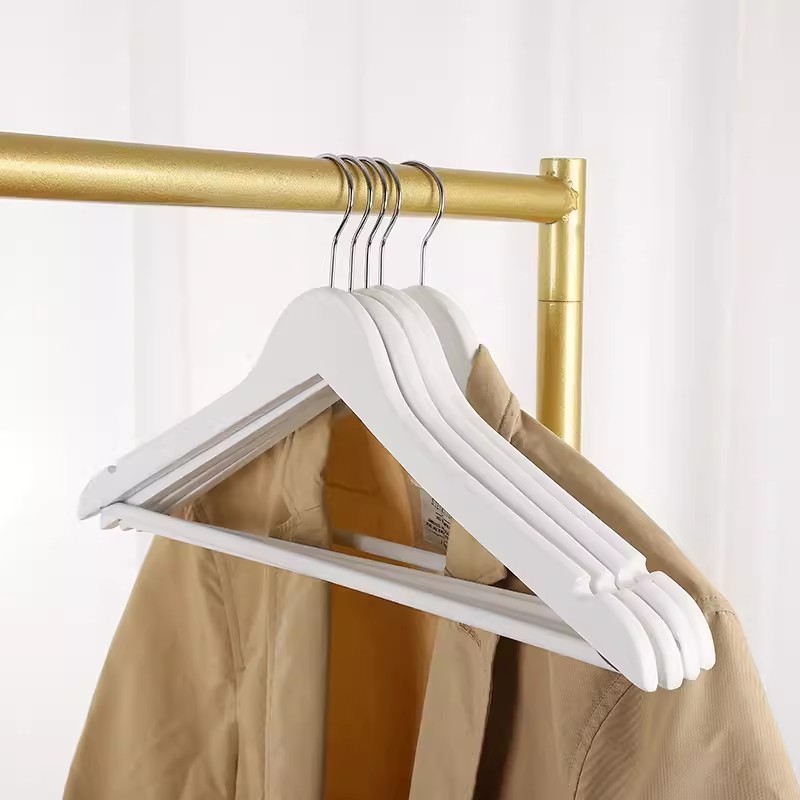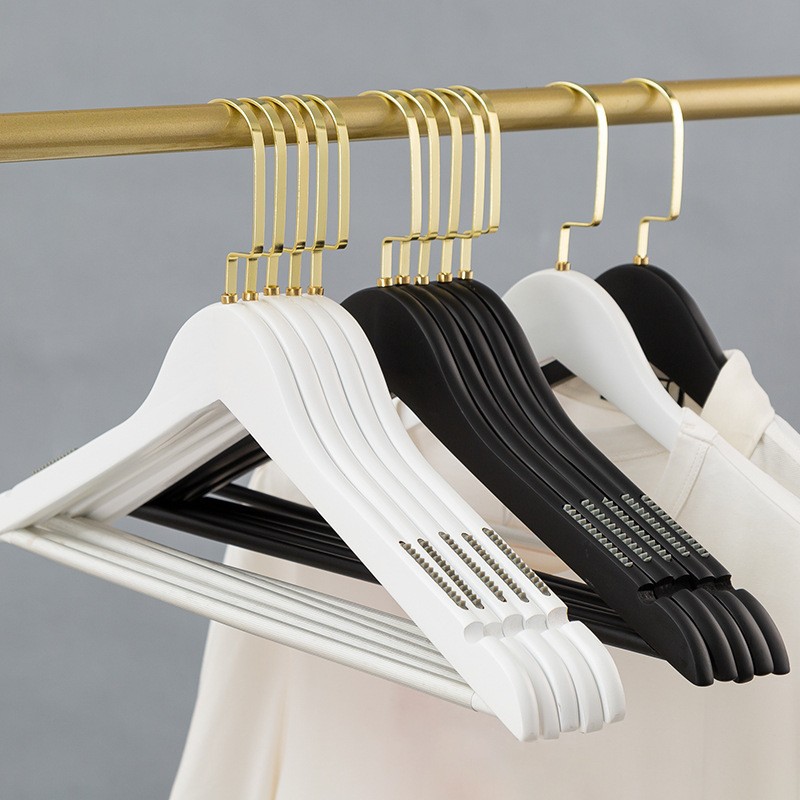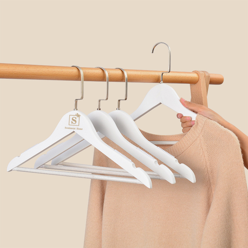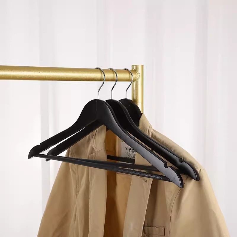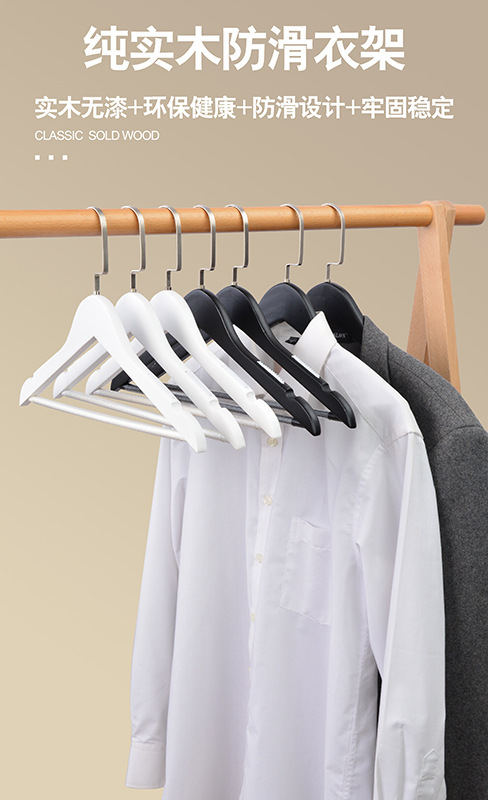 흑백 단단한 나무 미끄럼 방지 옷걸이 의류 매장 특별 남성 의류 지원 나무 옷걸이 레터링 로고 호텔스토어 가기
