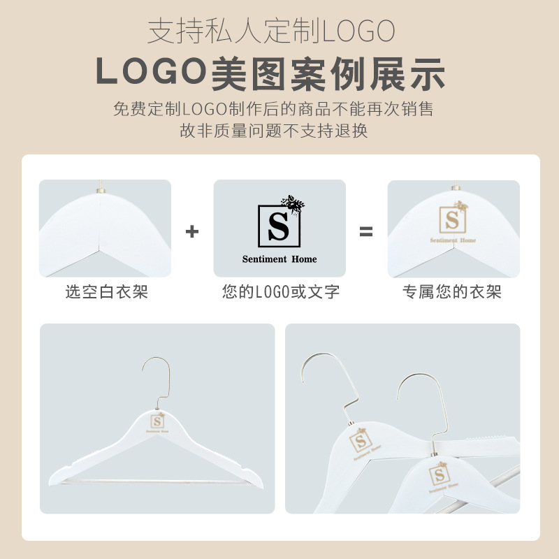 흑백 단단한 나무 미끄럼 방지 옷걸이 의류 매장 특별 남성 의류 지원 나무 옷걸이 레터링 로고 호텔