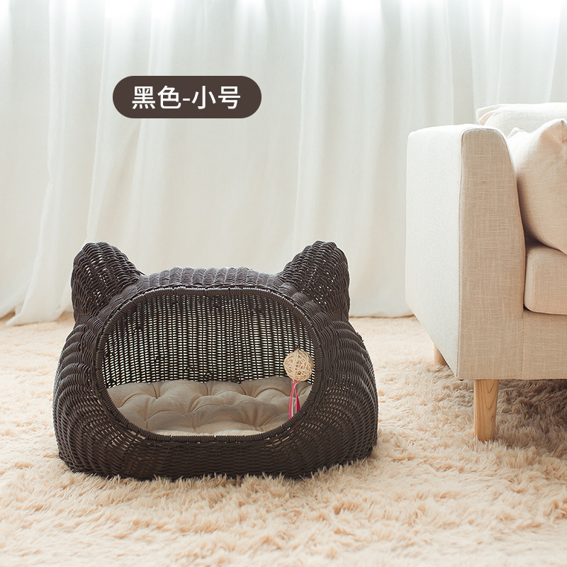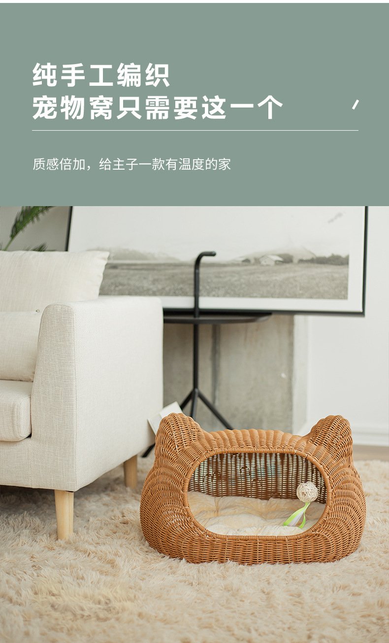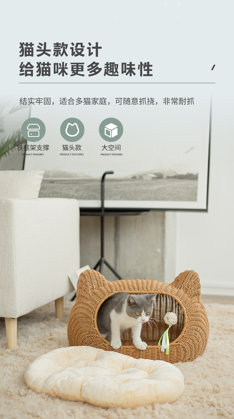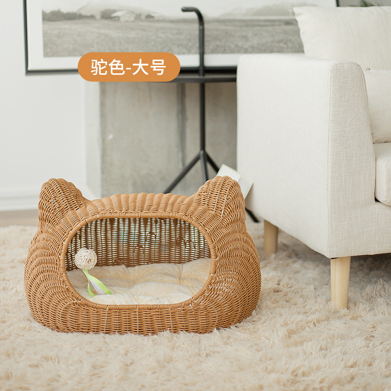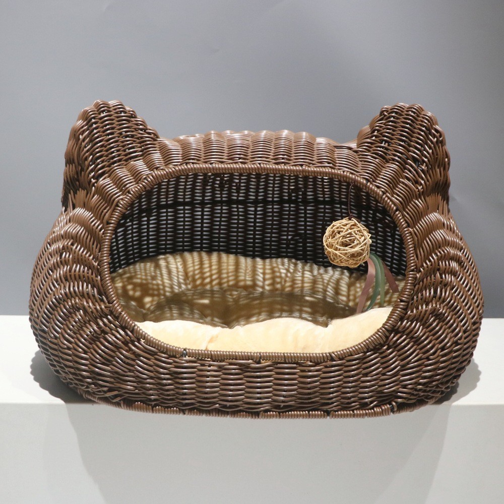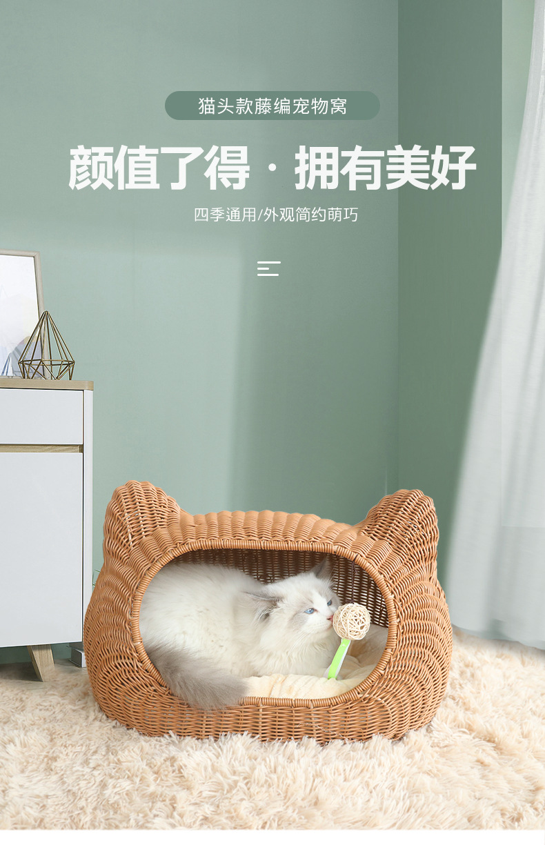 사계절 사용 가능한 가을 겨울 따뜻한 인조 등나무 고양이 빌라, 새끼 고양이용 탈부착 및 세탁 가능한 집, 고양이 침대, 강아지 집, 인기 상품스토어 가기