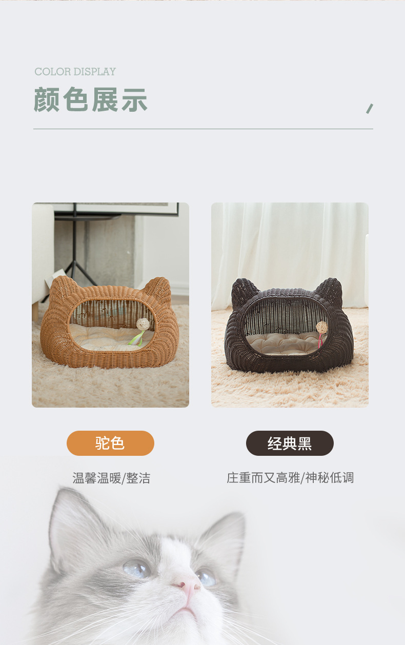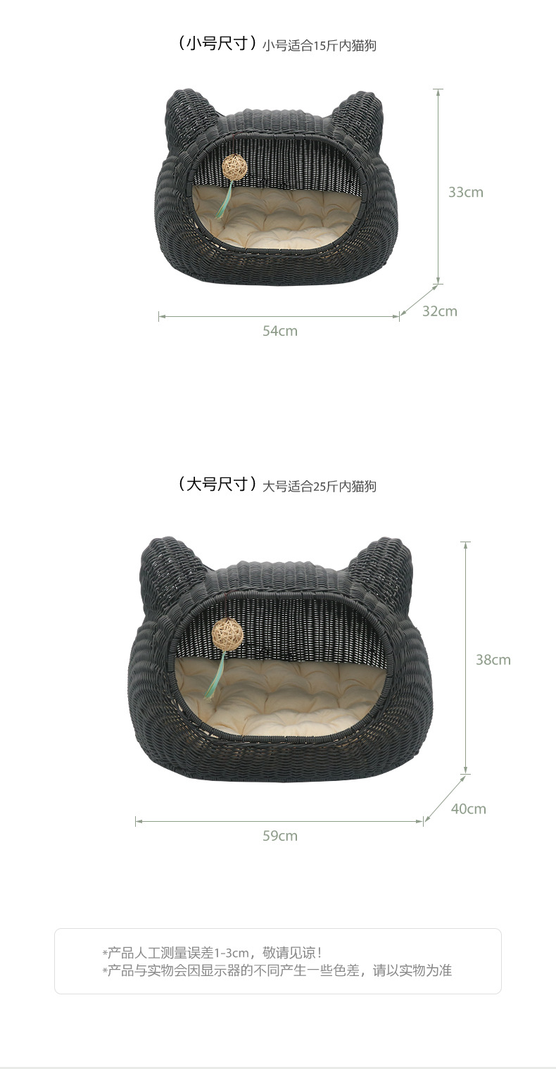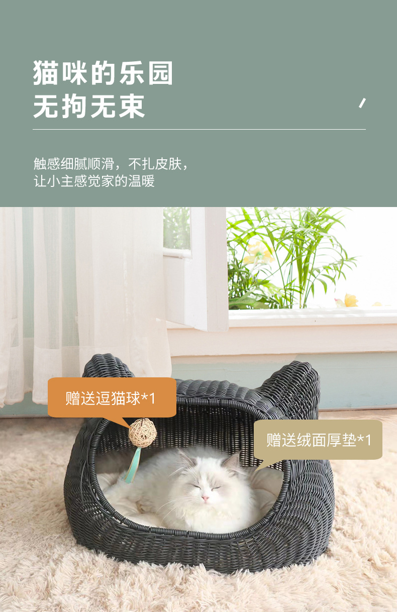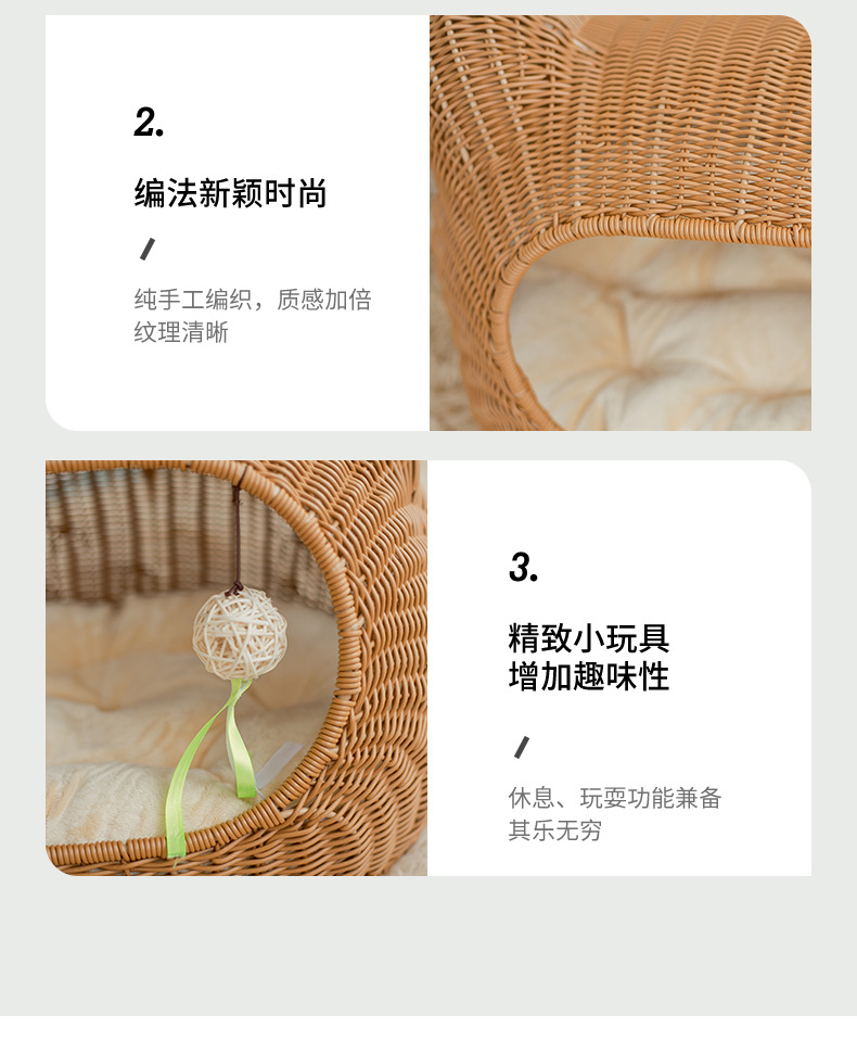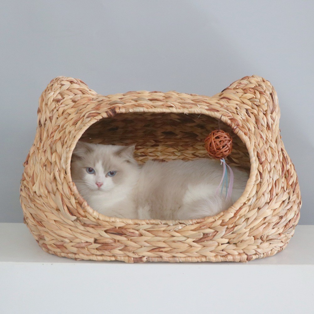 사계절 사용 가능한 가을 겨울 따뜻한 인조 등나무 고양이 빌라, 새끼 고양이용 탈부착 및 세탁 가능한 집, 고양이 침대, 강아지 집, 인기 상품스토어 가기