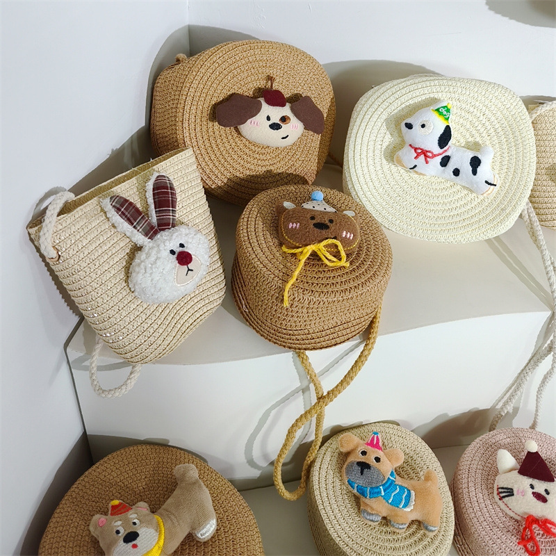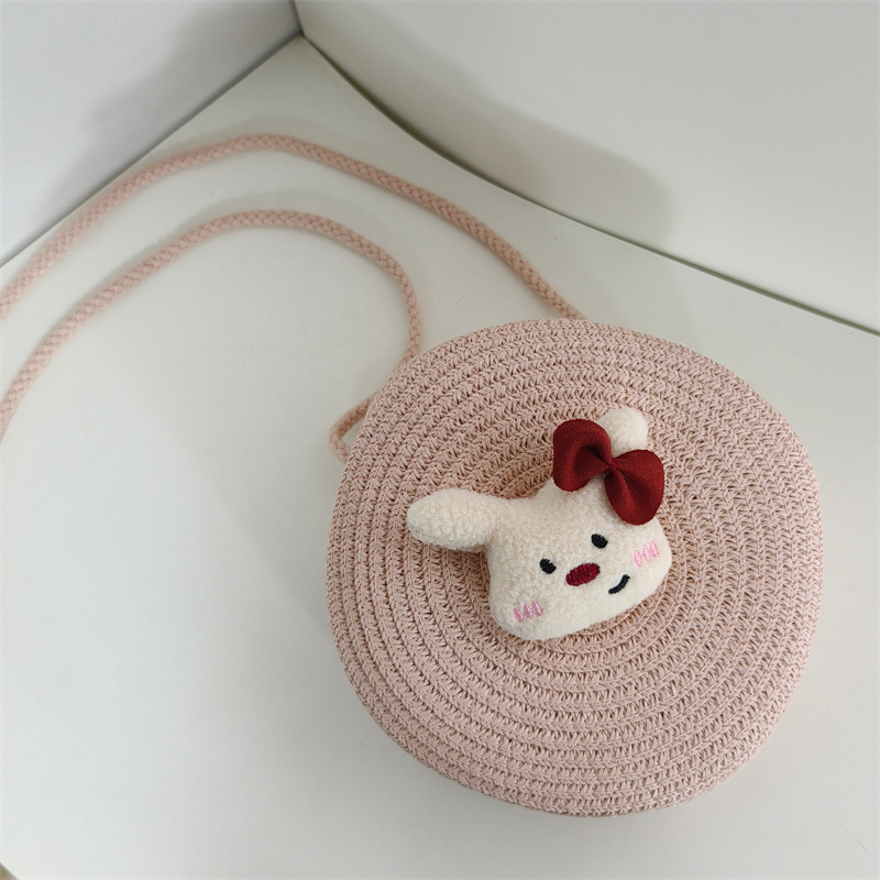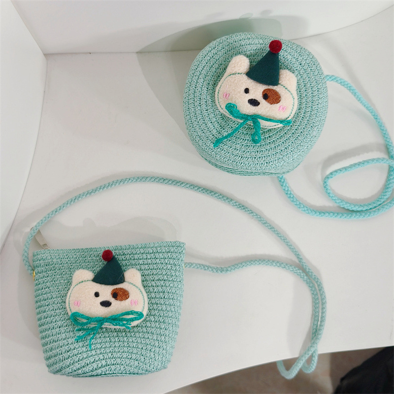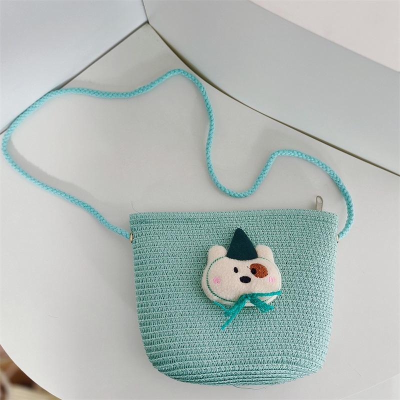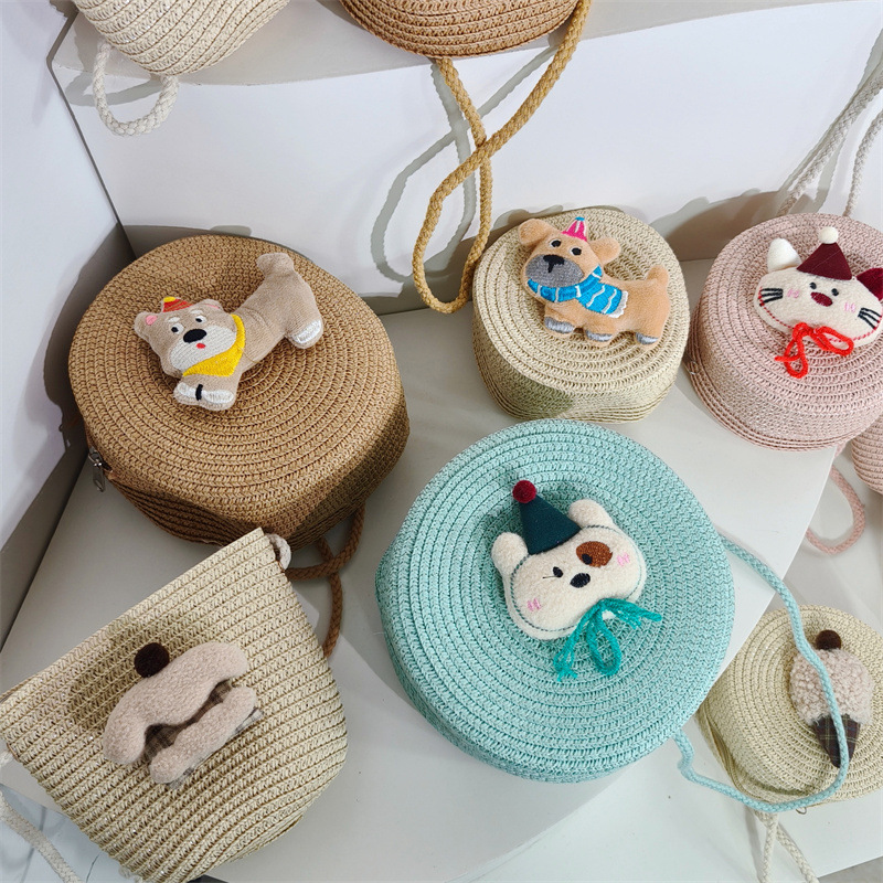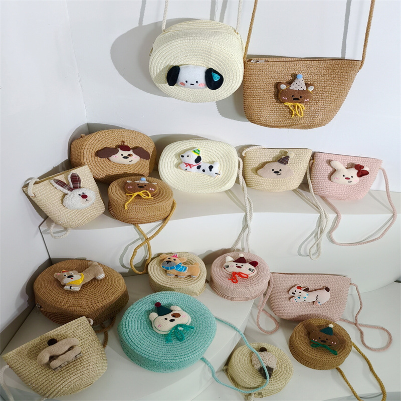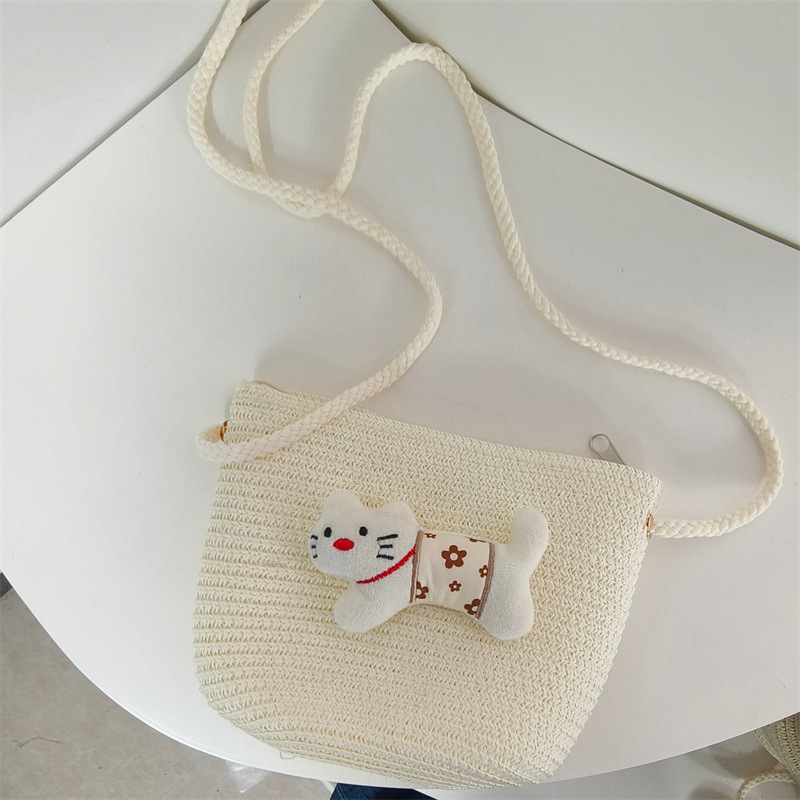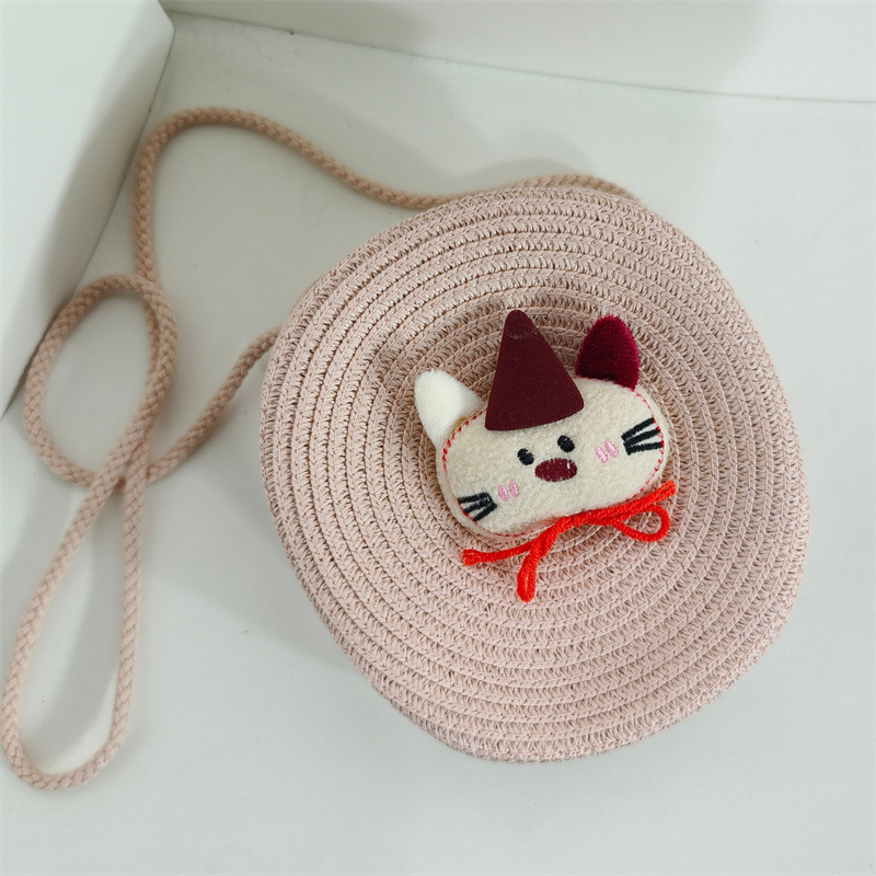 어린이 귀여운 만화 애니메이션 Kt 고양이 밀짚 작은 가방 소년과 소녀 크로스 바디 작은 가방 아기 동전 손으로 짠 가방