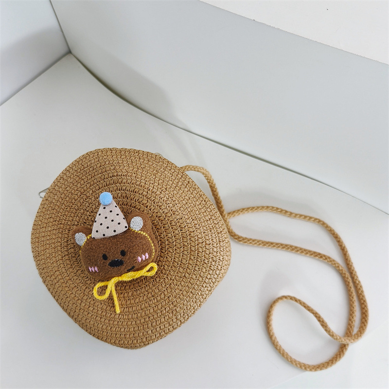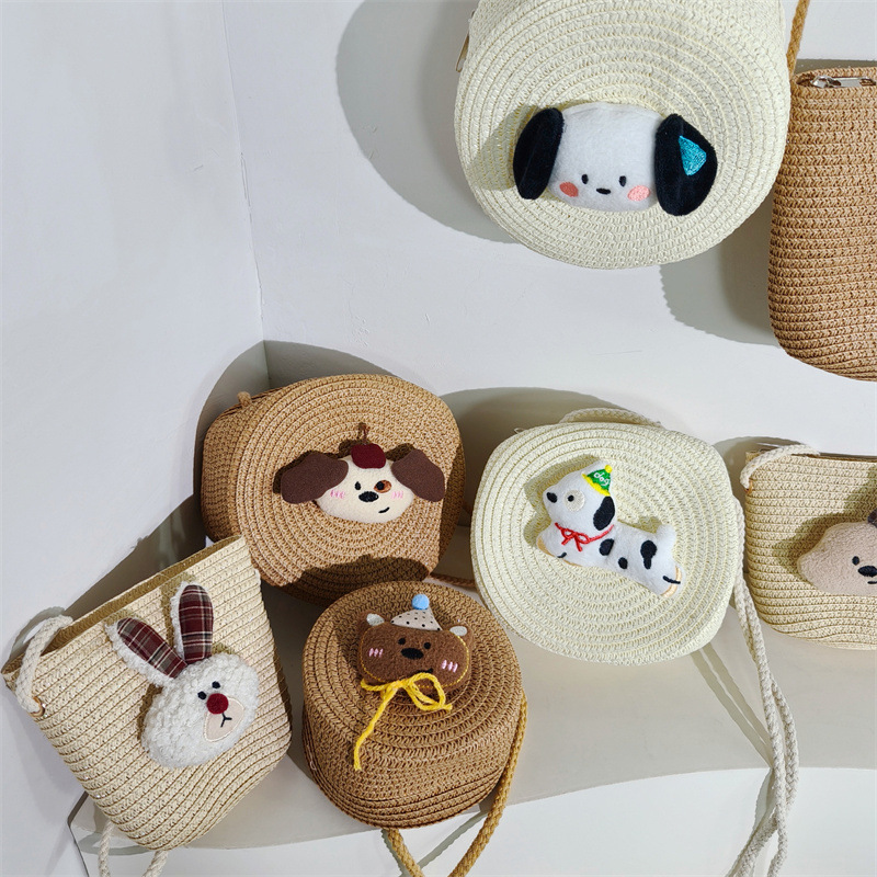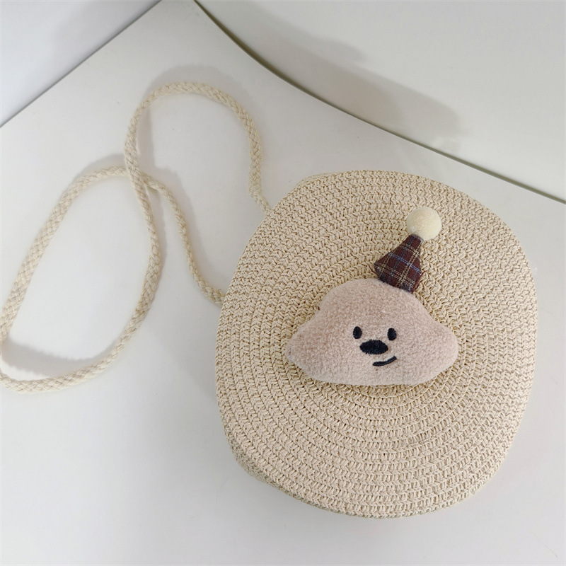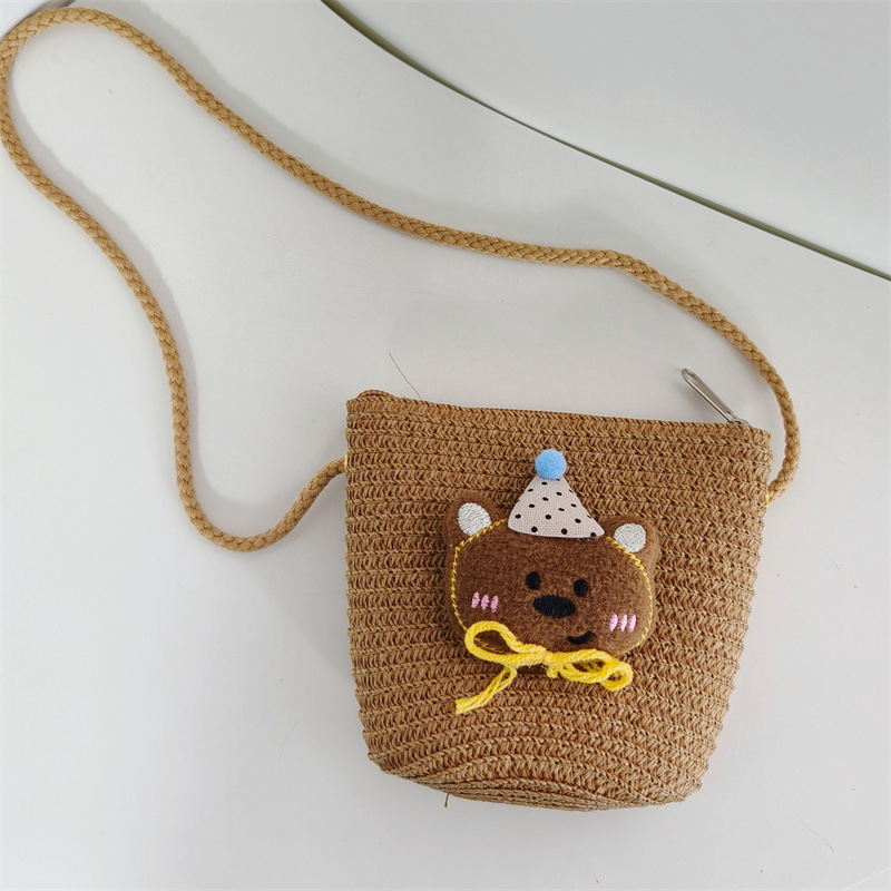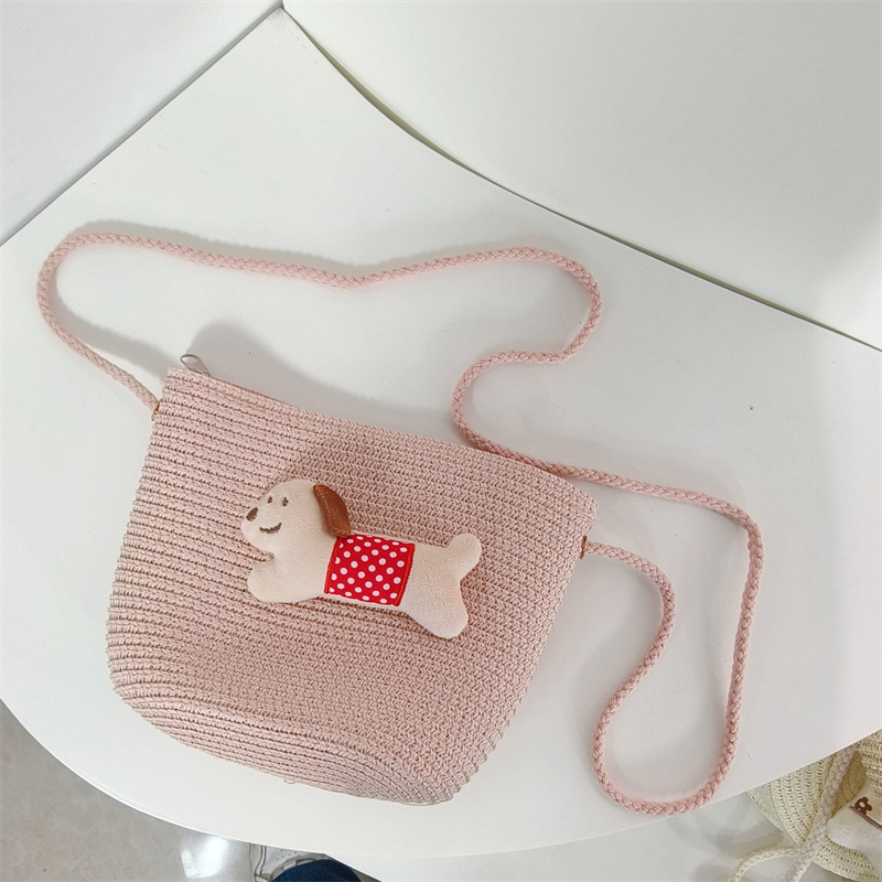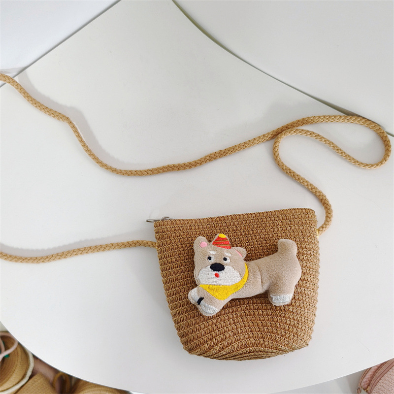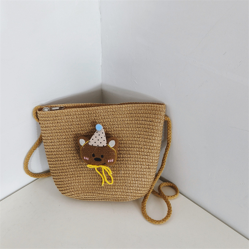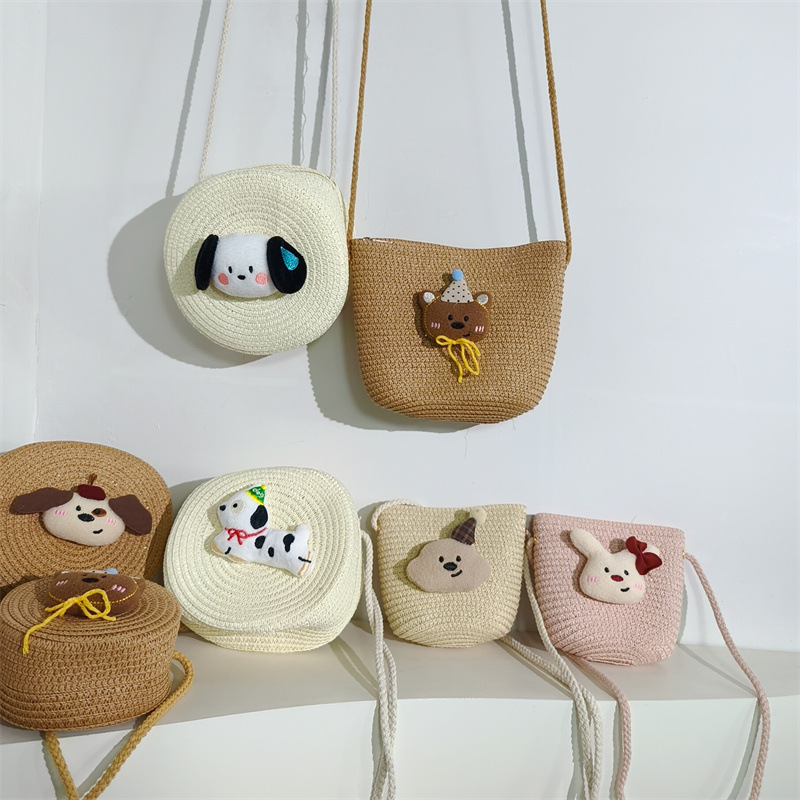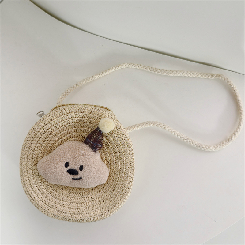 어린이 귀여운 만화 애니메이션 Kt 고양이 밀짚 작은 가방 소년과 소녀 크로스 바디 작은 가방 아기 동전 손으로 짠 가방
