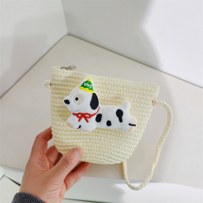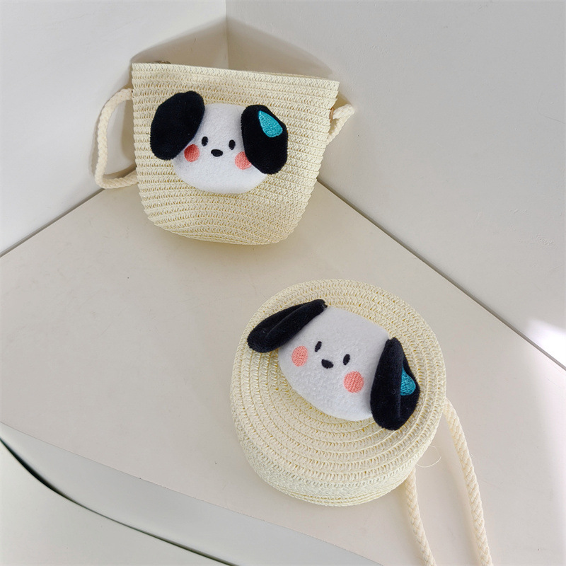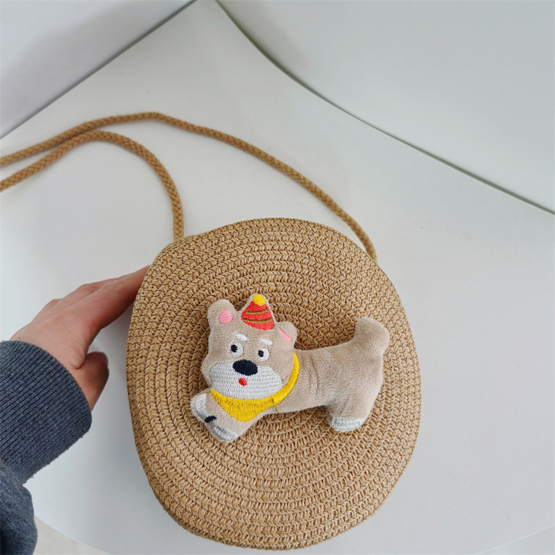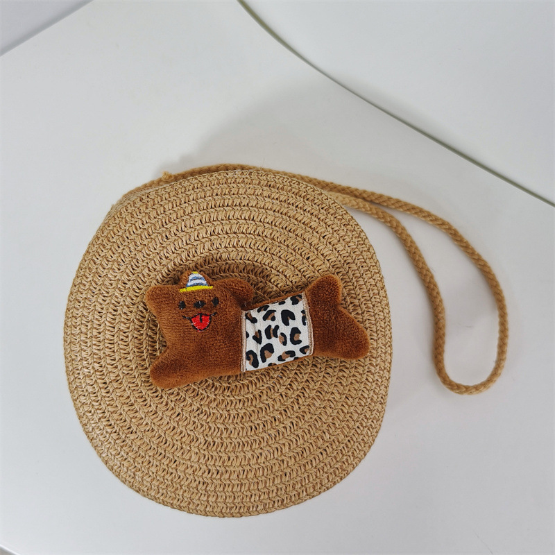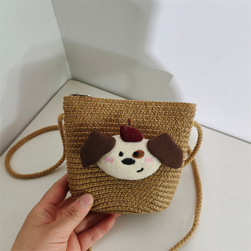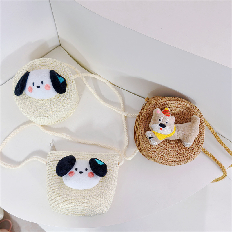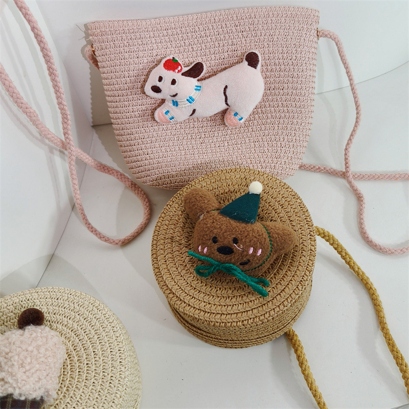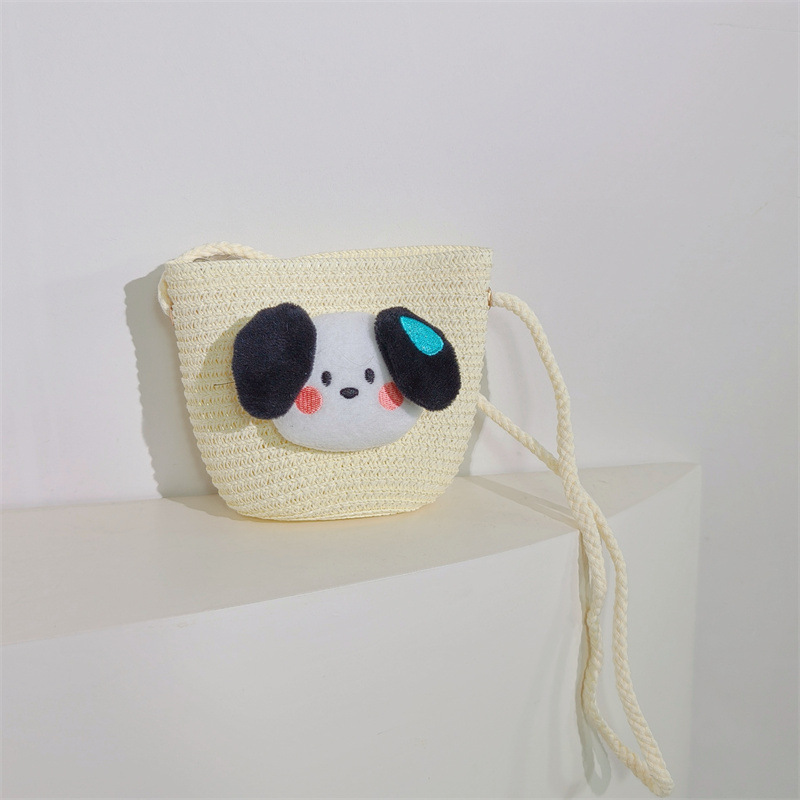 어린이 귀여운 만화 애니메이션 Kt 고양이 밀짚 작은 가방 소년과 소녀 크로스 바디 작은 가방 아기 동전 손으로 짠 가방
