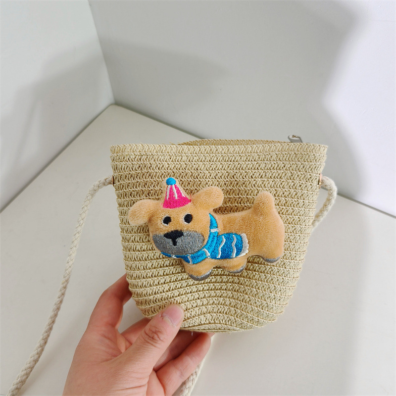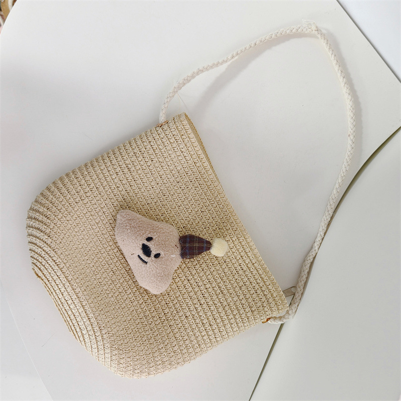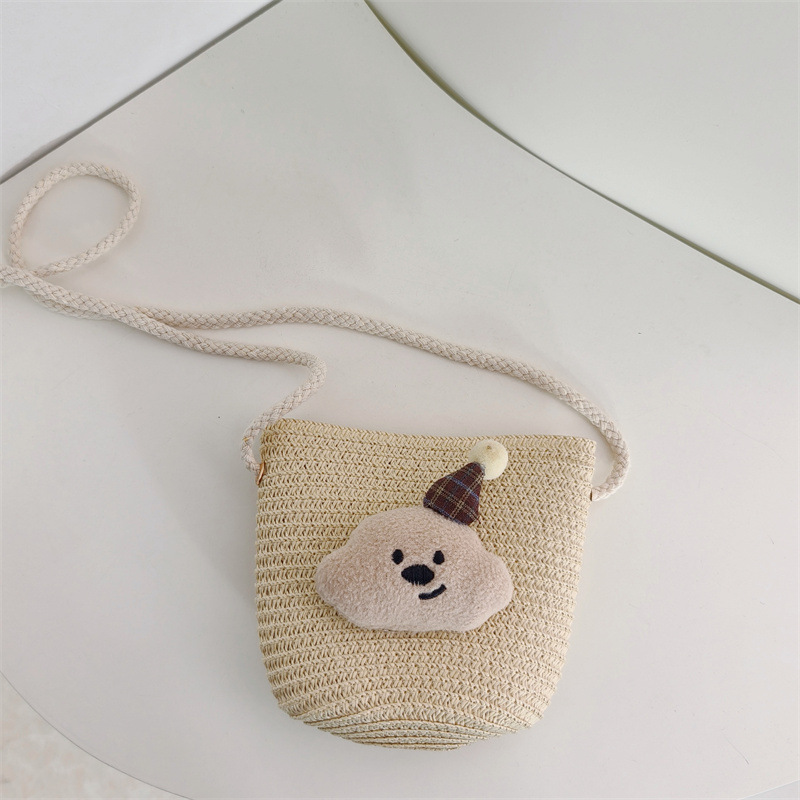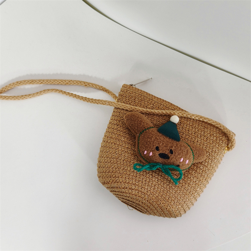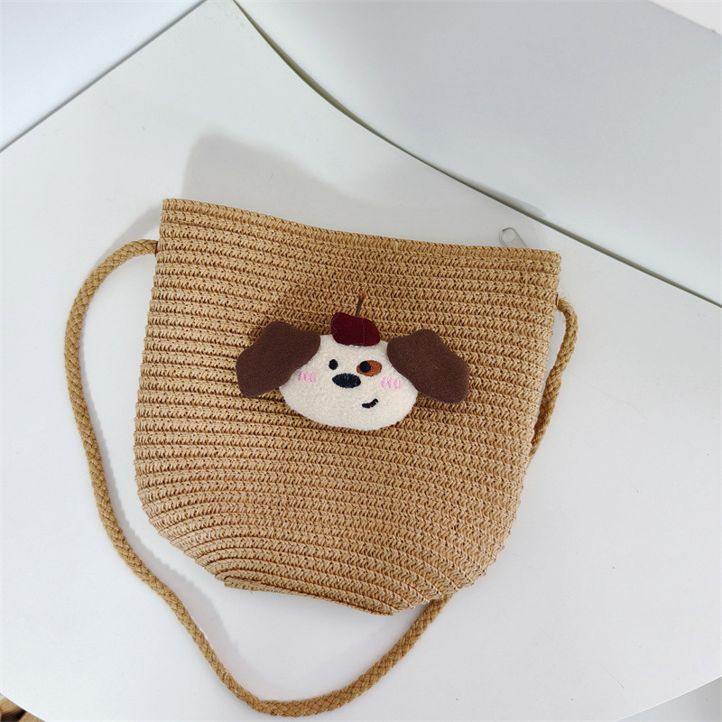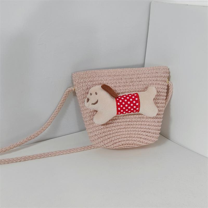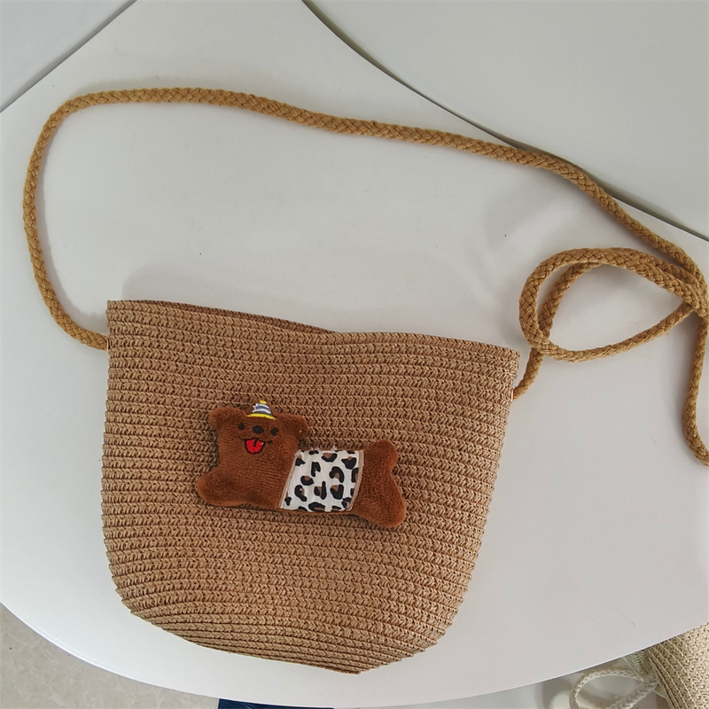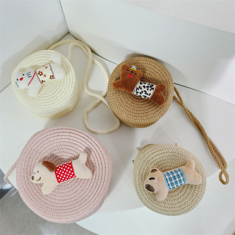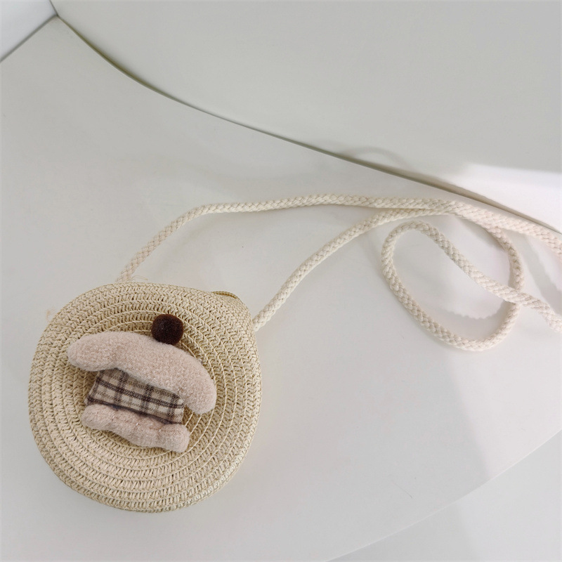 어린이 귀여운 만화 애니메이션 Kt 고양이 밀짚 작은 가방 소년과 소녀 크로스 바디 작은 가방 아기 동전 손으로 짠 가방