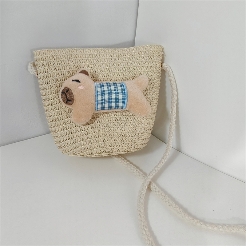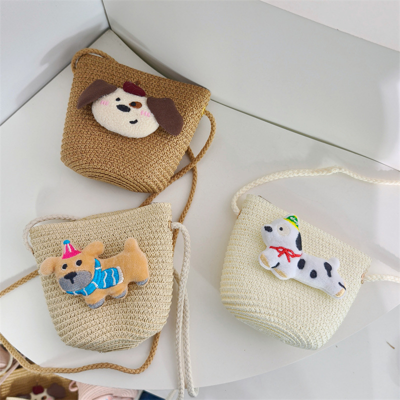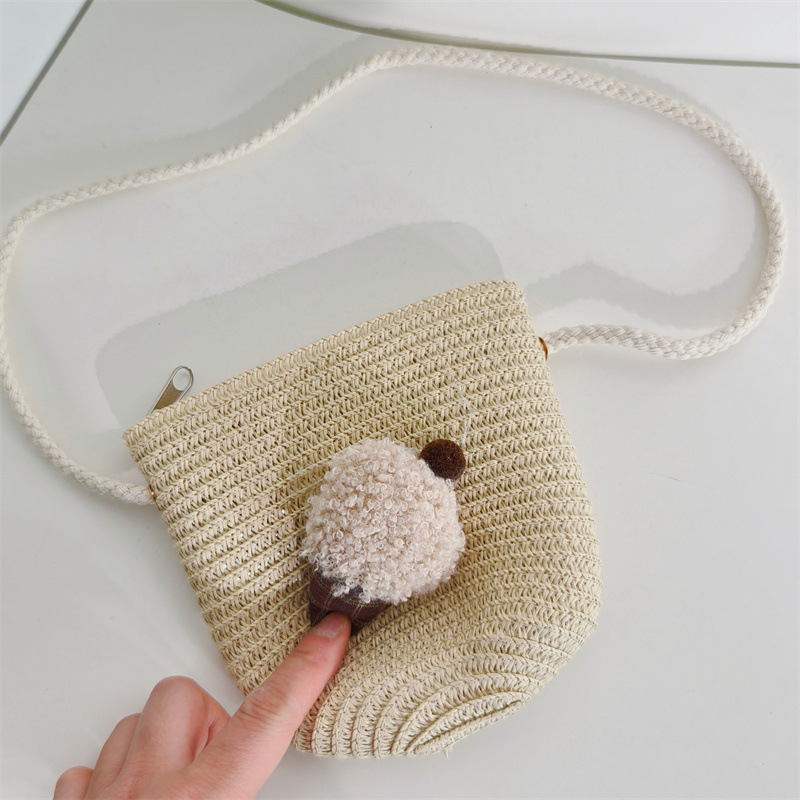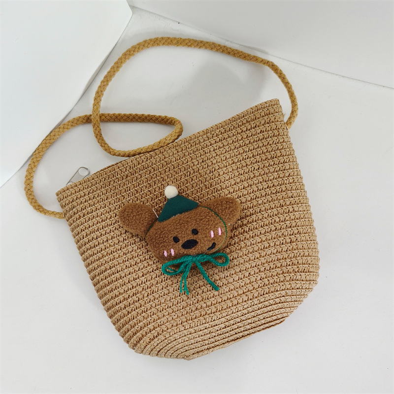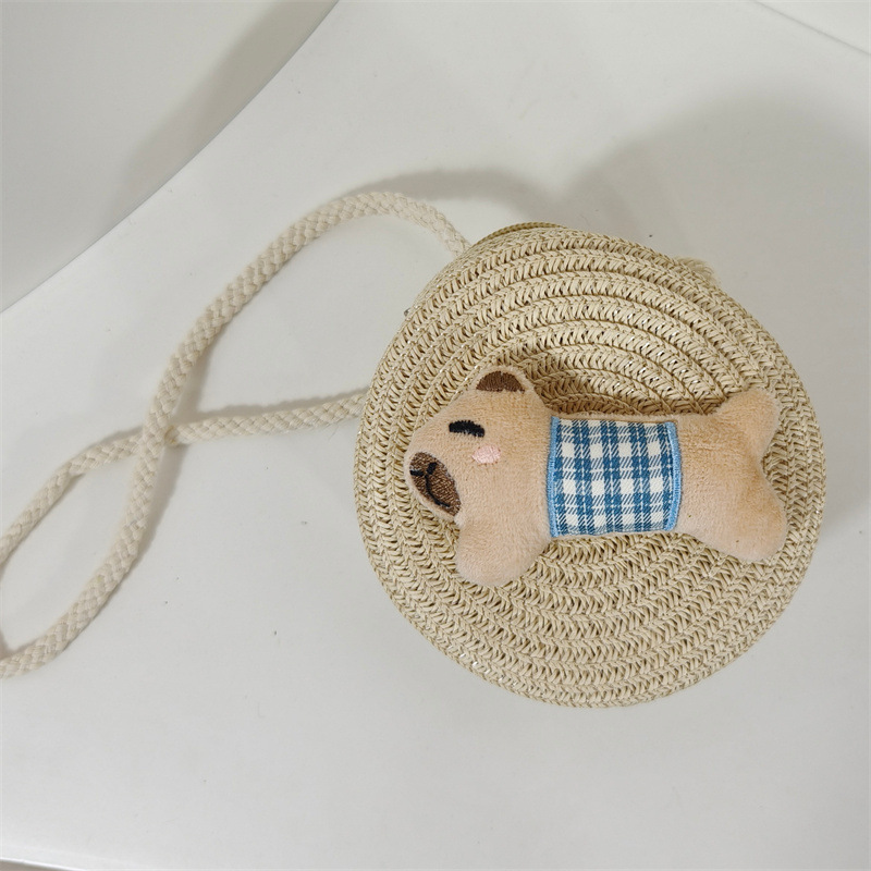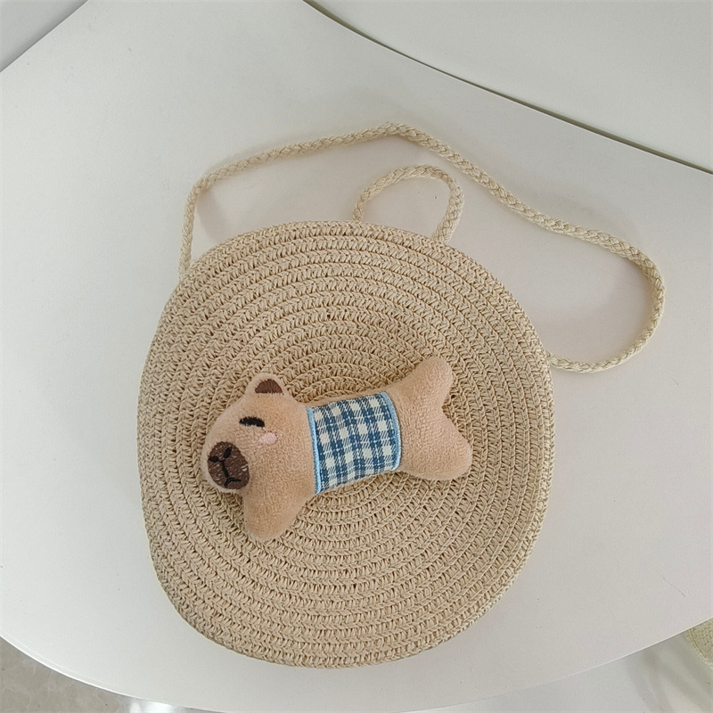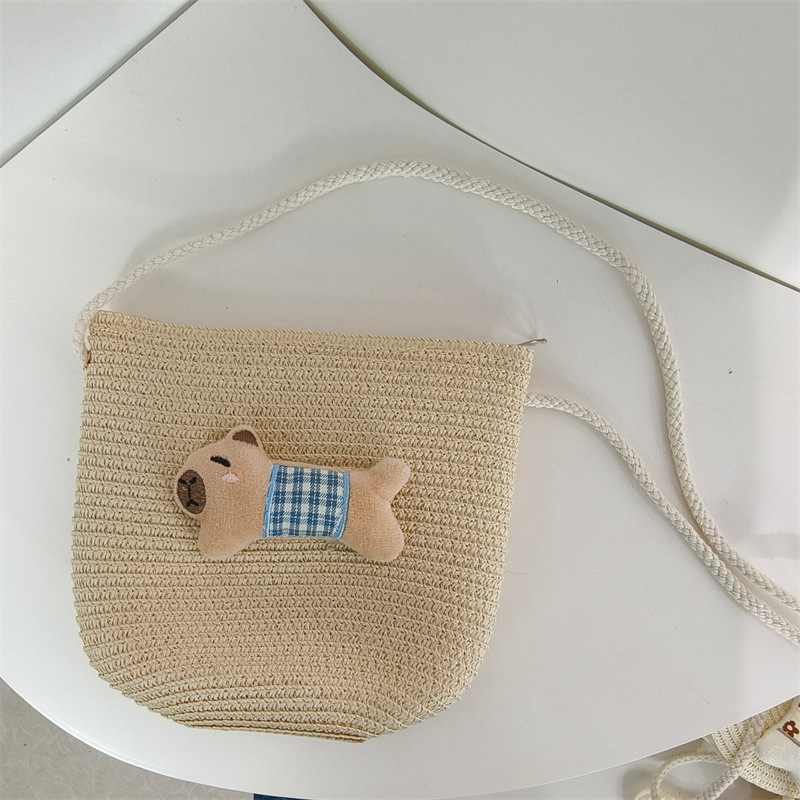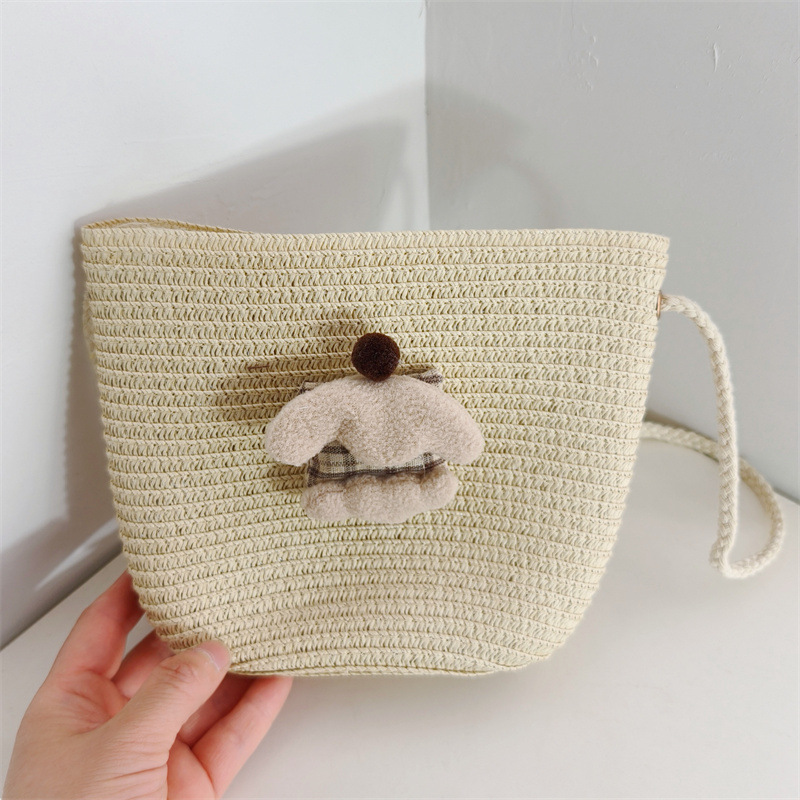 어린이 귀여운 만화 애니메이션 Kt 고양이 밀짚 작은 가방 소년과 소녀 크로스 바디 작은 가방 아기 동전 손으로 짠 가방