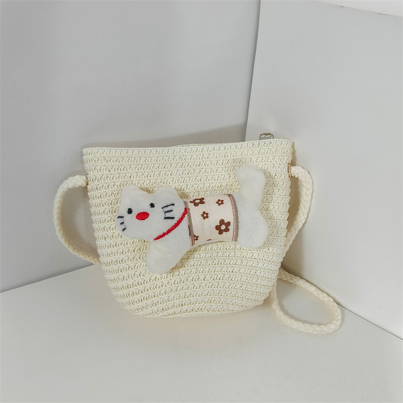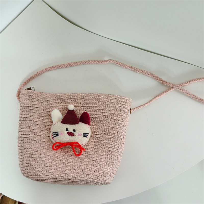 어린이 귀여운 만화 애니메이션 Kt 고양이 밀짚 작은 가방 소년과 소녀 크로스 바디 작은 가방 아기 동전 손으로 짠 가방스토어 가기