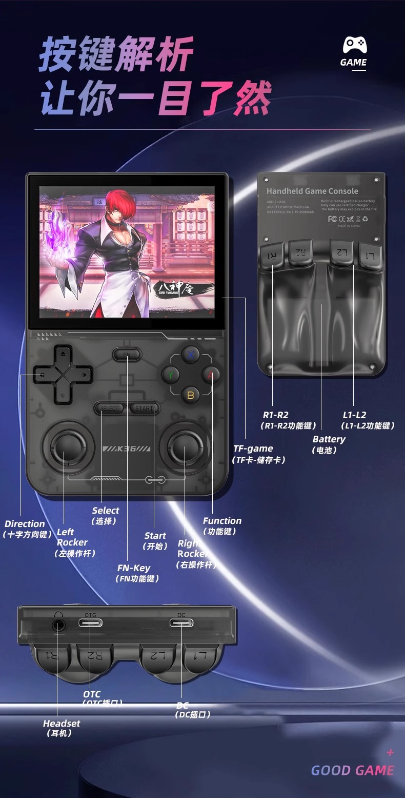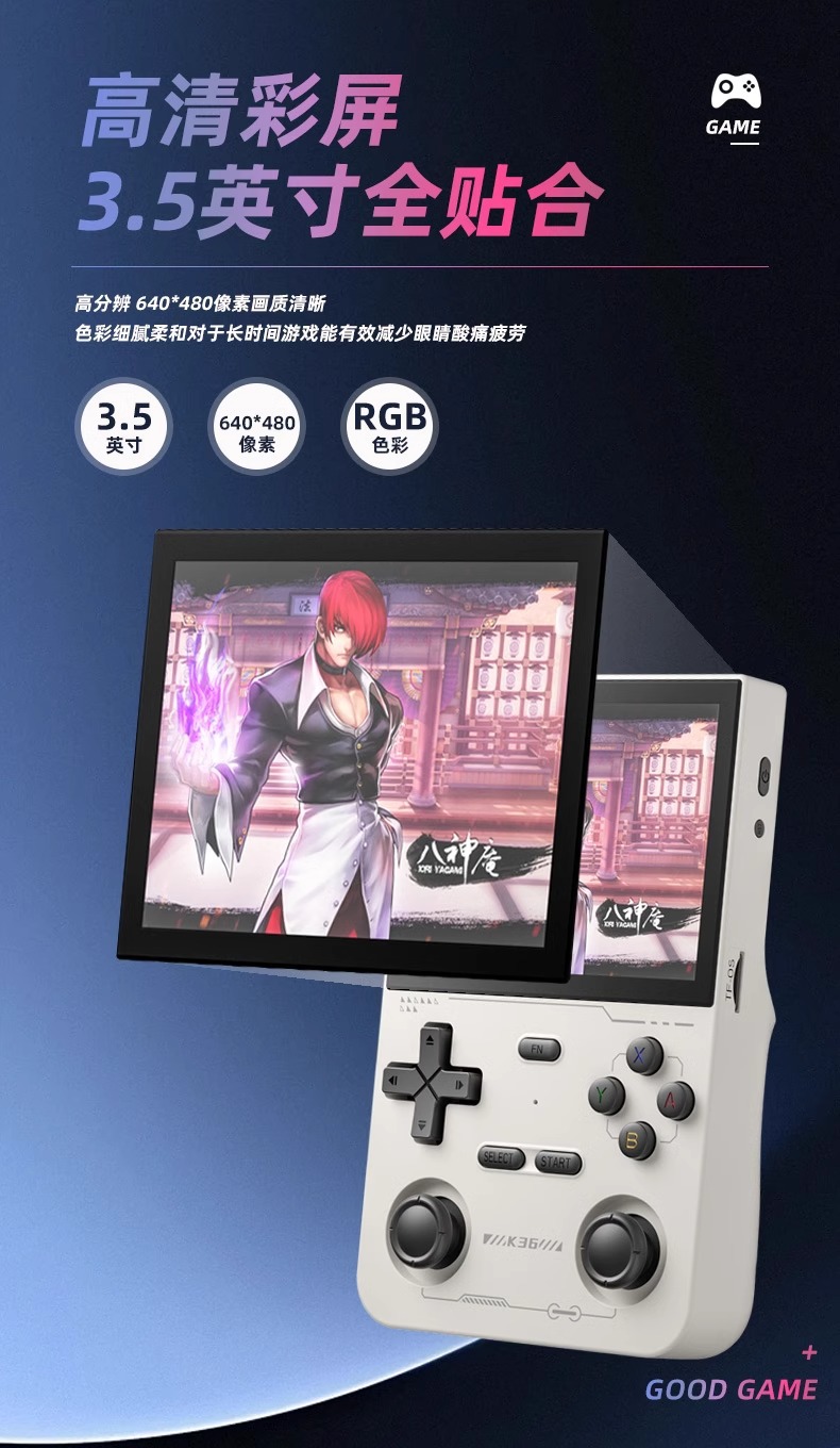 새로운 K36 휴대용 게임 기계 linxu 시스템 3.5 인치 IPS HD 화면 클래식 휴대용 오픈 소스 핸드 헬드