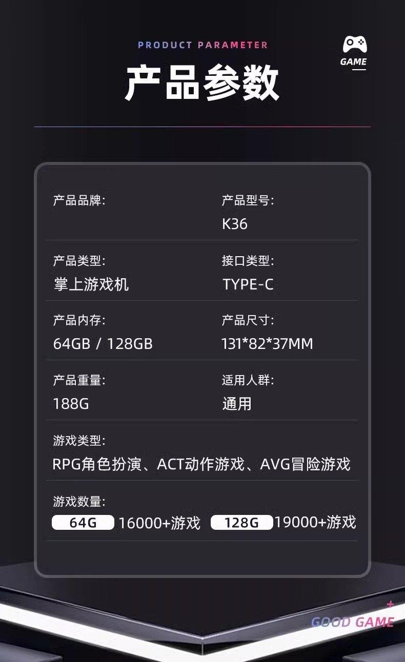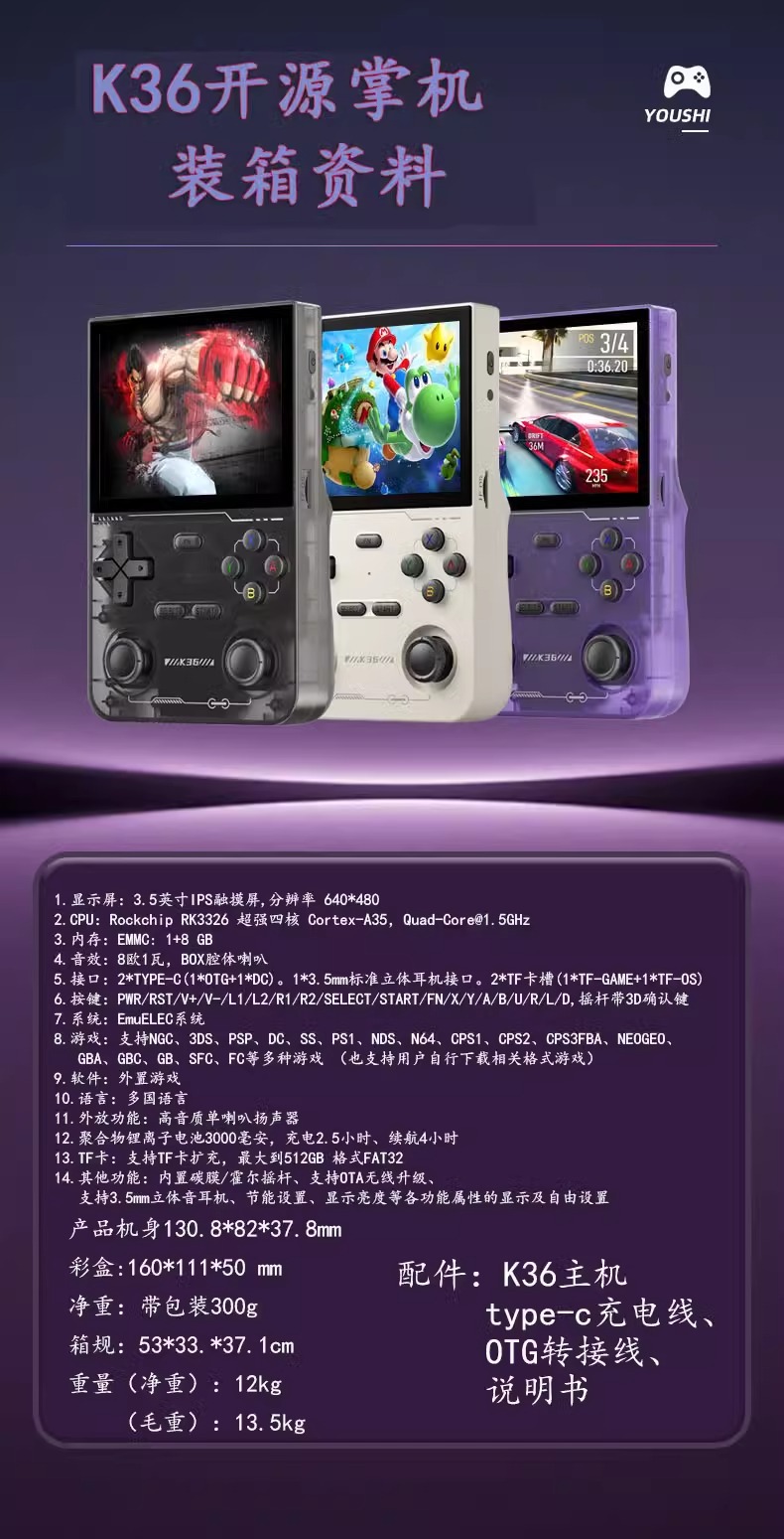 • [투명보라색] K36 오픈소스 휴대용 콘솔