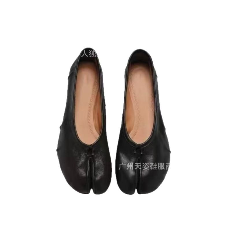 광저우 말 6 새로운 Cowhide 플랫 돼지의 발 발가락 샌들 기질 올 매치 패션 폭발 홈 소녀 같은 스타일