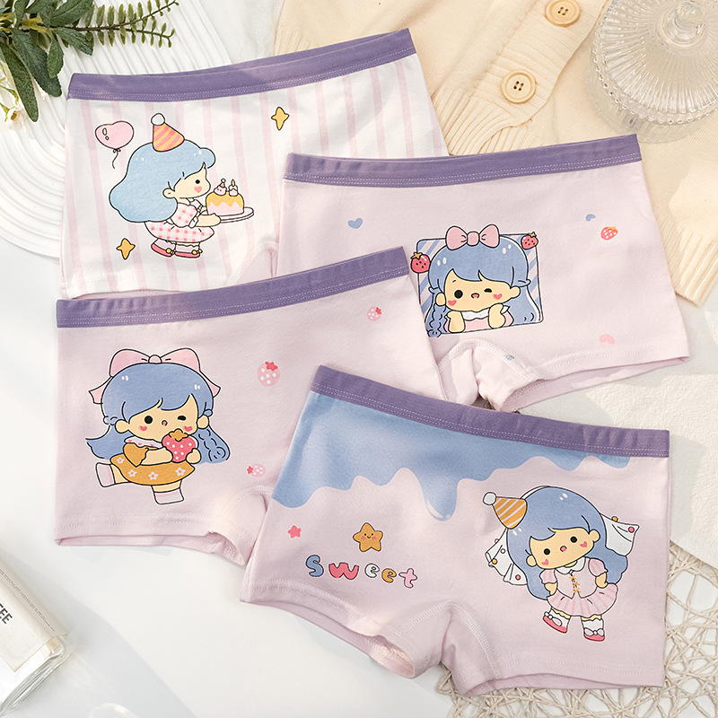 여아 속옷 순면 복서 팬티 만화 소녀 항균 가랑이 편안하고 통기성이 뛰어난 아기 중대형 어린이 복서 팬티