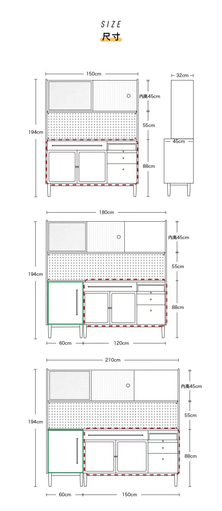 다람쥐 찬장 단단한 체리 나무 북유럽 높은 캐비닛 주방 캐비닛 보관 캐비닛 전체