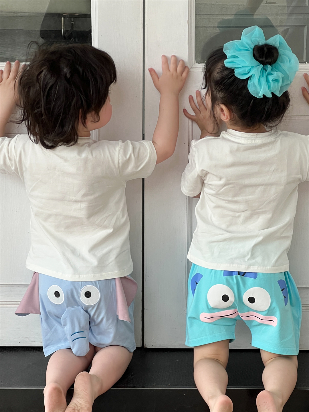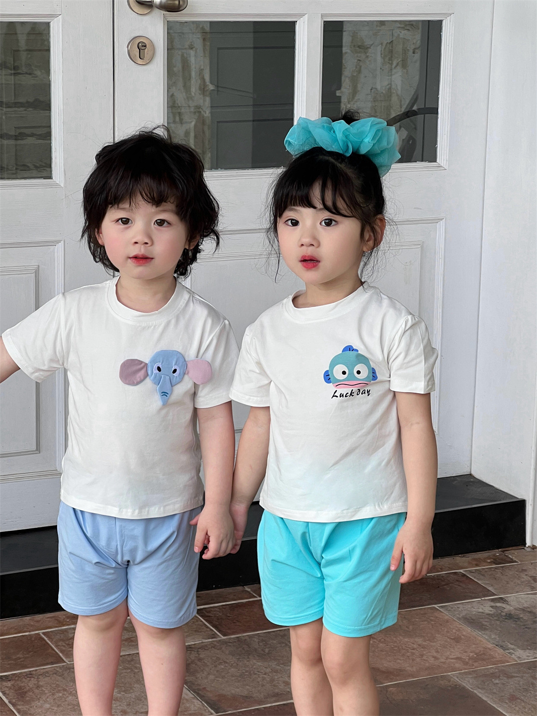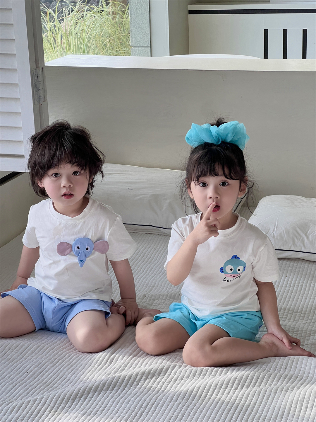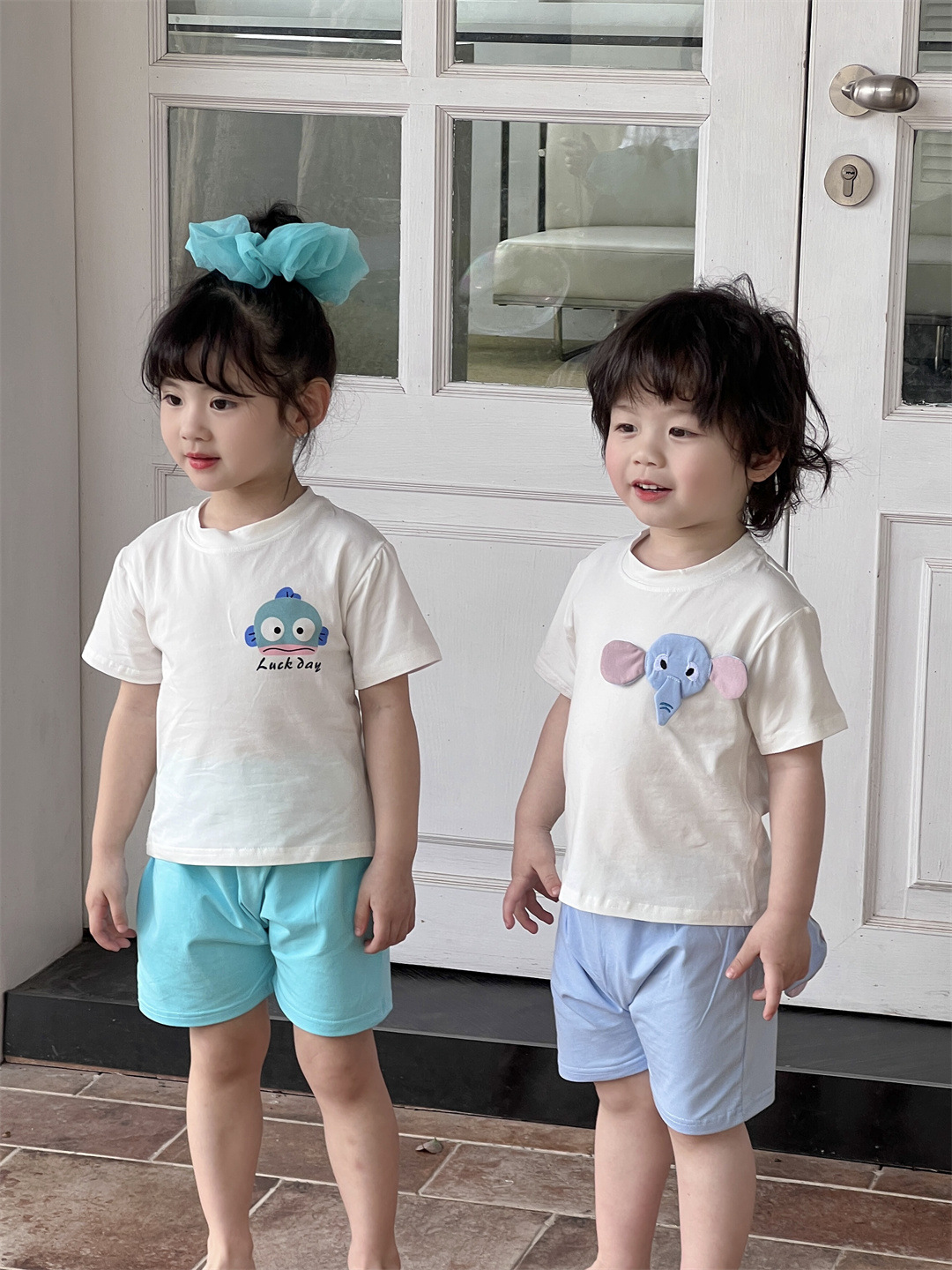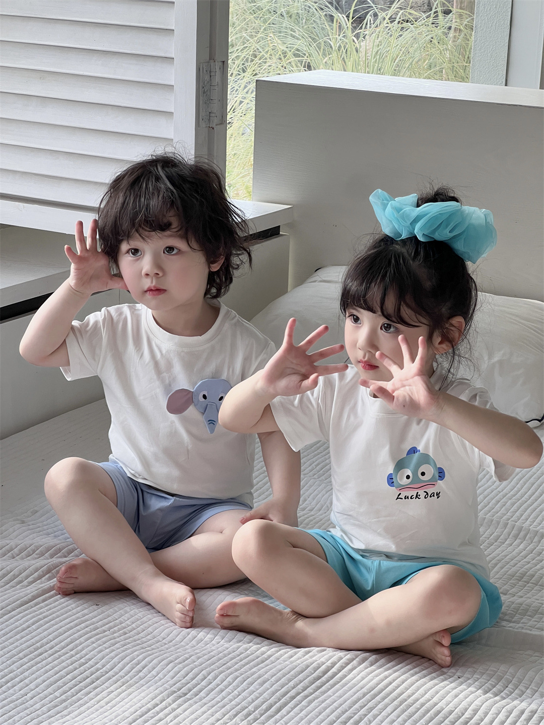 초여름 재미있는 잠옷 세트 소년 만화 3 차원 머리 소녀 인쇄 귀여운 홈 옷 투피스 세트