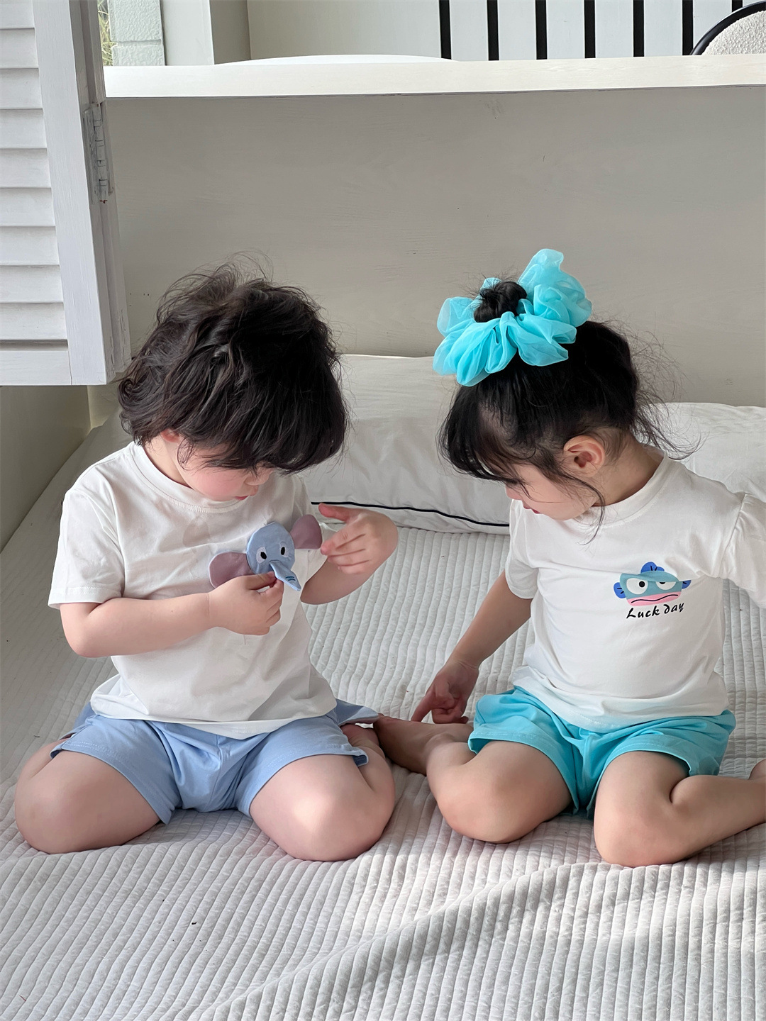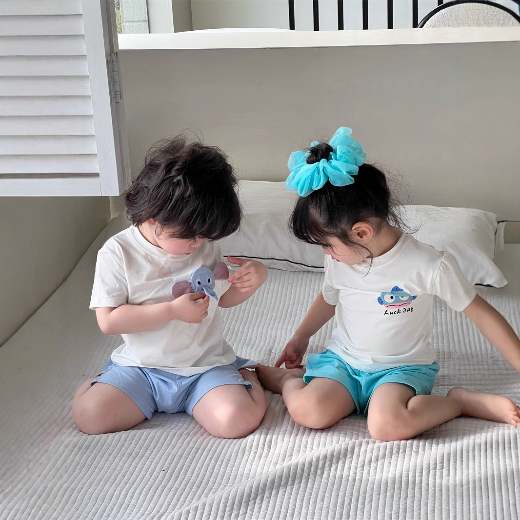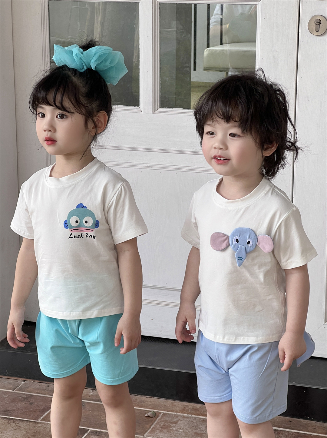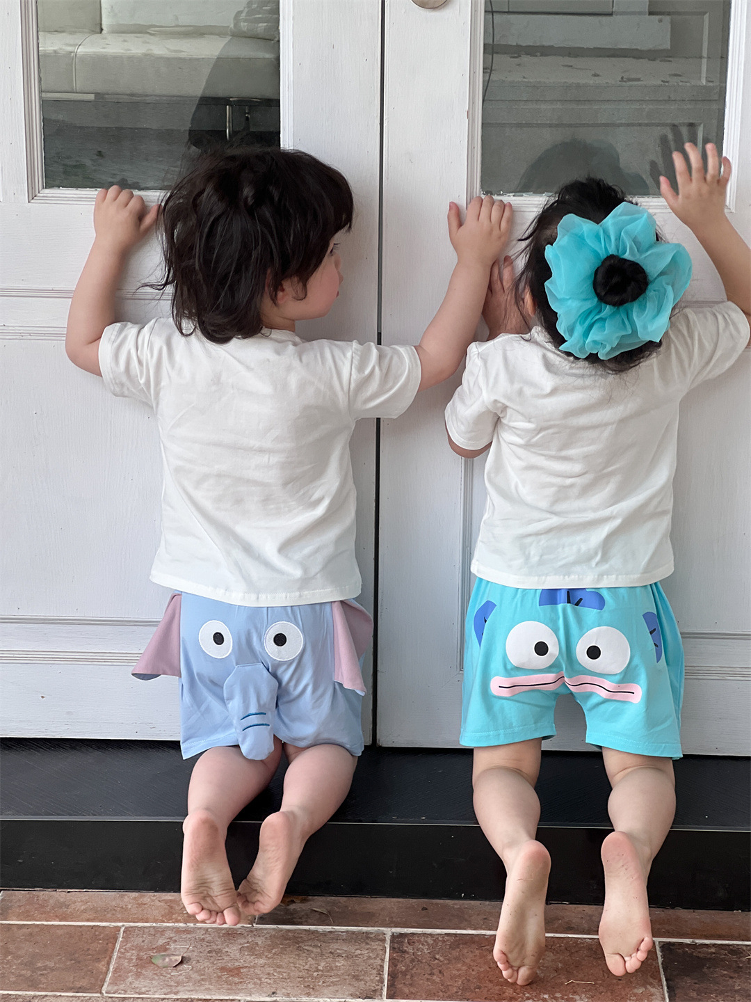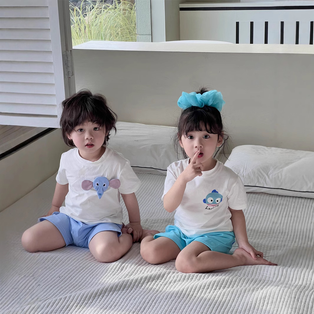 초여름 재미있는 잠옷 세트 소년 만화 3 차원 머리 소녀 인쇄 귀여운 홈 옷 투피스 세트