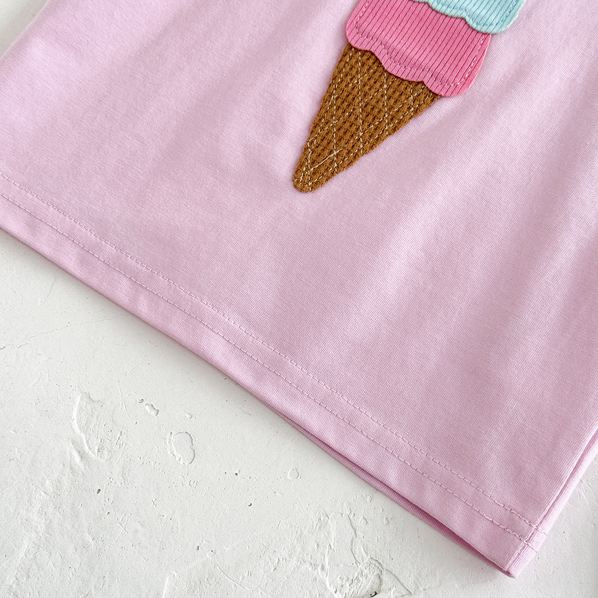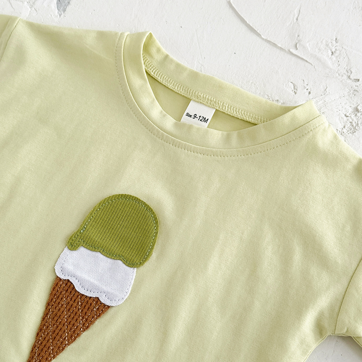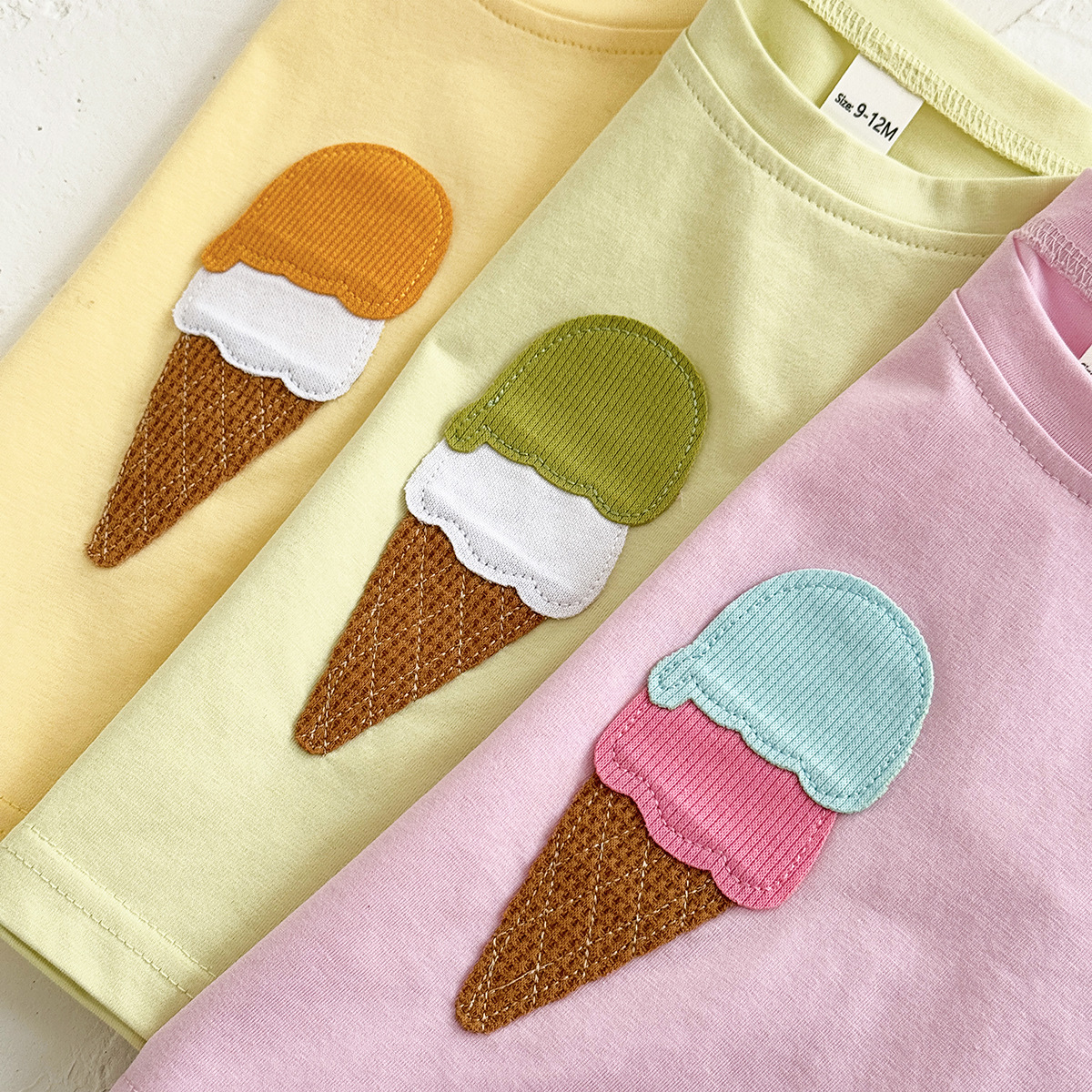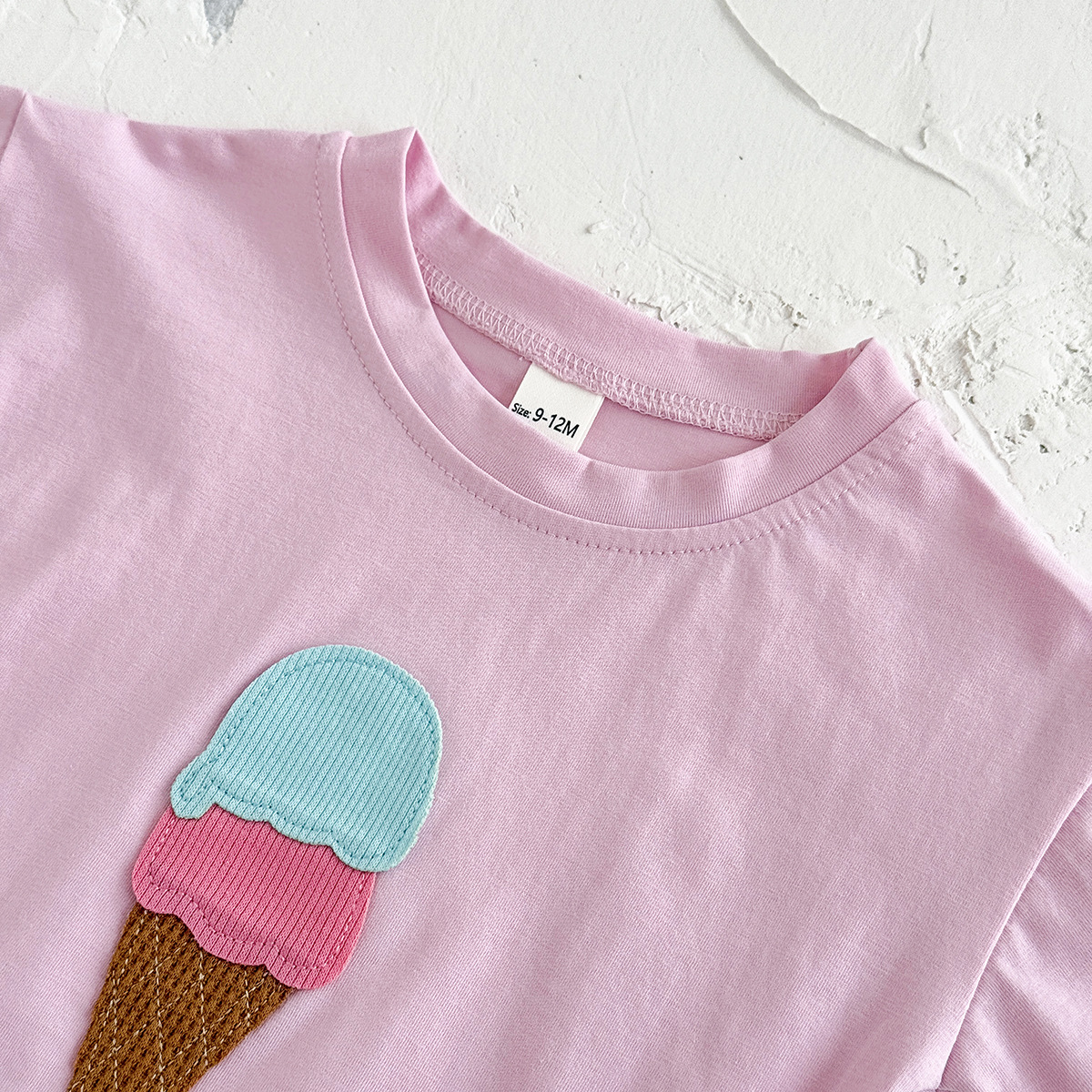 어린이 아이스크림 티셔츠 2025 새로운 여름 0-3 세 소녀 패치 짧은 소매 상단 얇은 소년 서양식 여름 의류