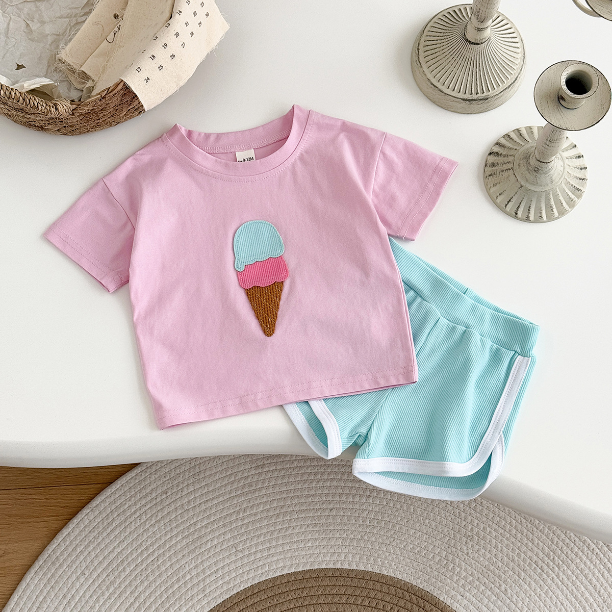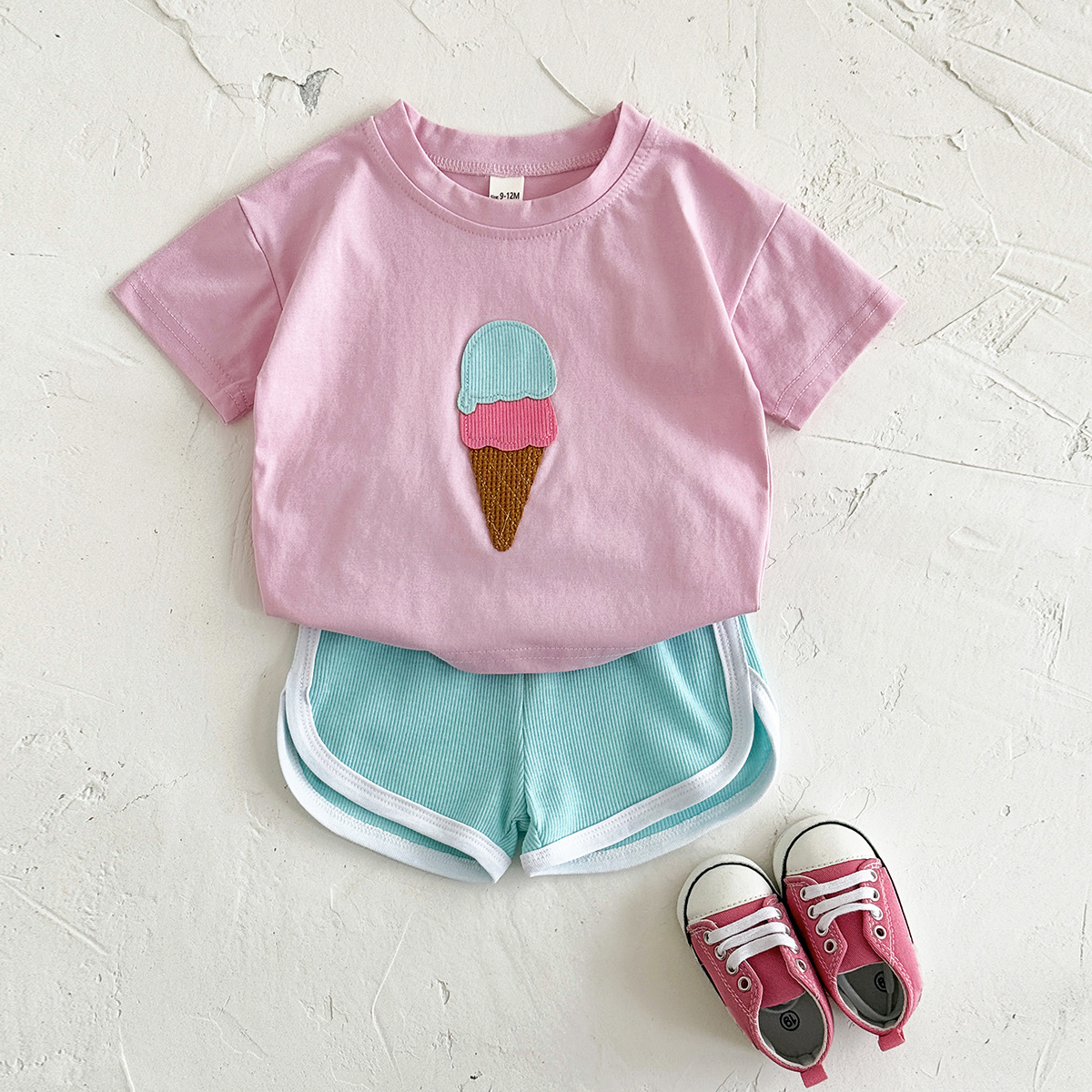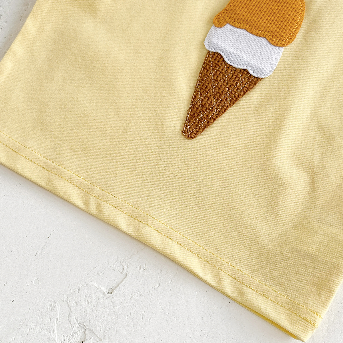 어린이 아이스크림 티셔츠 2025 새로운 여름 0-3 세 소녀 패치 짧은 소매 상단 얇은 소년 서양식 여름 의류