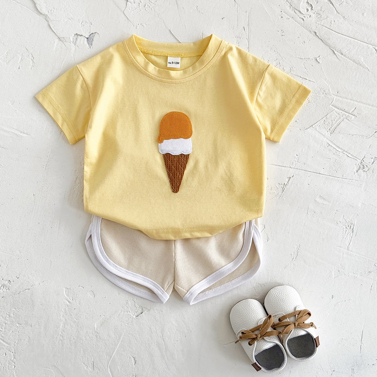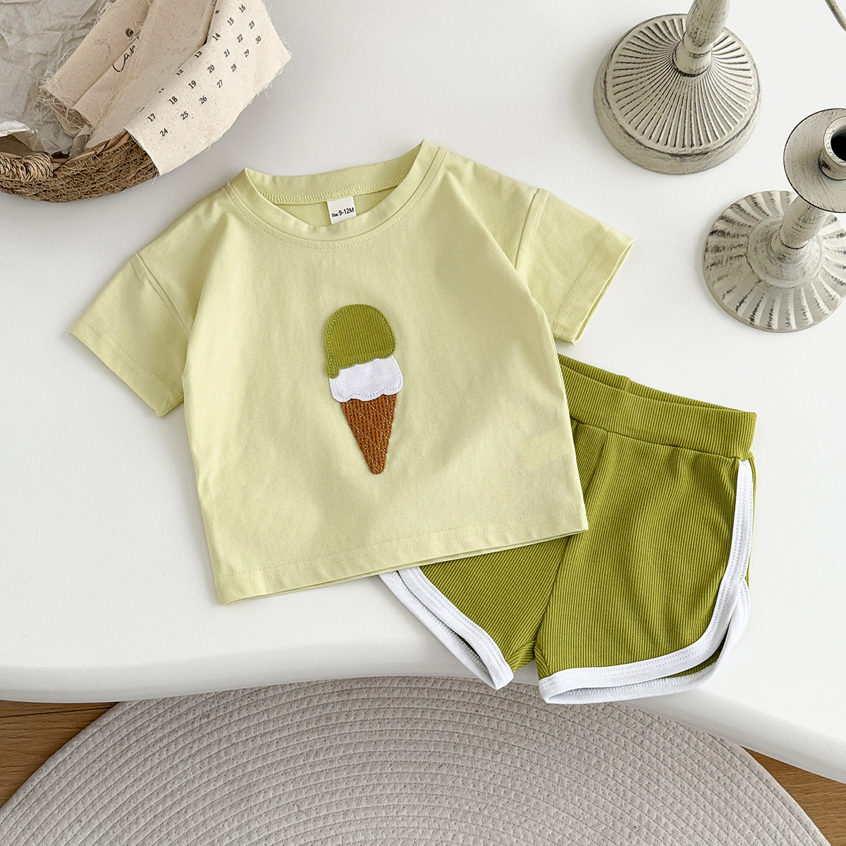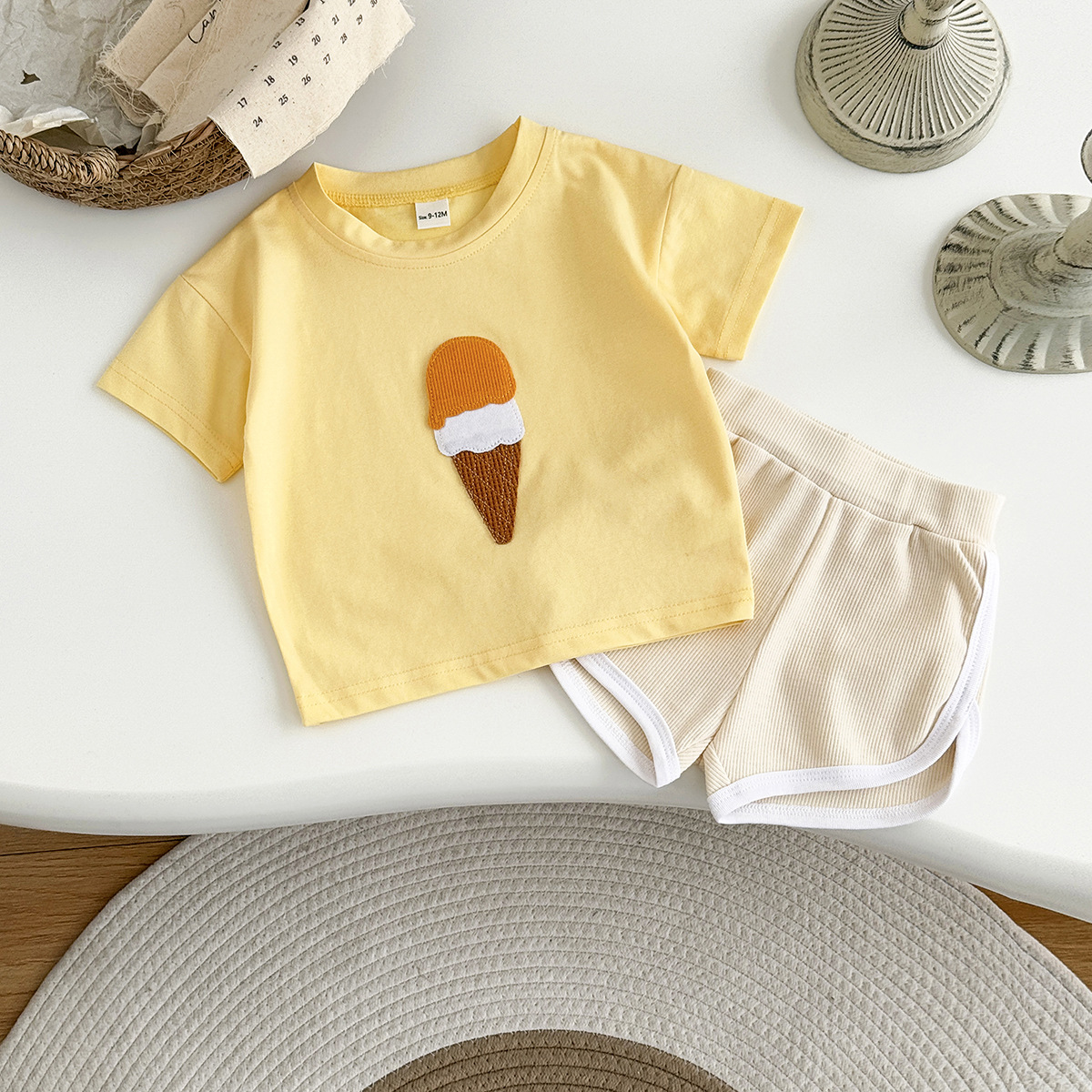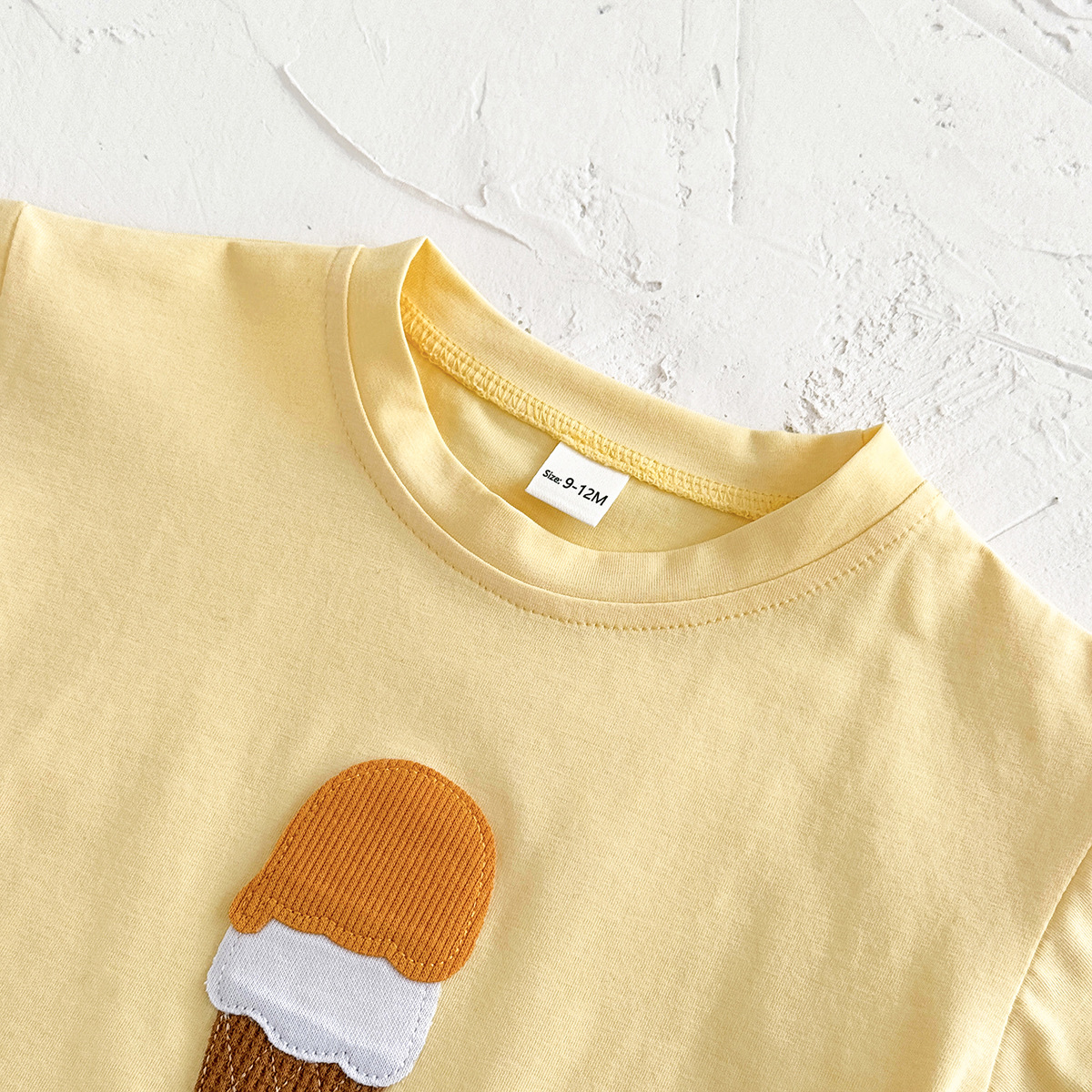 어린이 아이스크림 티셔츠 2025 새로운 여름 0-3 세 소녀 패치 짧은 소매 상단 얇은 소년 서양식 여름 의류
