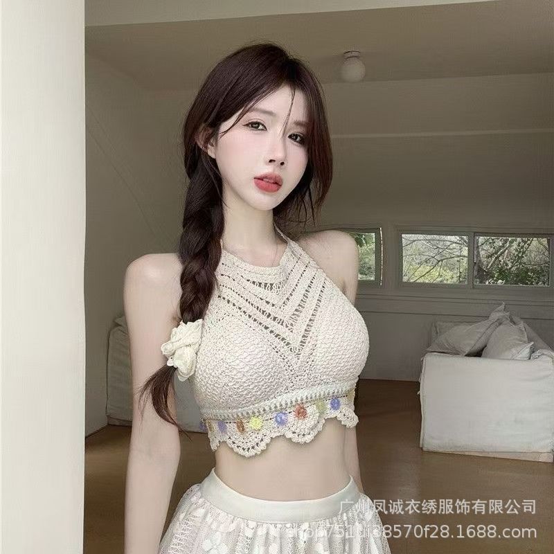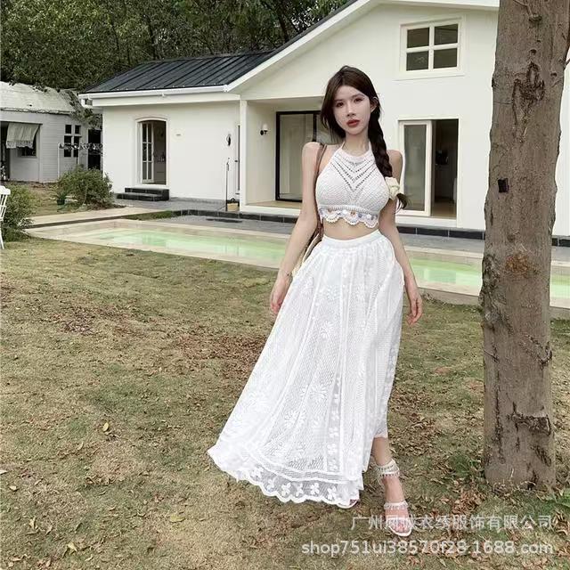 작은 뜨거운 소녀 정장 스커트 여성 여름 새로운 패션 섹시한 홀터넥 짧은 조끼 휴가 해변 스커트스토어 가기