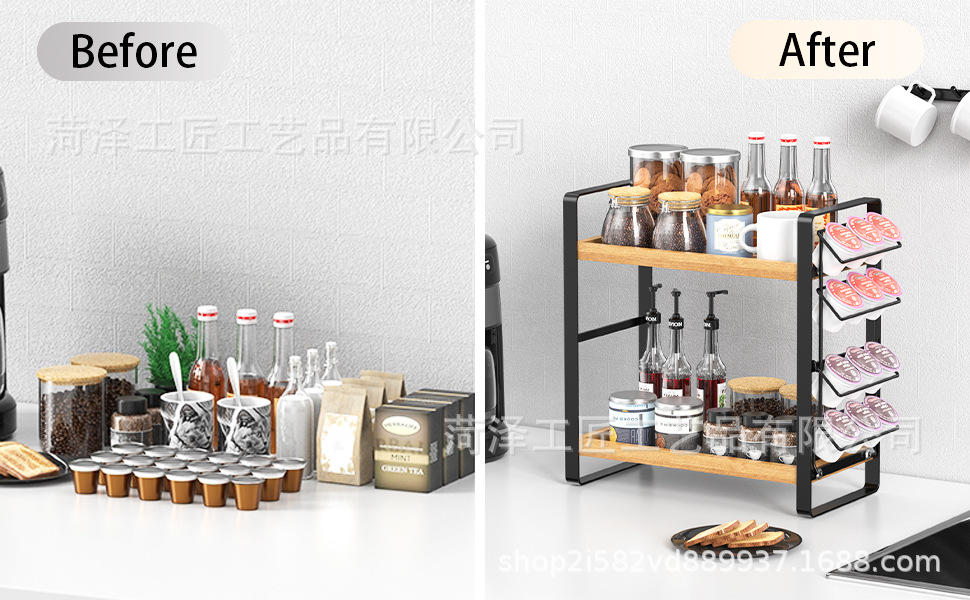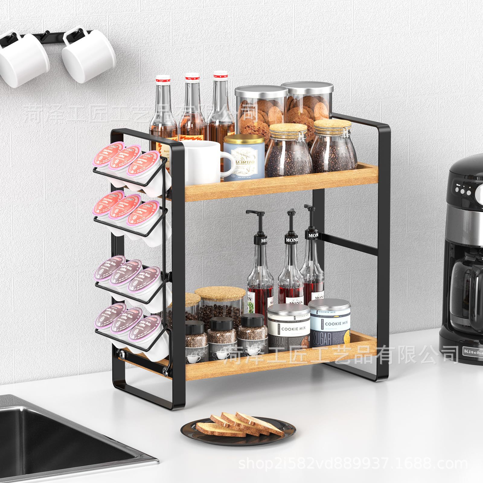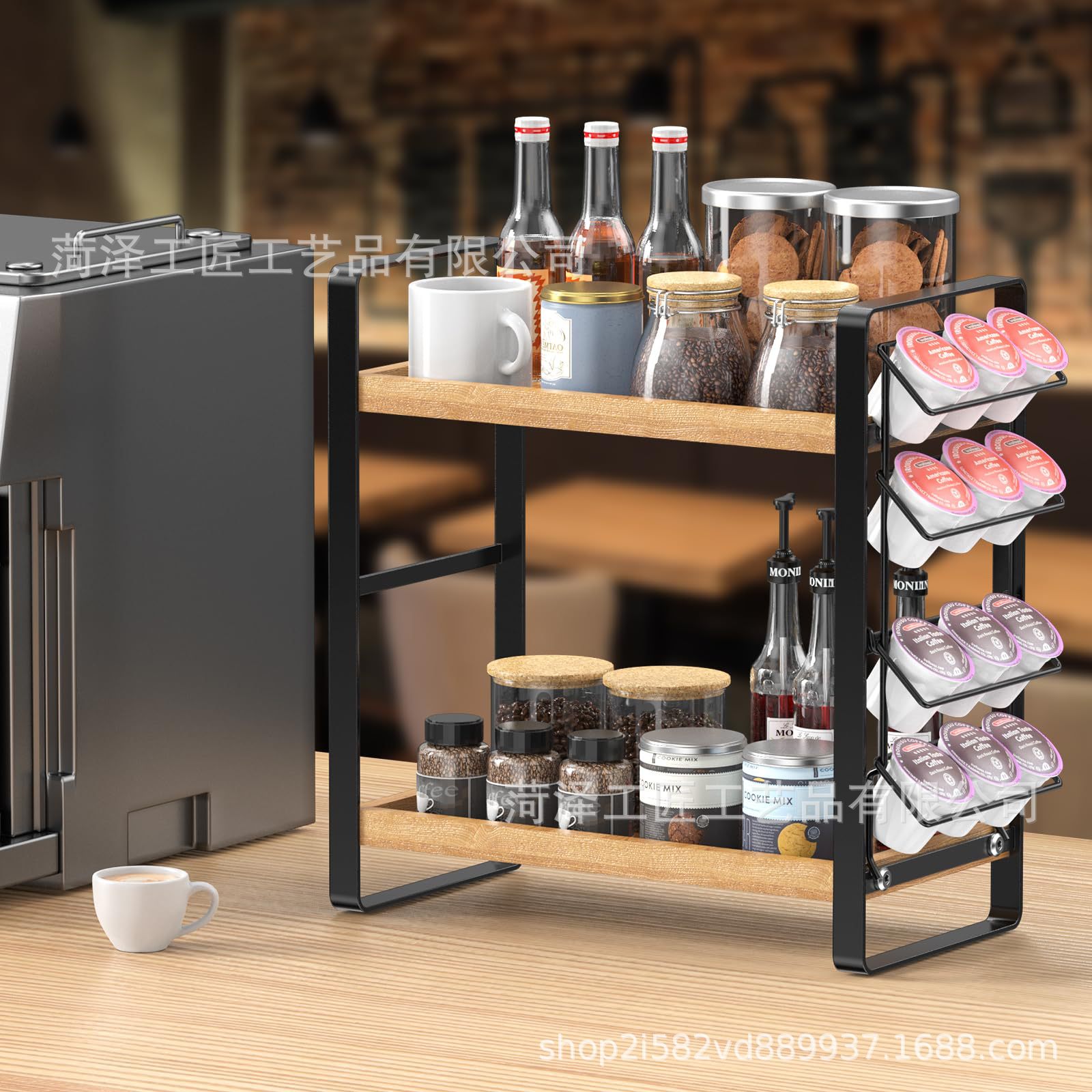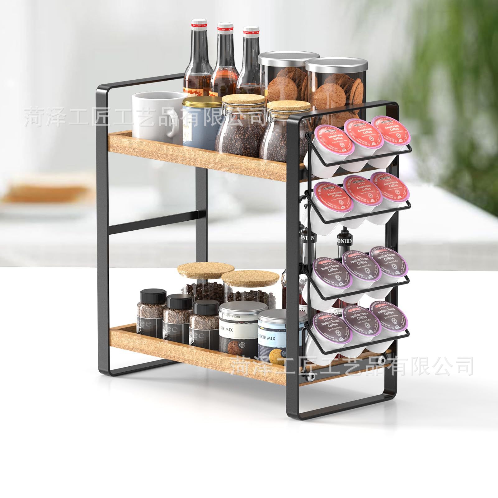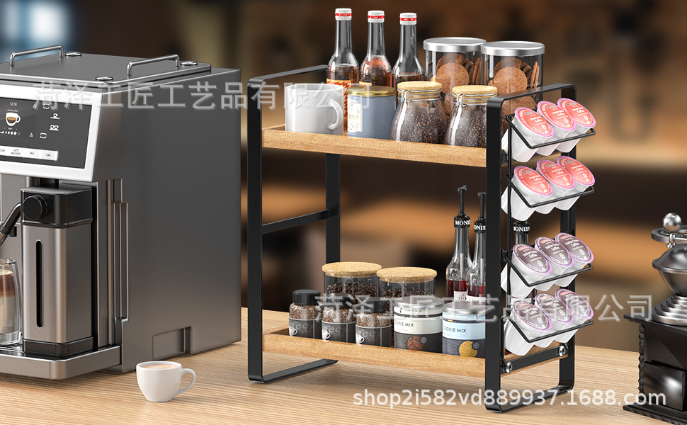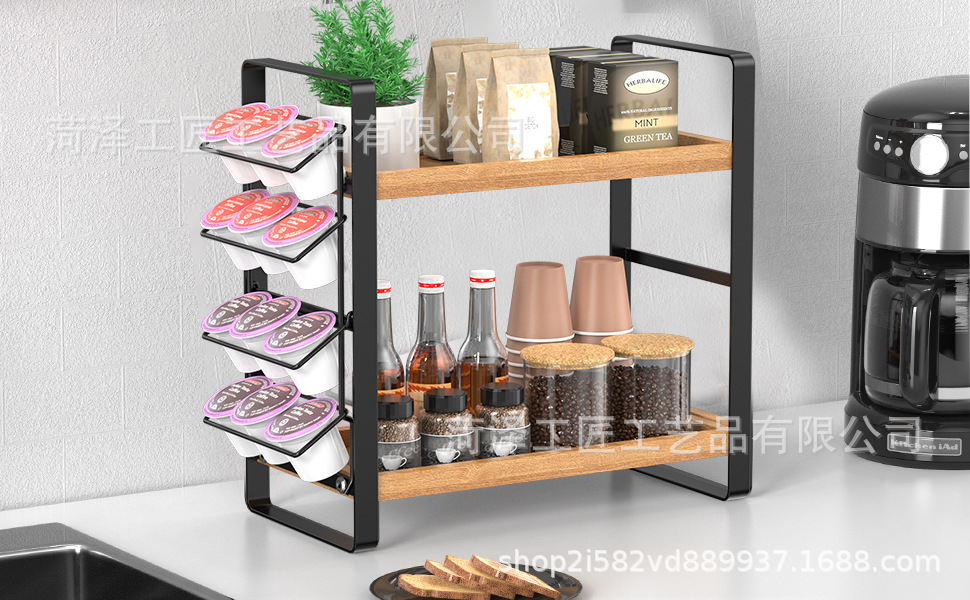 나무 K 컵 스토리지 랙 다층 커피 스테이션 스토리지 랙 주방 스토리지 주최자 커피 바 액세서리 주최자스토어 가기