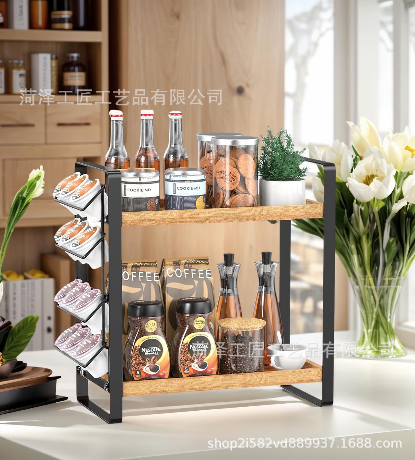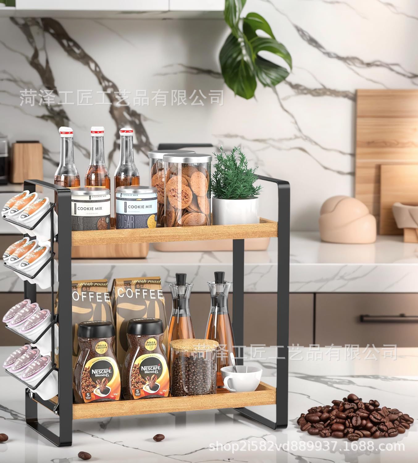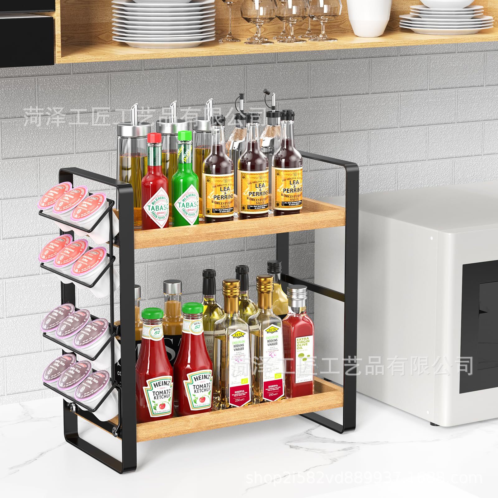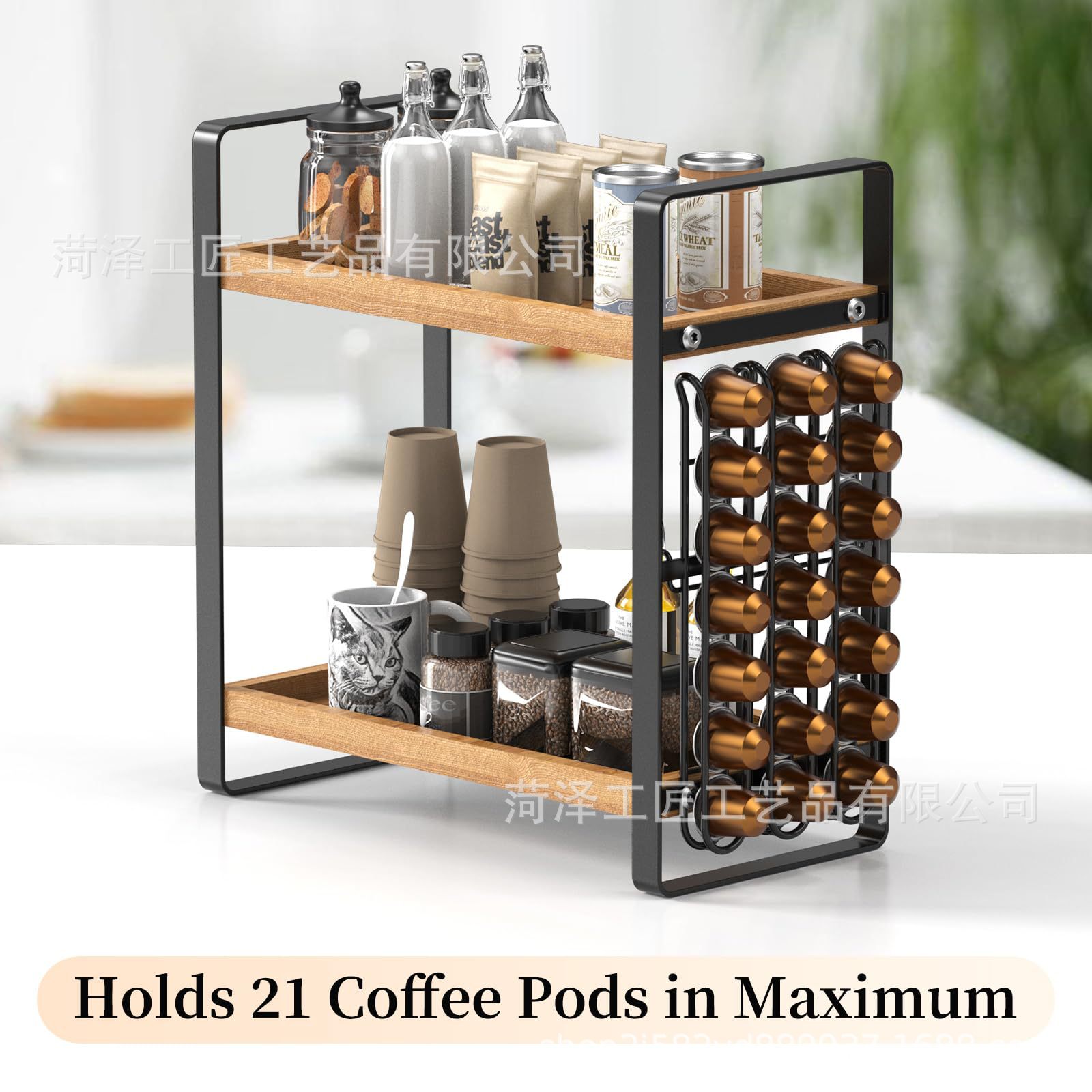 나무 K 컵 스토리지 랙 다층 커피 스테이션 스토리지 랙 주방 스토리지 주최자 커피 바 액세서리 주최자스토어 가기