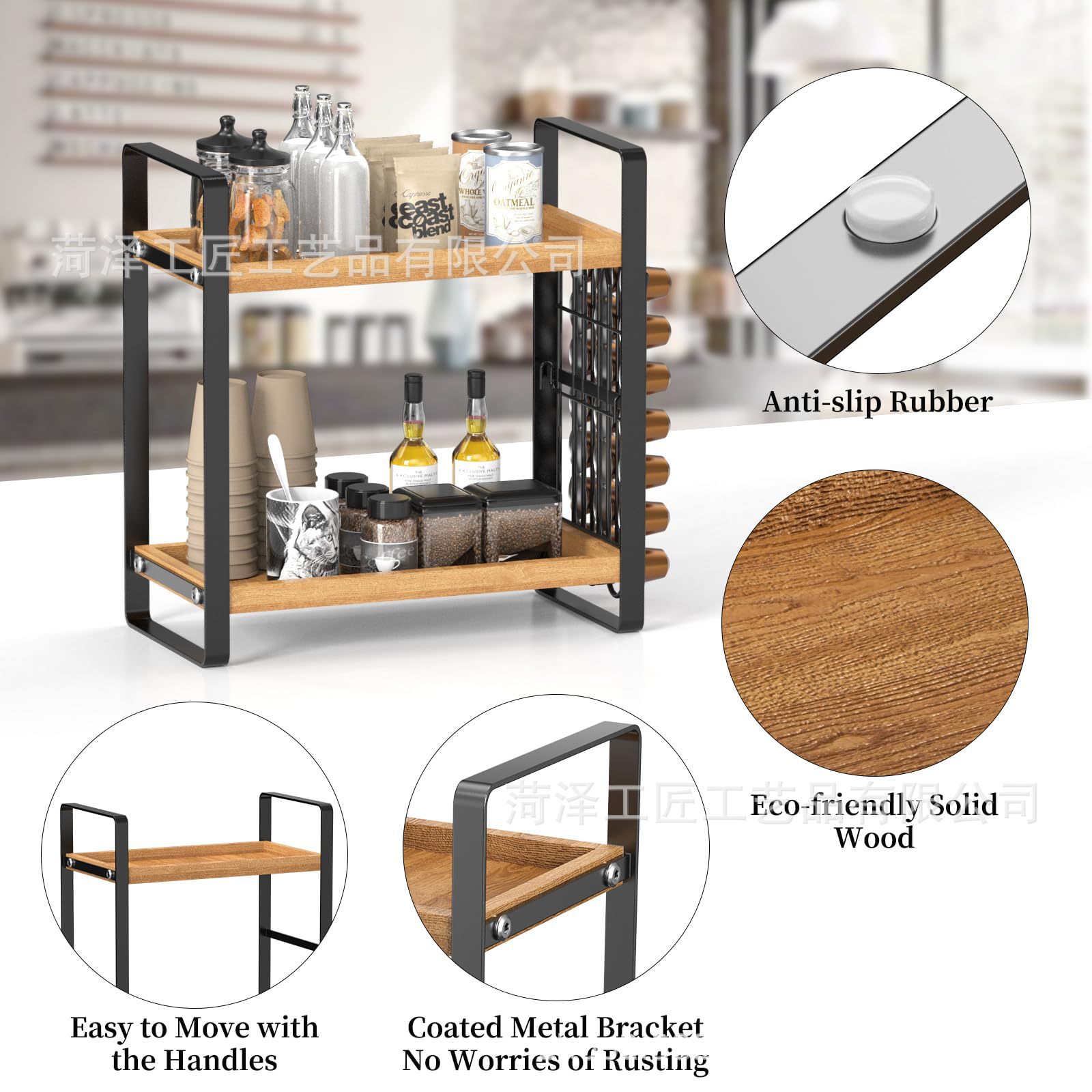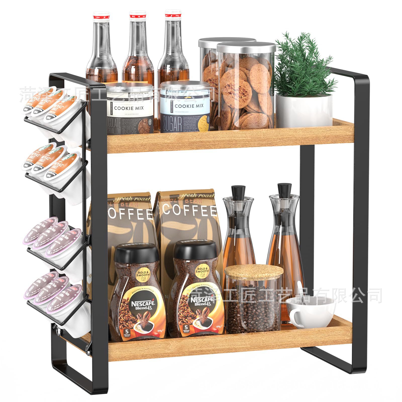 나무 K 컵 스토리지 랙 다층 커피 스테이션 스토리지 랙 주방 스토리지 주최자 커피 바 액세서리 주최자